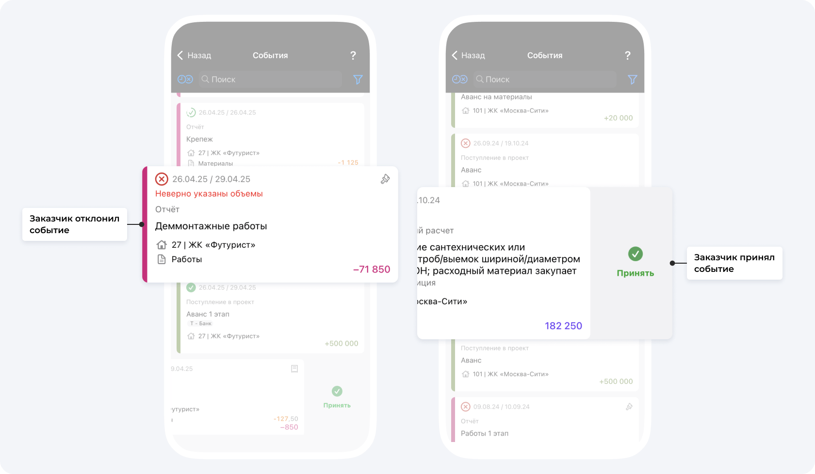 В Приложении 101 заказчик сможет в режиме реального времени отслеживать все траты подрядчика по проекту — он видит, сколько вы тратите на закупку материалов, и смотрит фото и видеоотчеты с объекта, чтобы оценить объем выполненных работ. Это позволяет безопасно работать по предоплате, не нуждаясь в форме КС-3.