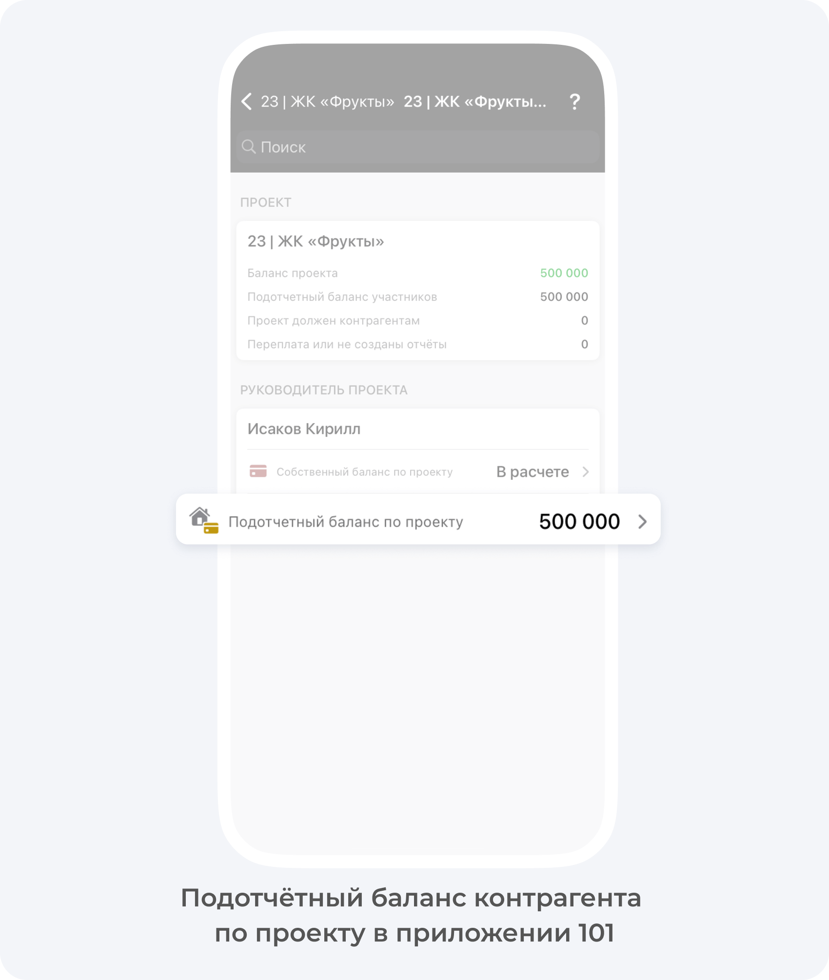 У каждого контрагента есть свой *баланс подотчёта*: видно, сколько выдали, сколько потратил, осталась ли задолженность или сдача.