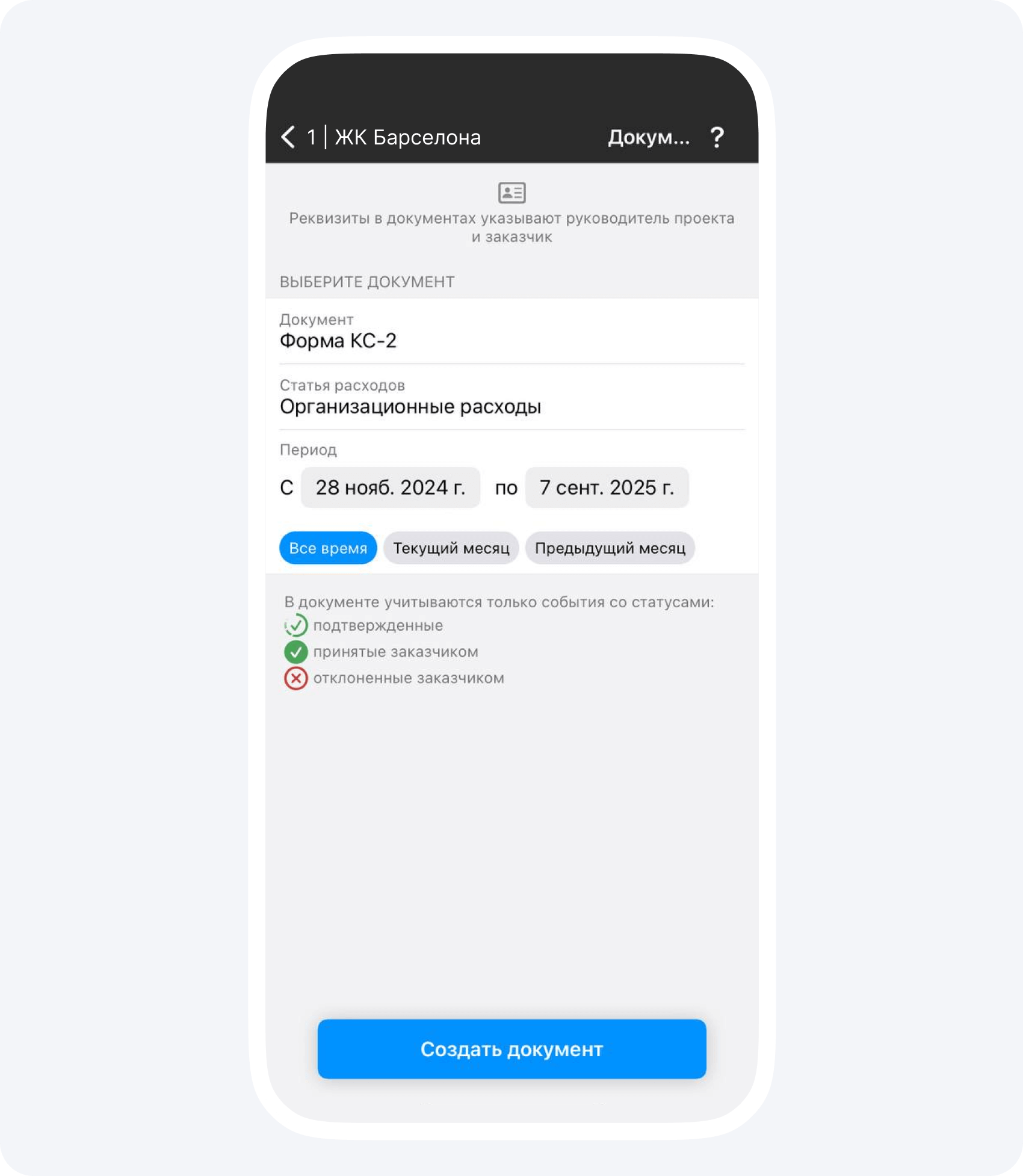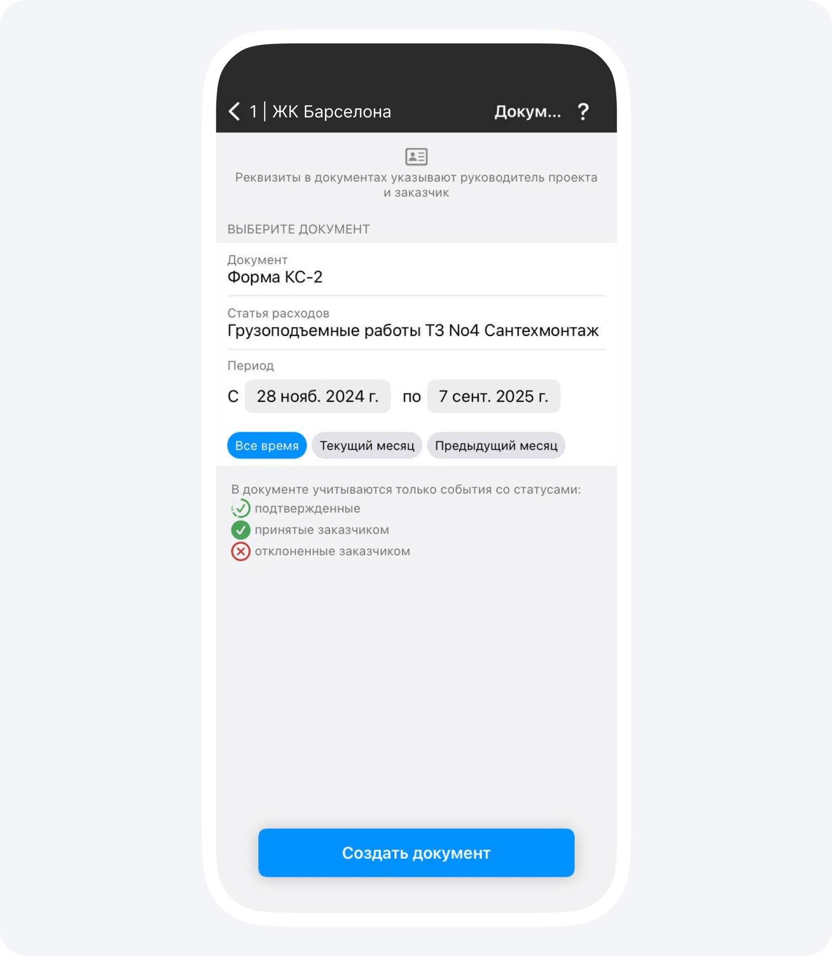 Такое автоматическое формирование КС-2 экономит время и снижает риск ошибок, поскольку все данные берутся напрямую из расчетов и отчетов, которые делаются в процессе реализации в Приложении 101 и проверяются обеими сторонами.