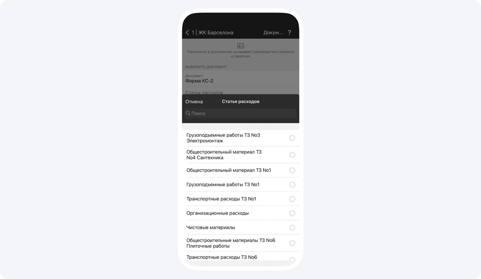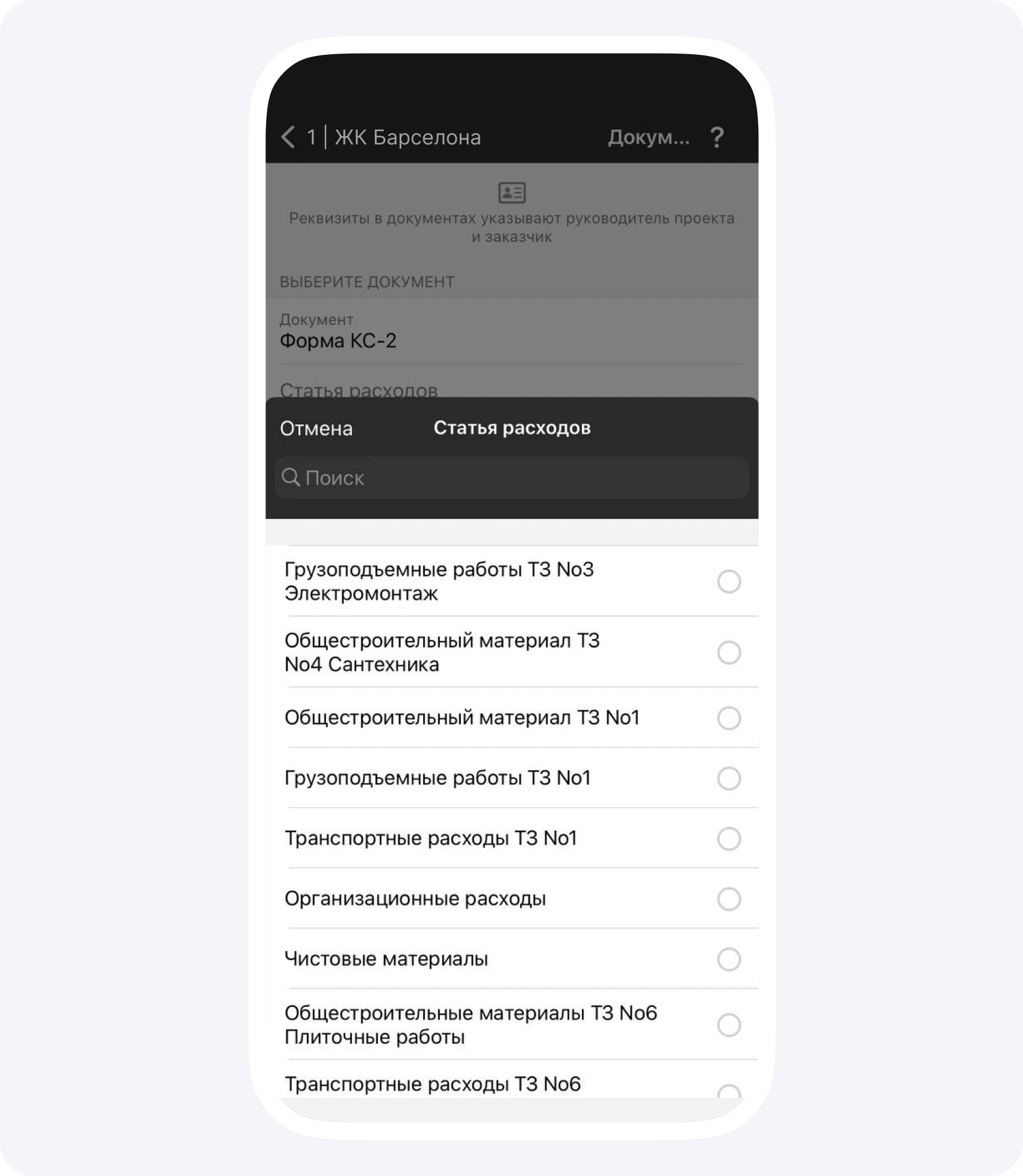 2. Выберите раздел Документы, где также выберите КС-2 из списка предложенных вариантов.