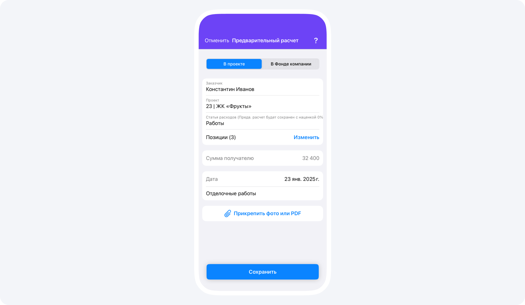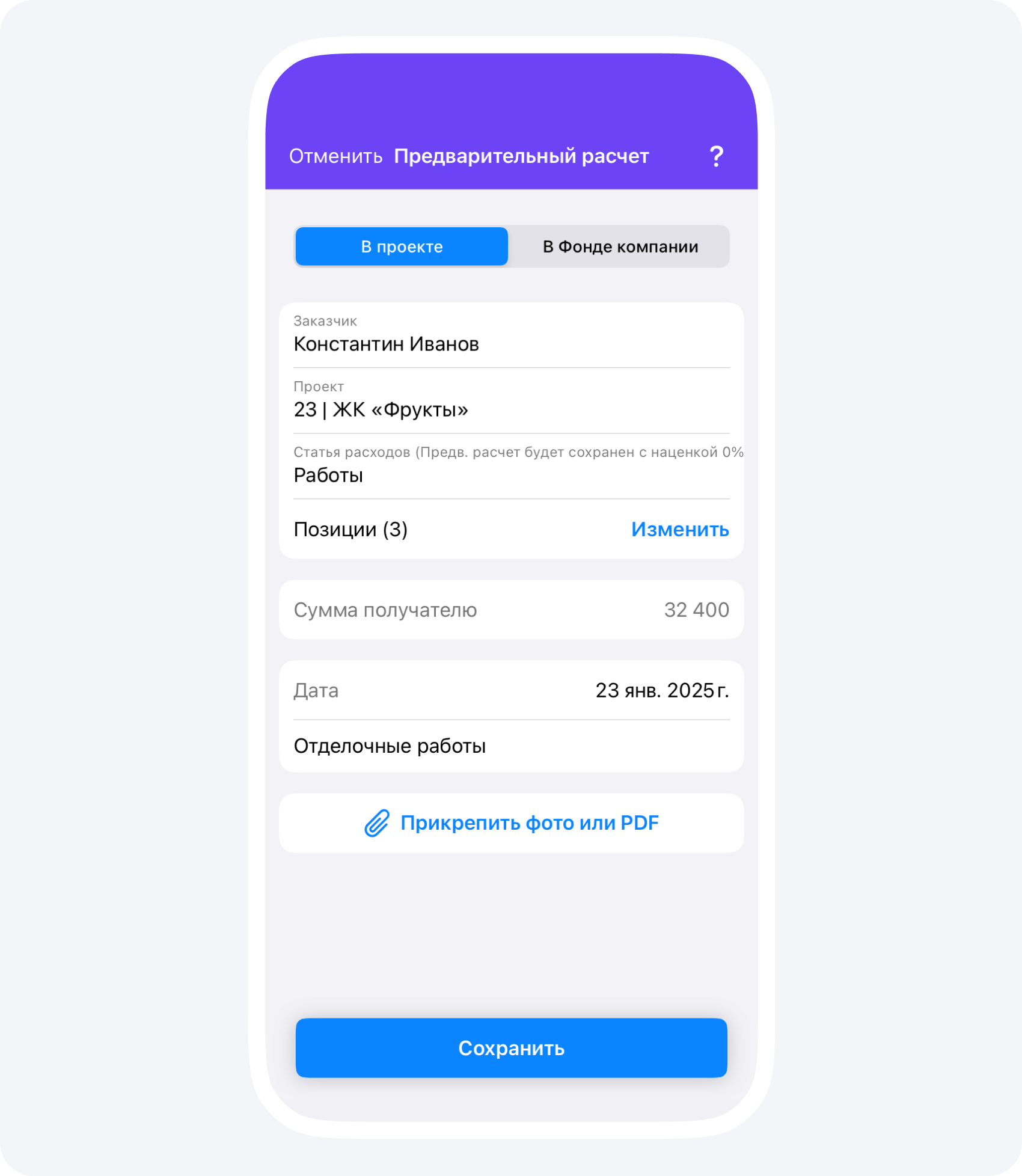 Используйте балансовый отчет вместо сметы. Мы предлагаем серьезно сократить количество смет, которые строители используют в работе. Например, в начале сотрудничества мы рекомендуем ориентировать заказчика по вашему прайс-листу, который доступен ему в приложении, и балансовым отчетам с других похожих проектов. Это может быть даже более точно, чем любая смета, где наверняка о чем-то забыли в процессе составления.