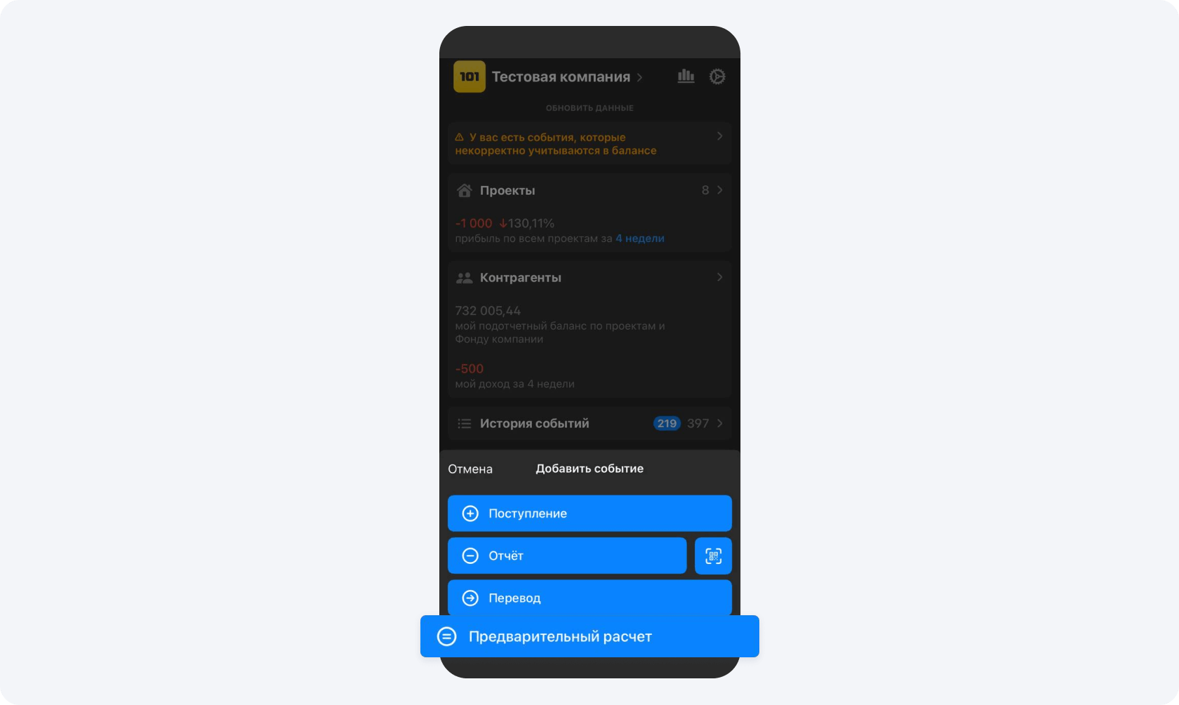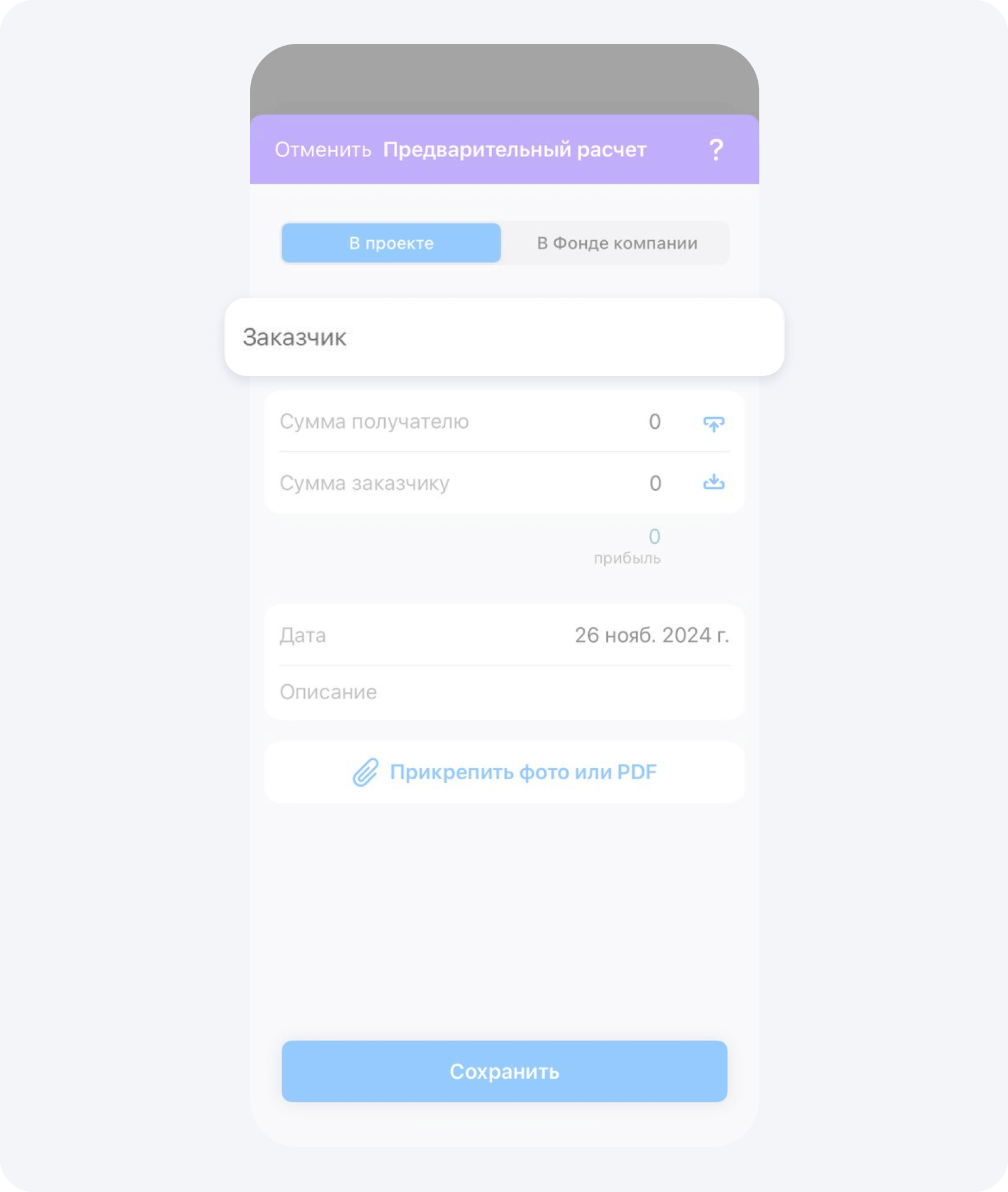 Также приложение позволяет легко и просто ориентировать заказчика по примерной стоимости работы с помощью балансового отчета с других похожих проектов.