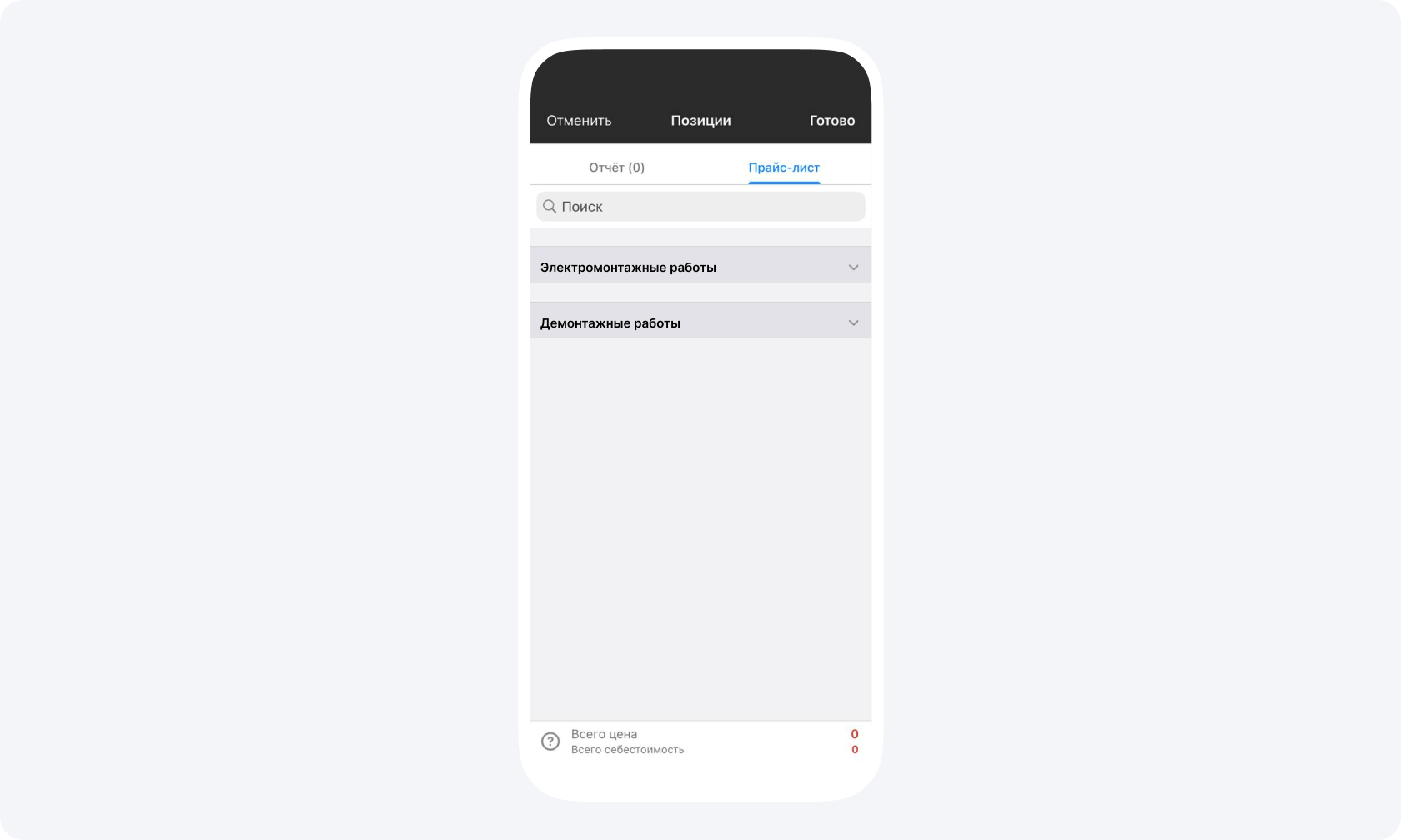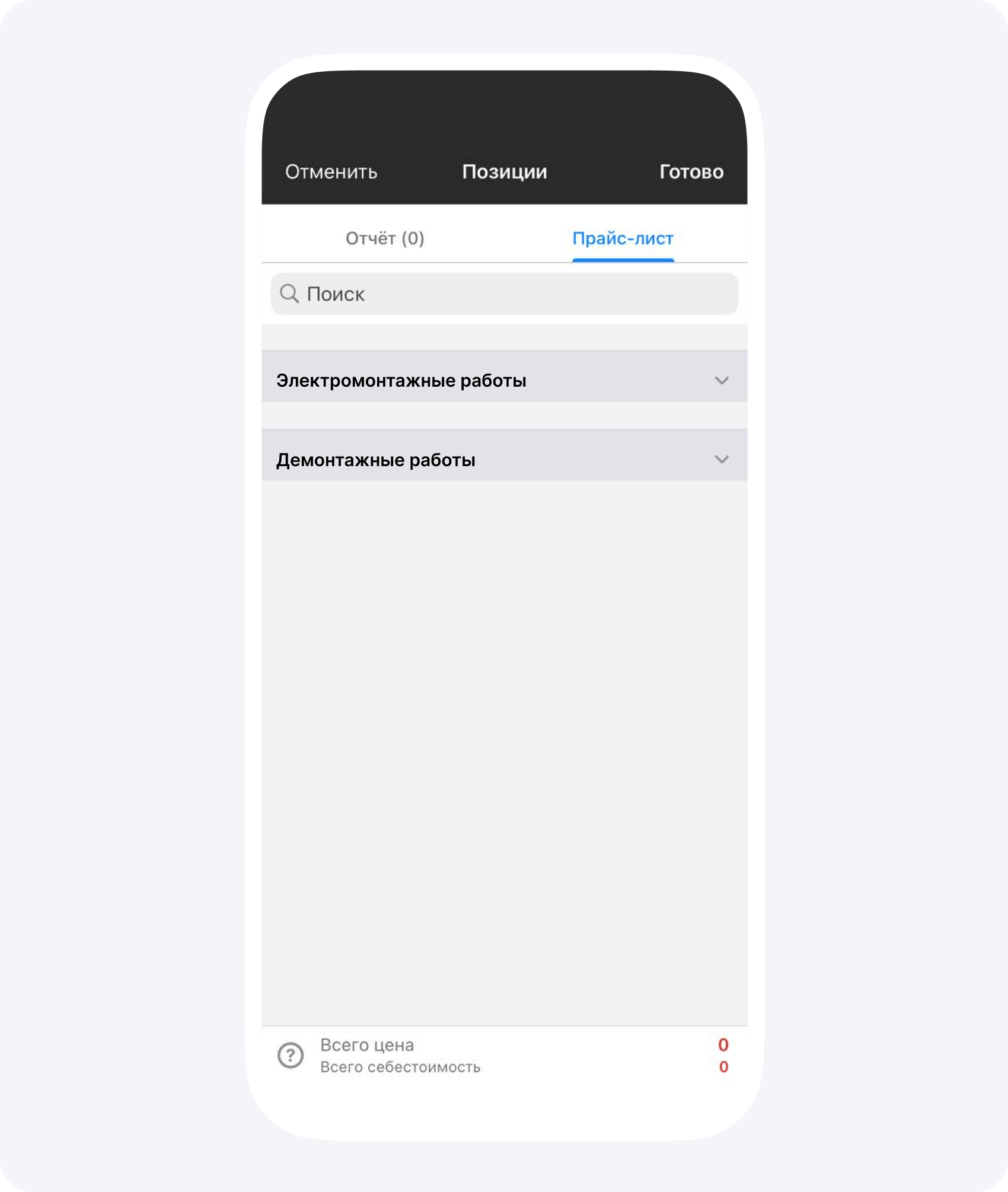 3. Выбрать из прайс-листа нужные работы и отметить объемы
