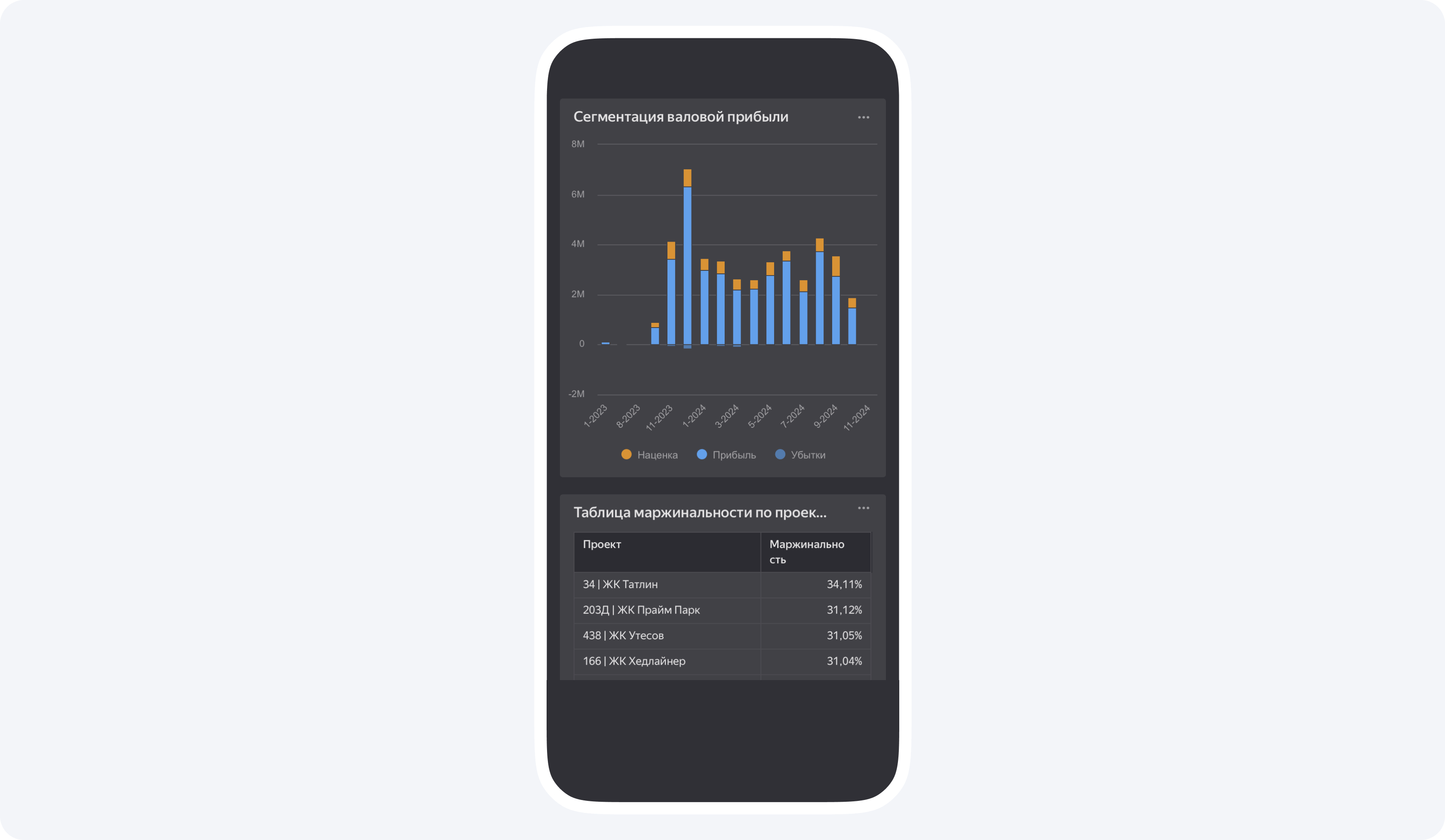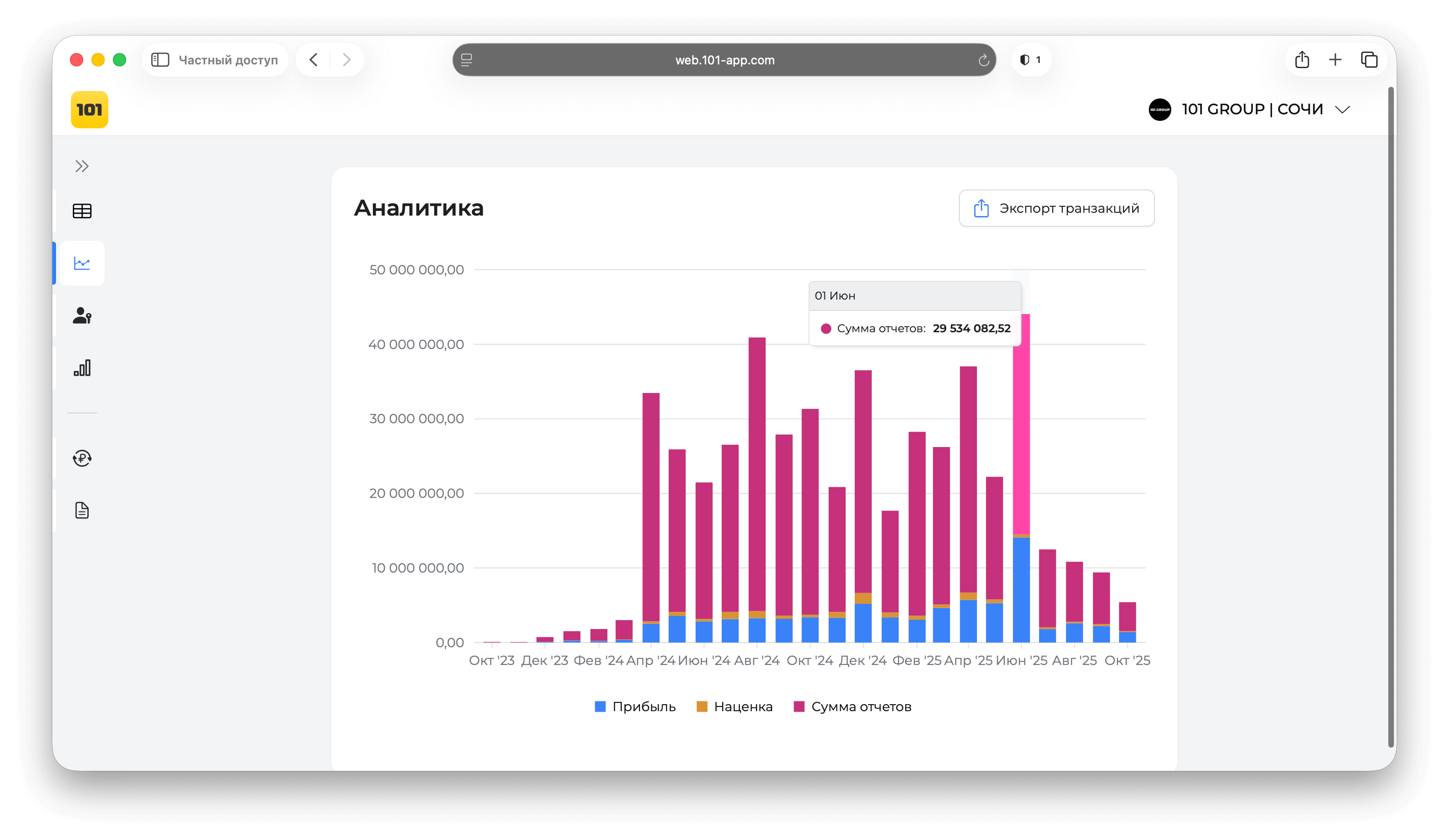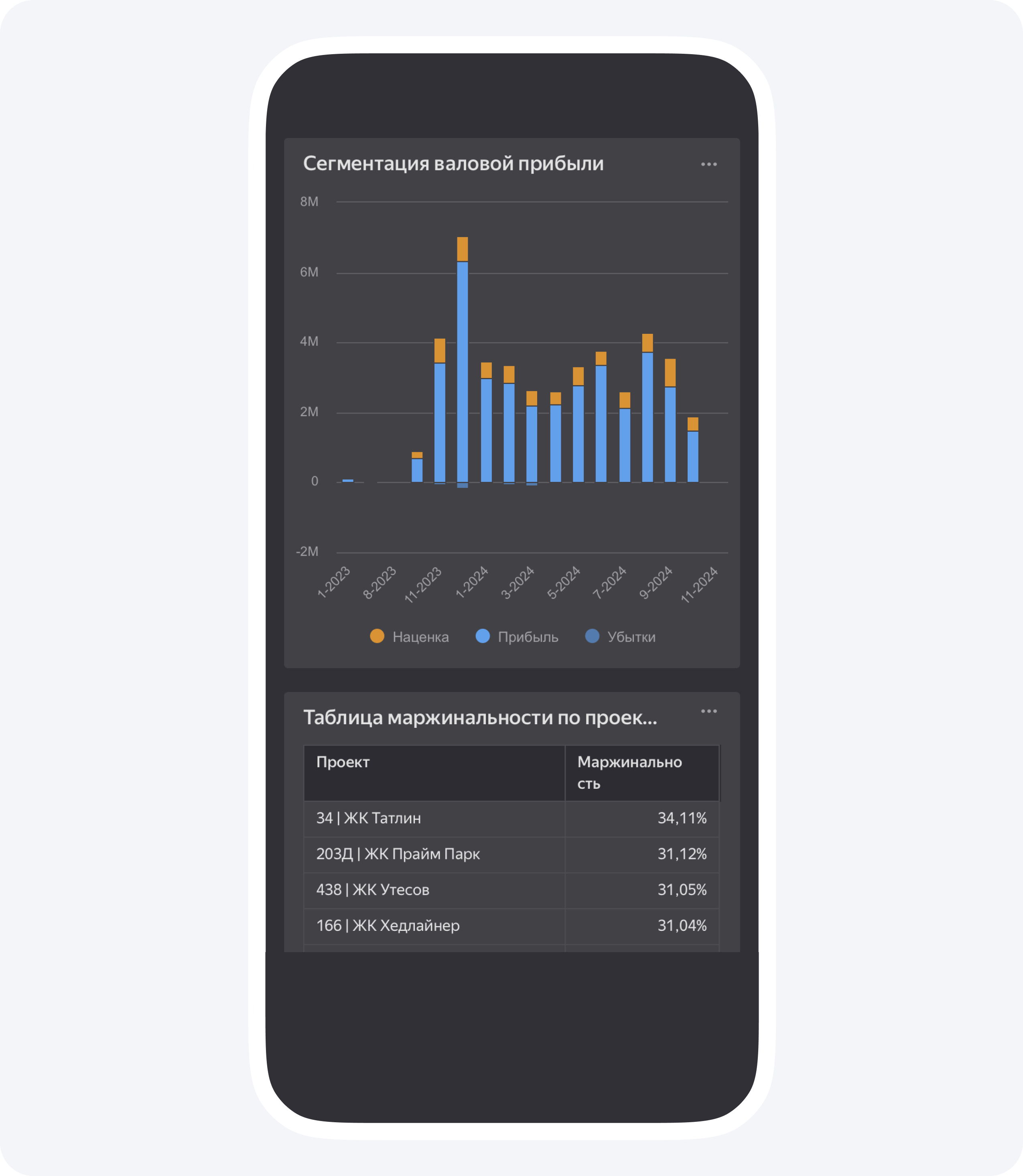 Аналитика в Приложении 101 автоматически считает маржинальность каждого вашего проекта отдельно и общее значение для всех объектов.
