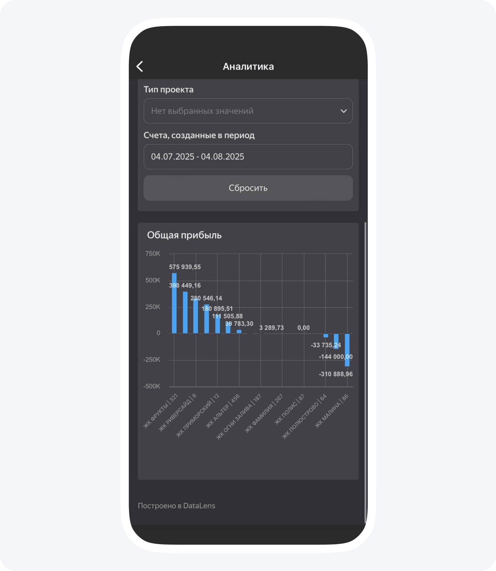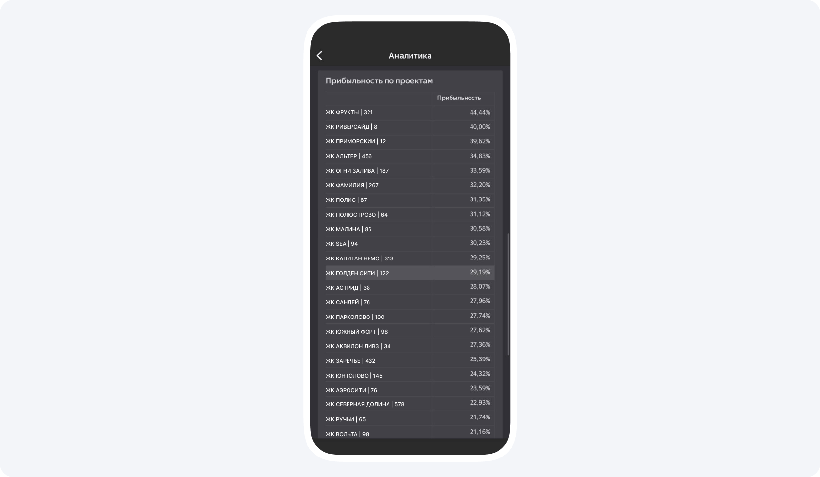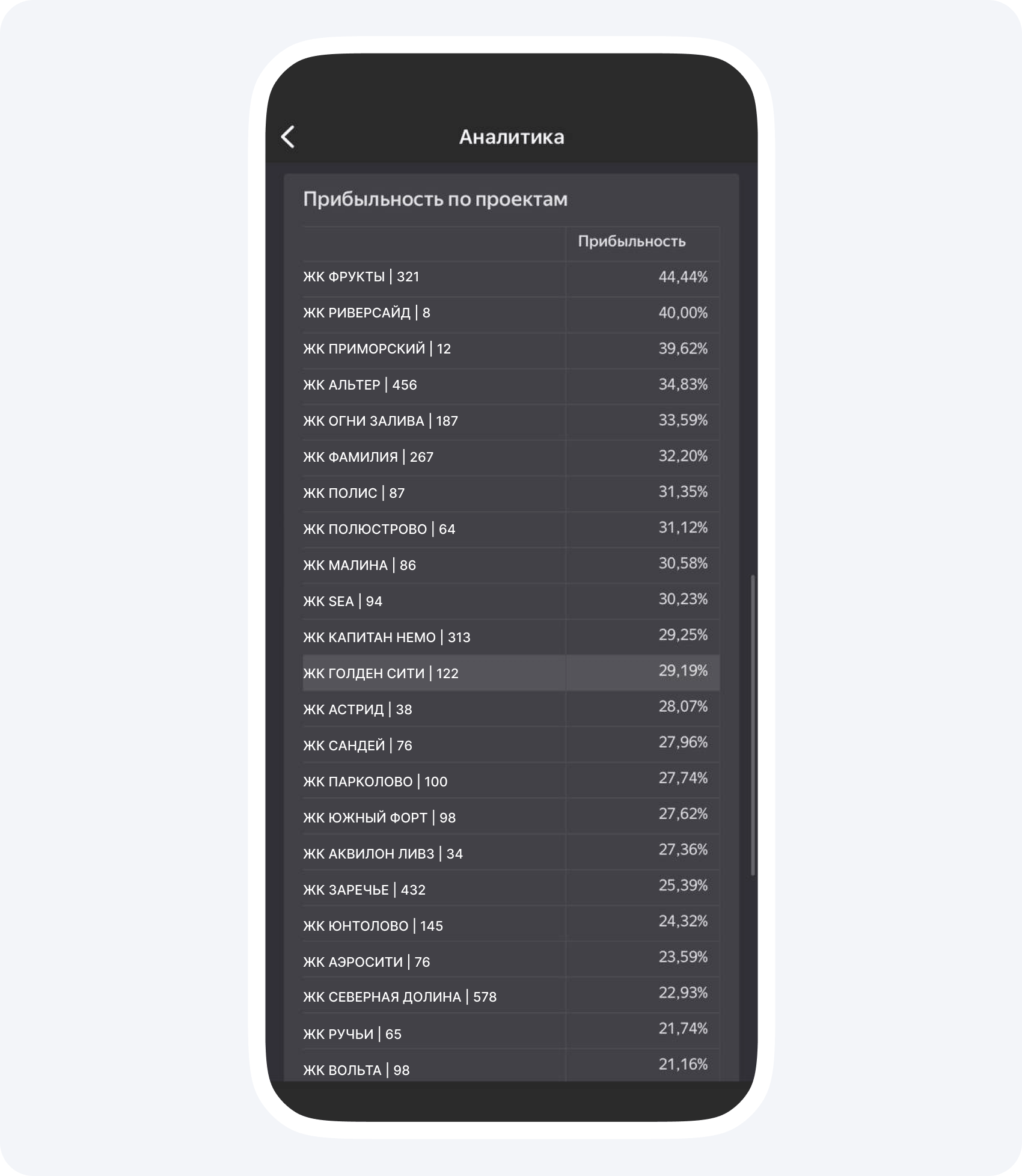 Прибыль. В Приложении 101 ее также можно отслеживать по проектам, чтобы видеть, какие из проектов приносят больше всего денег. Это уже не проценты, а рубли, которые также нужны для полноты картины.