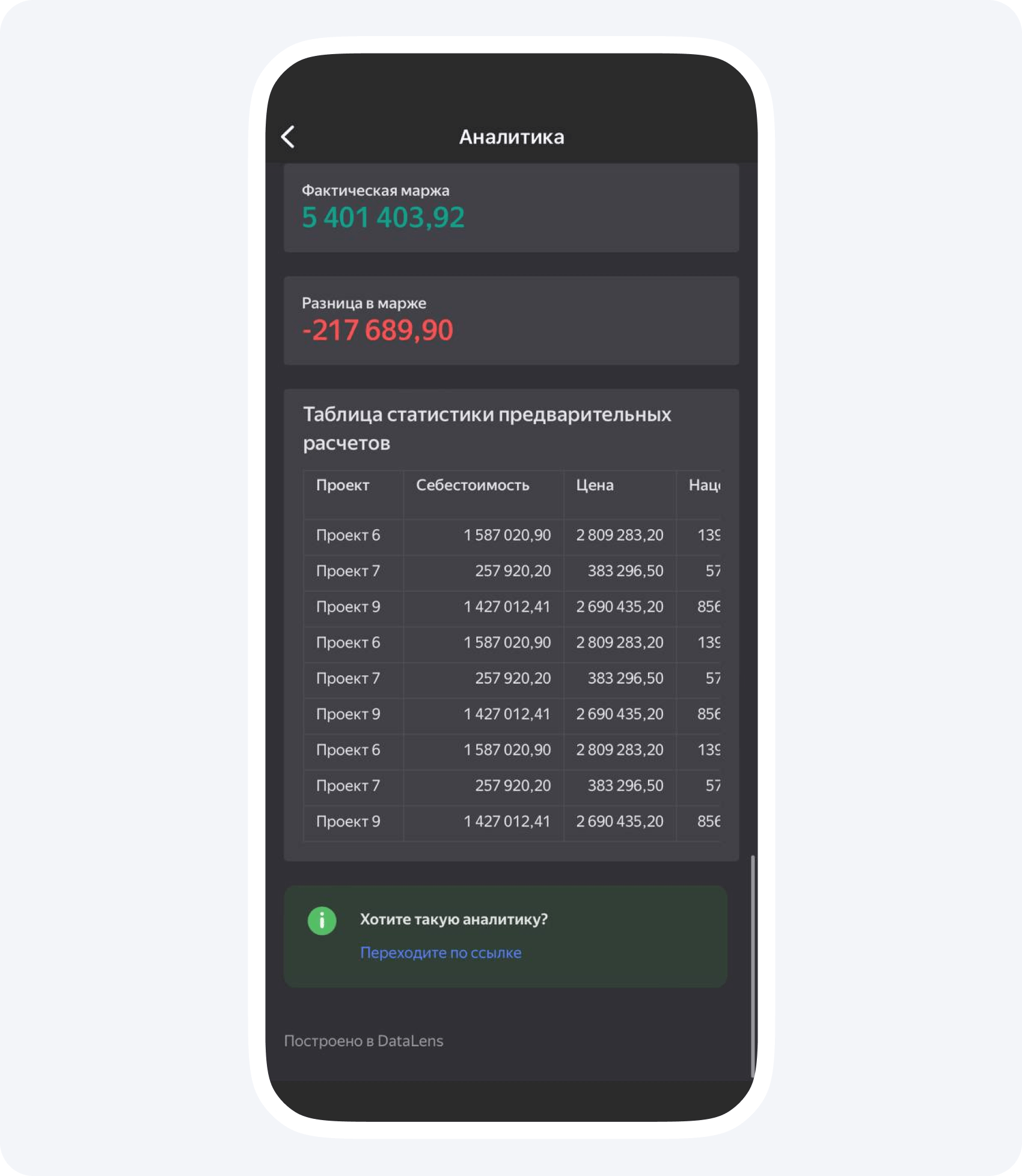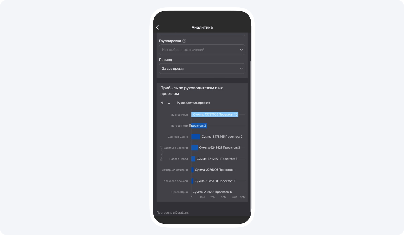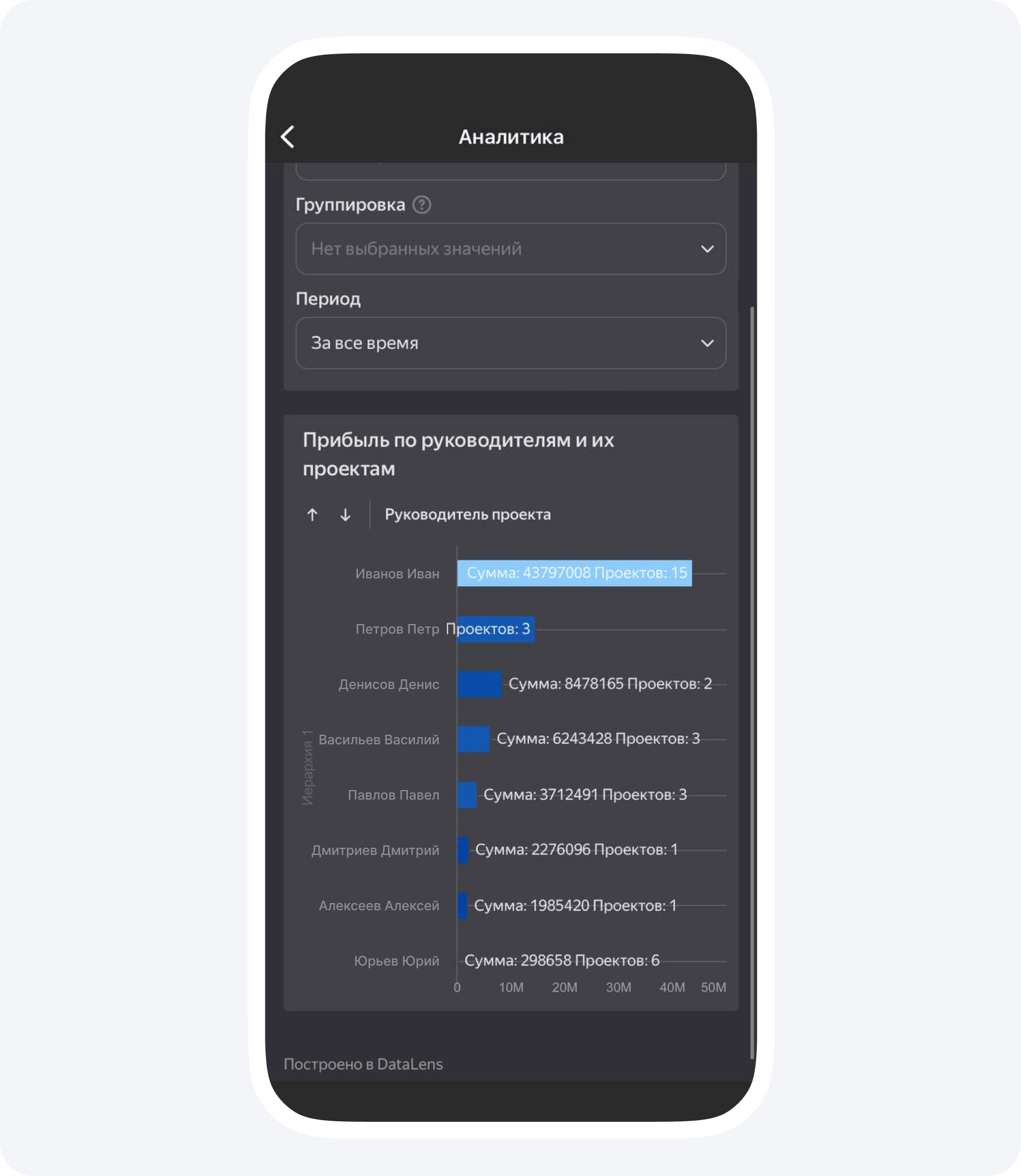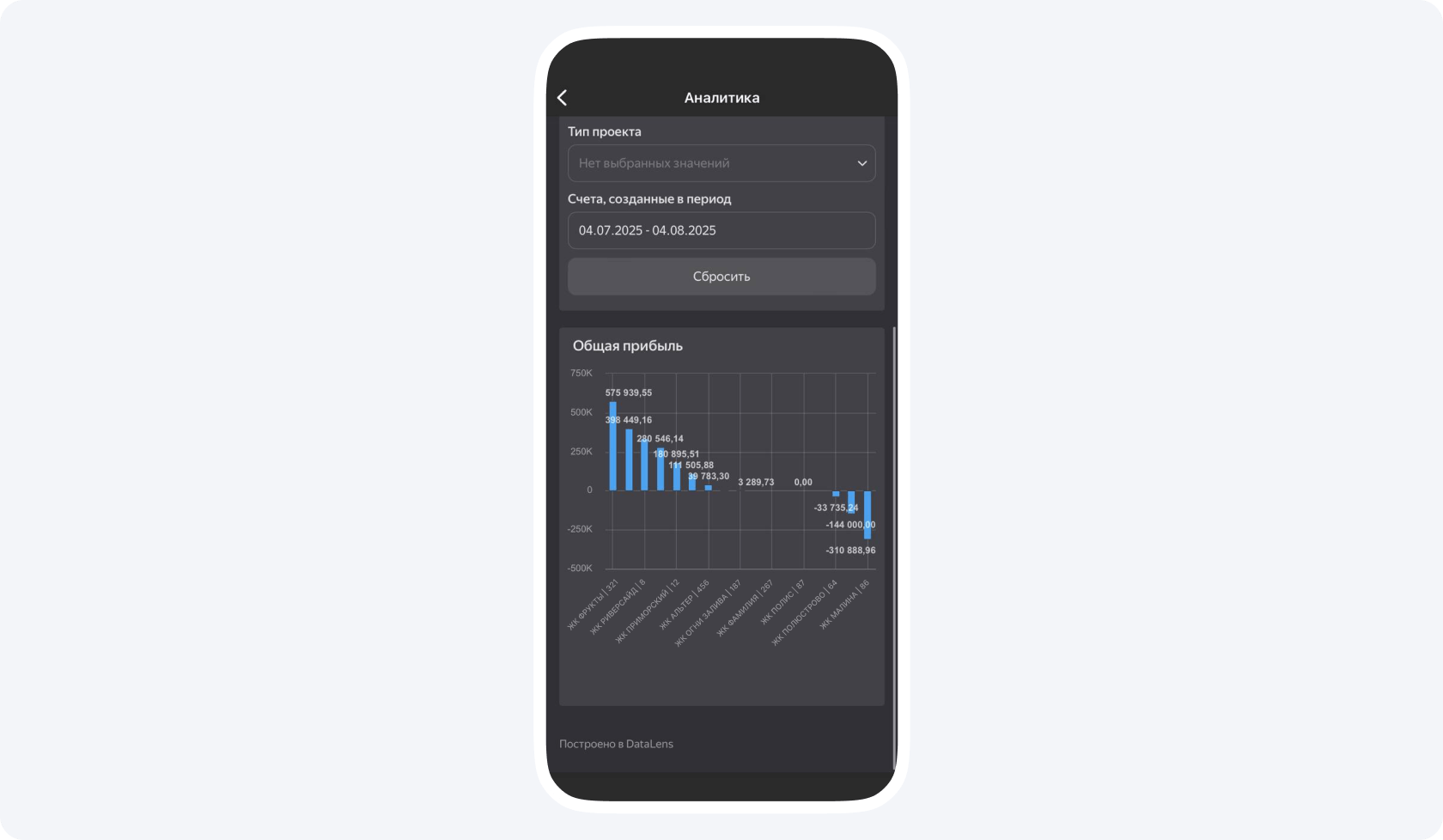 Прибыль. В Приложении 101 ее также можно отслеживать по проектам, чтобы видеть, какие из проектов приносят больше всего денег. Это уже не проценты, а рубли, которые также нужны для полноты картины.