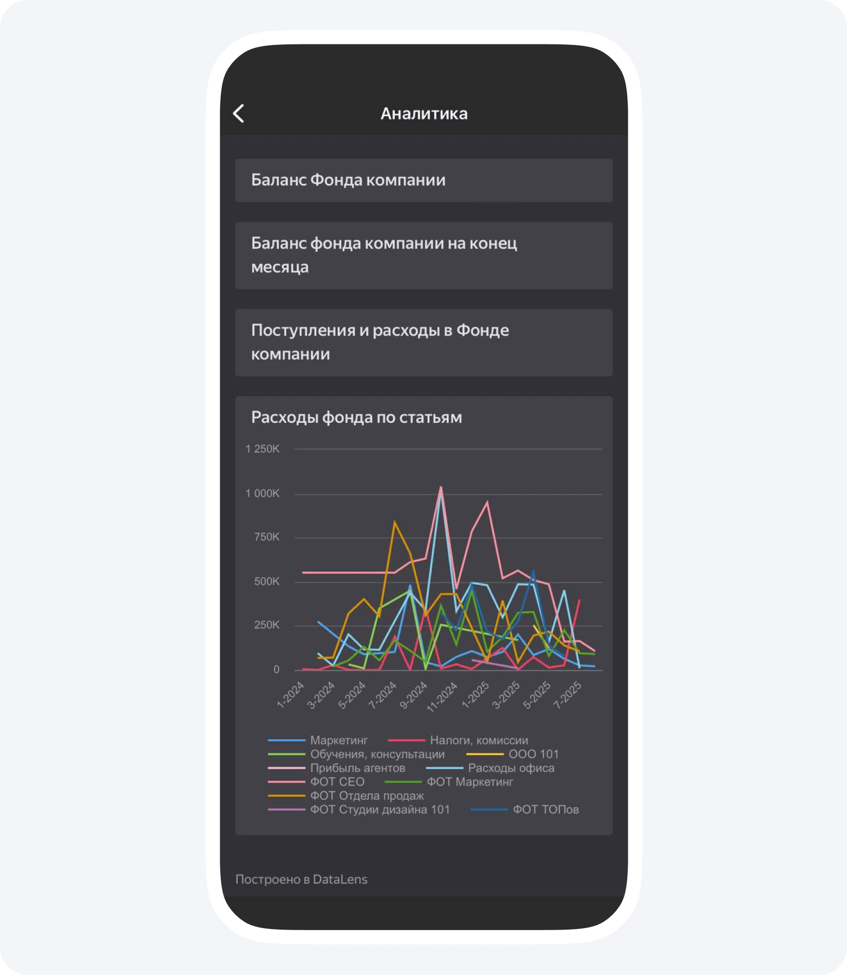 Для этого вам потребуется графики из Приложения 101: мы уже посчитали для вас план и факт и рассчитали стоимость расходов по статьям (в фонде компании). То есть вы можете увидеть, как расходы в фонде, например, на продвижение и развитие отдела продаж влияют на другие показатели компании.