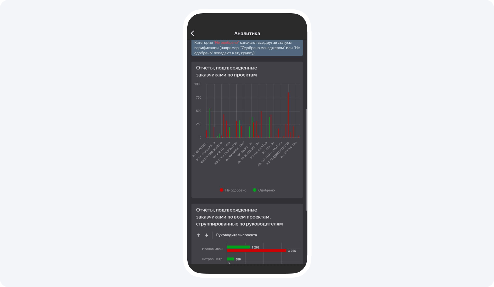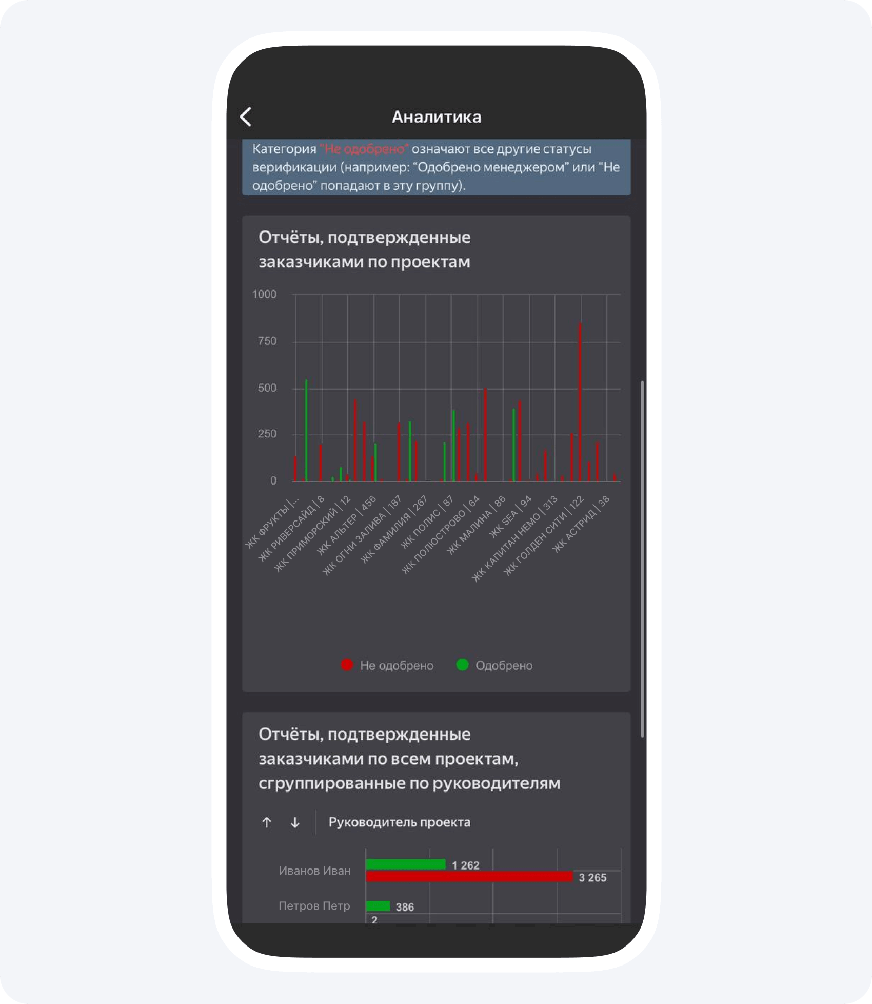 - Проанализировать эффективность сотрудников. Возможно, наиболее ответственный и уверенный в своих силах руководитель проектов ведет у вас всего 1-2 объекта, а вы даже не задумывались, что он так хорош. Объективные цифры помогают увидеть реальность без предвзятости к новичкам или «неопытным», с вашей точки зрения, сотрудникам.