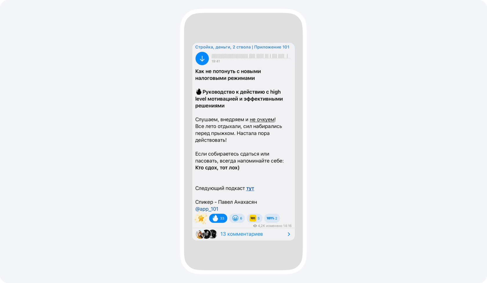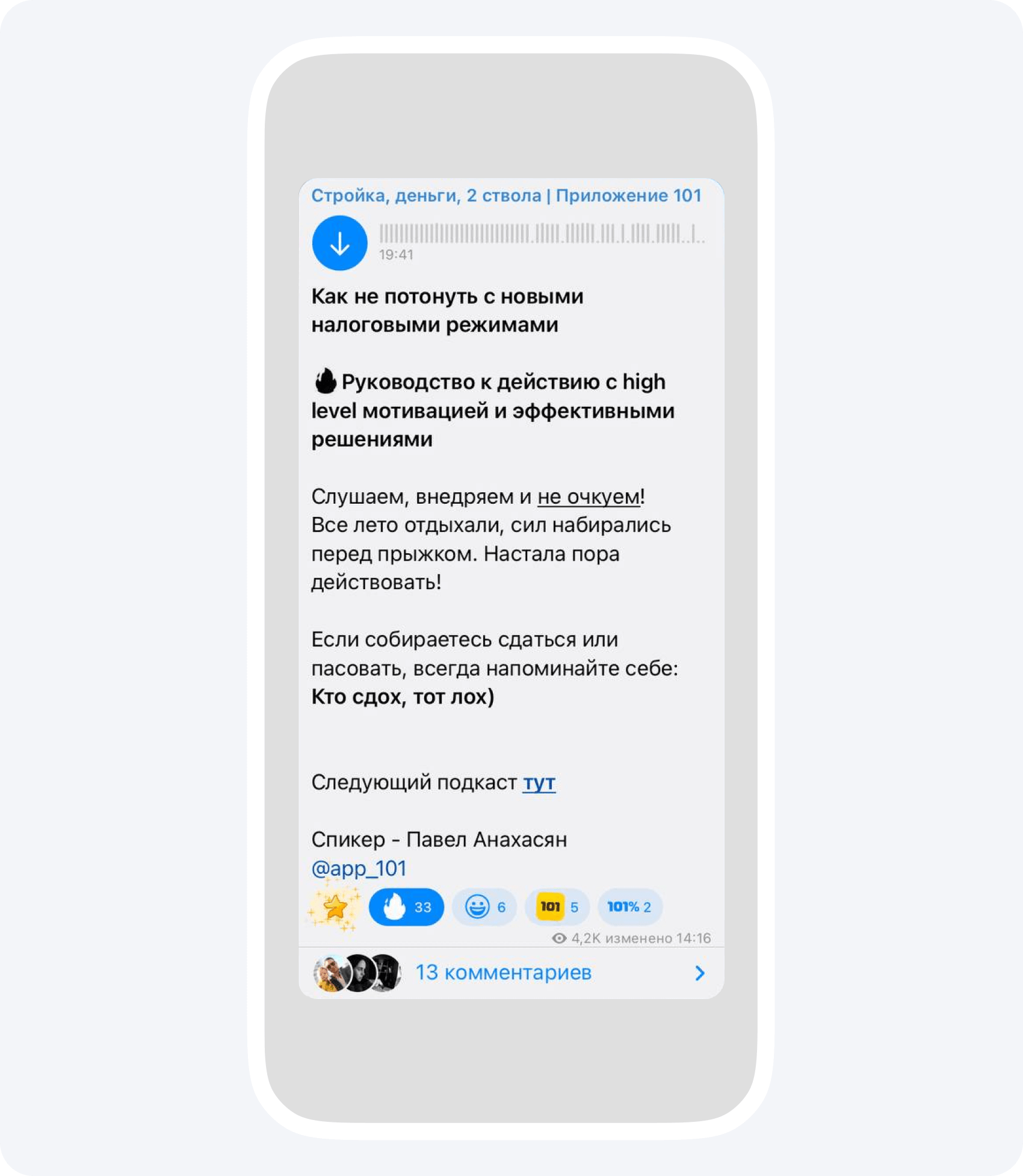 Расчет делаем с пониженной ставкой НДС, потому что большинство клиентов МСБ — физлица или «упрощенцы». Об этом мы записали вас вас подробный подкаст о предстоящих налоговых изменениях. Переходите в Telegram-канал Приложения 101, чтобы послушать его, пока едете за рулем или куда-то идете.