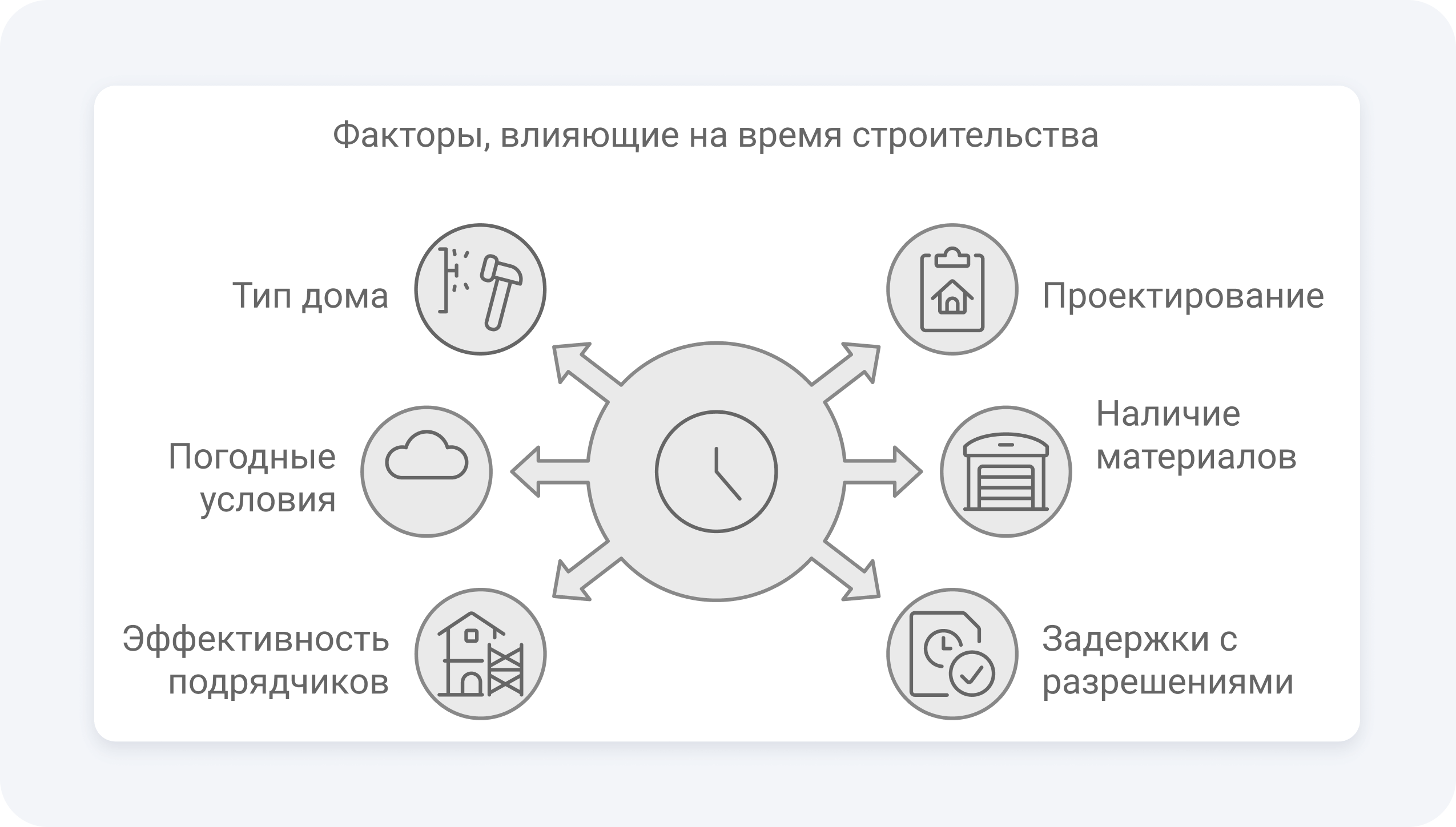Время строительства дома зависит от множества факторов. Важно учитывать следующие аспекты: