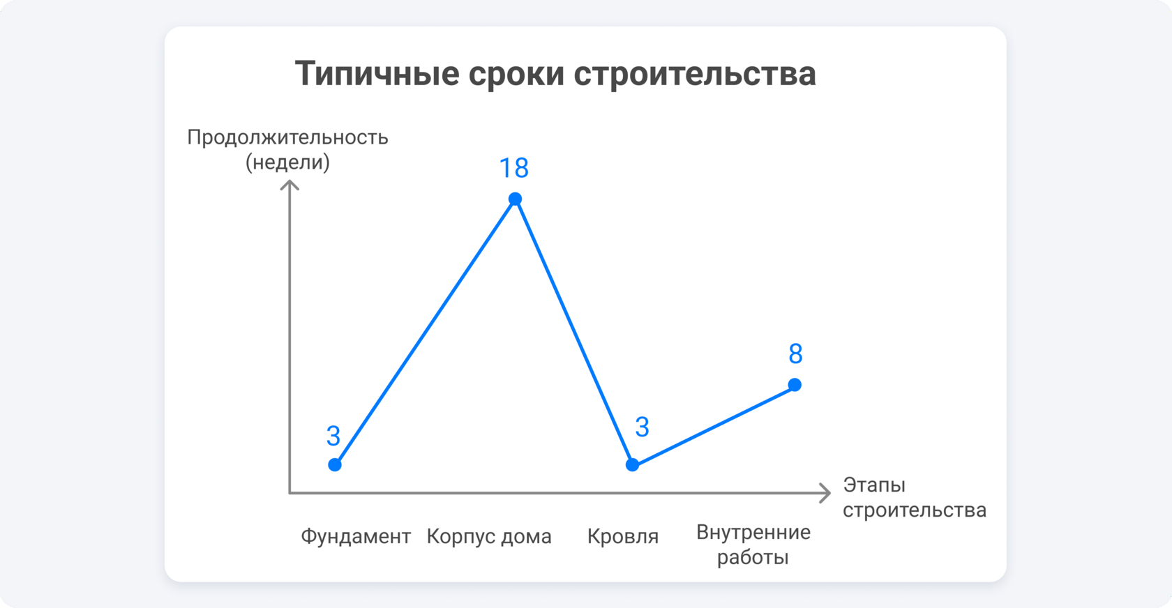 Длительность этапов может зависеть от сложности проекта и используемой технологии. Некоторые компании предлагают сделать все намного быстрее — за 2−3 месяца, но, как правило, это сроки работ без отделки.