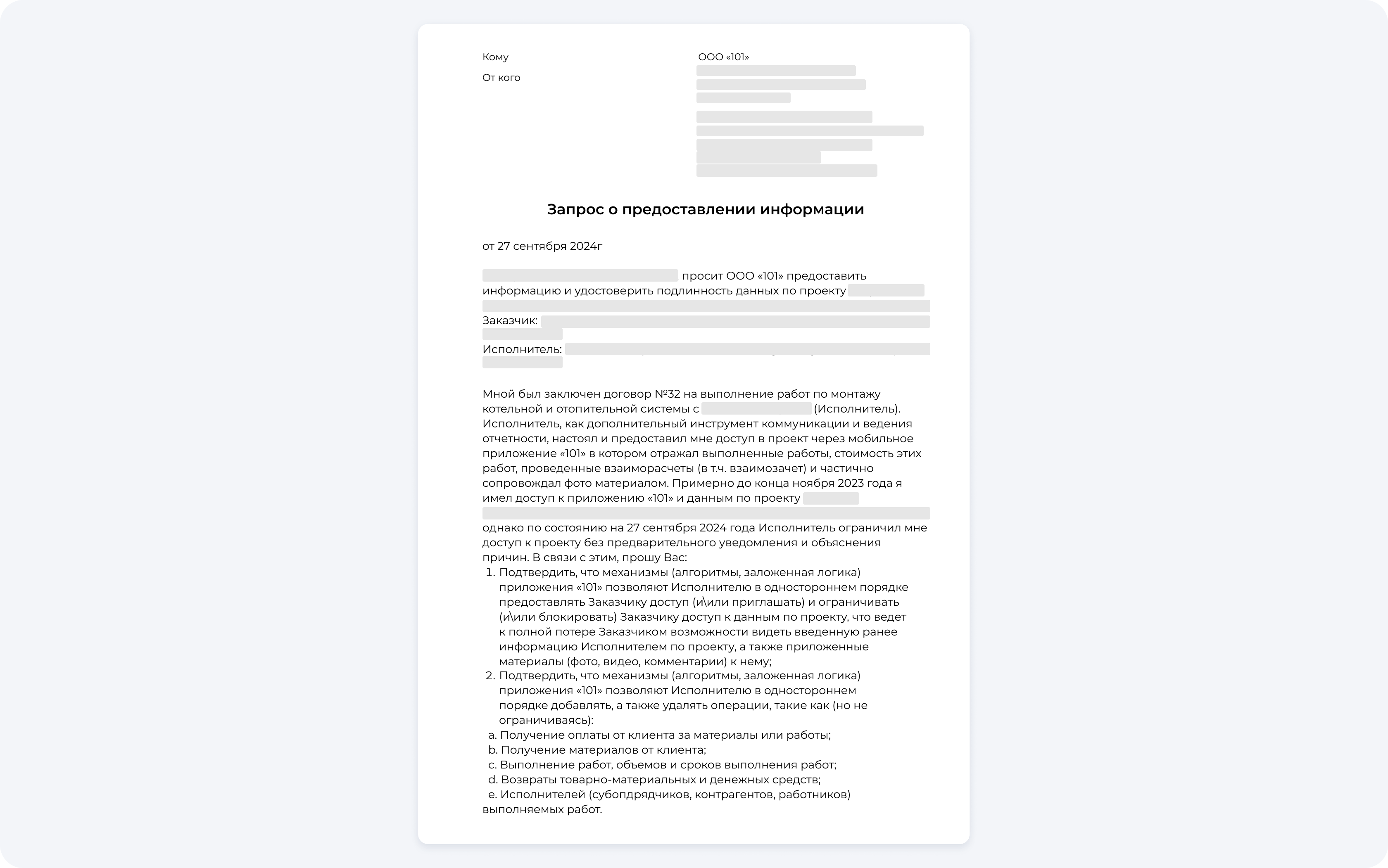 Приложение 101 было создано, чтобы подрядчики могли договориться с заказчиками без обмана. Да, оно помогает строителям с управленческим учетом, цифровизацией данных о расходах и получением аналитики по доходам. Но самая первая наша задача — обеспечить комфортную коммуникацию между всеми участниками сделки: