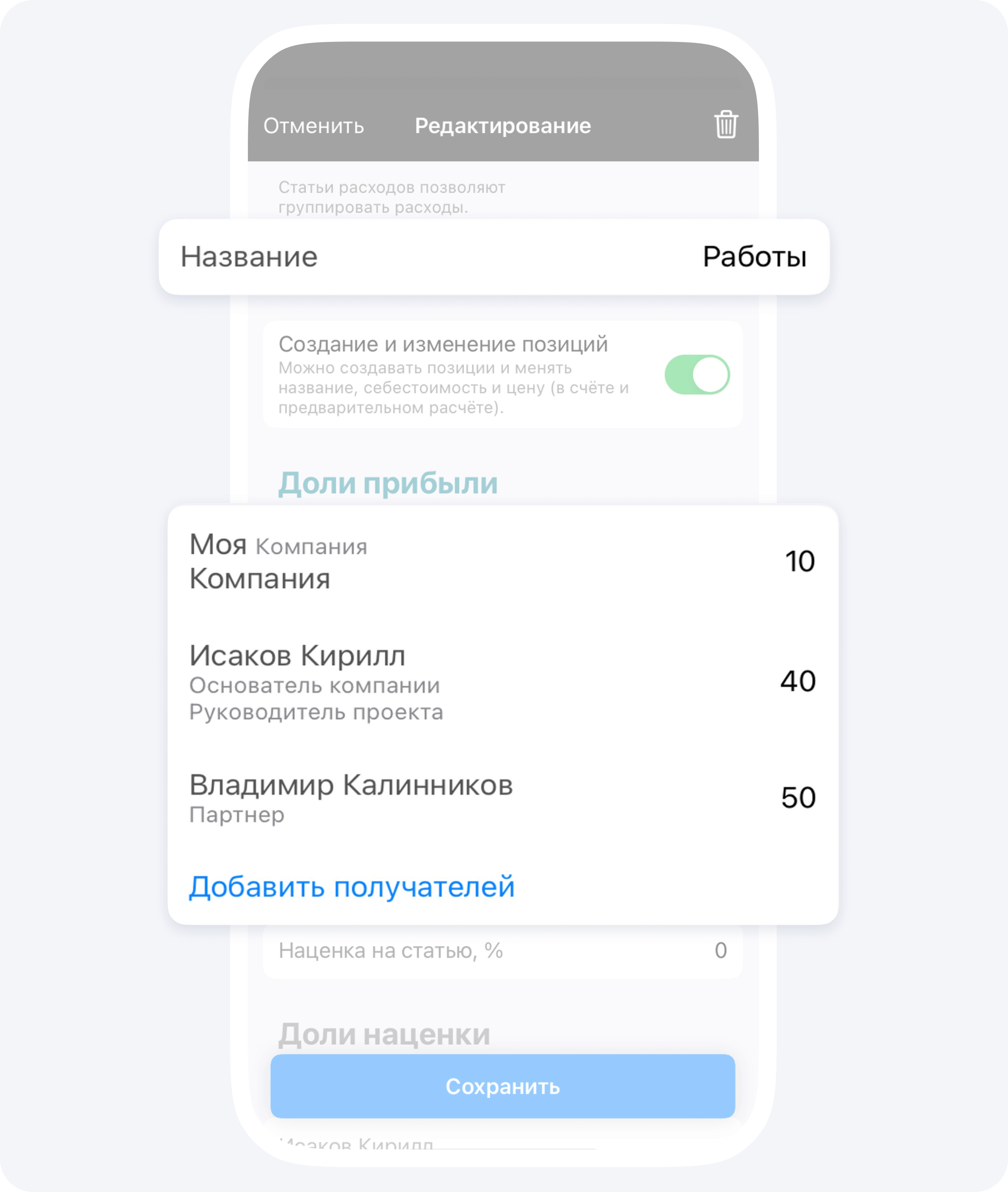 Зачем это нужно? Теперь вы будете видеть, на что тратятся деньги, сколько прибыли и наценки получает ваша компании по каждой статьи расходов. Это позволяет определить высокомаржинальные услуги, чтобы поднять общую прибыль.