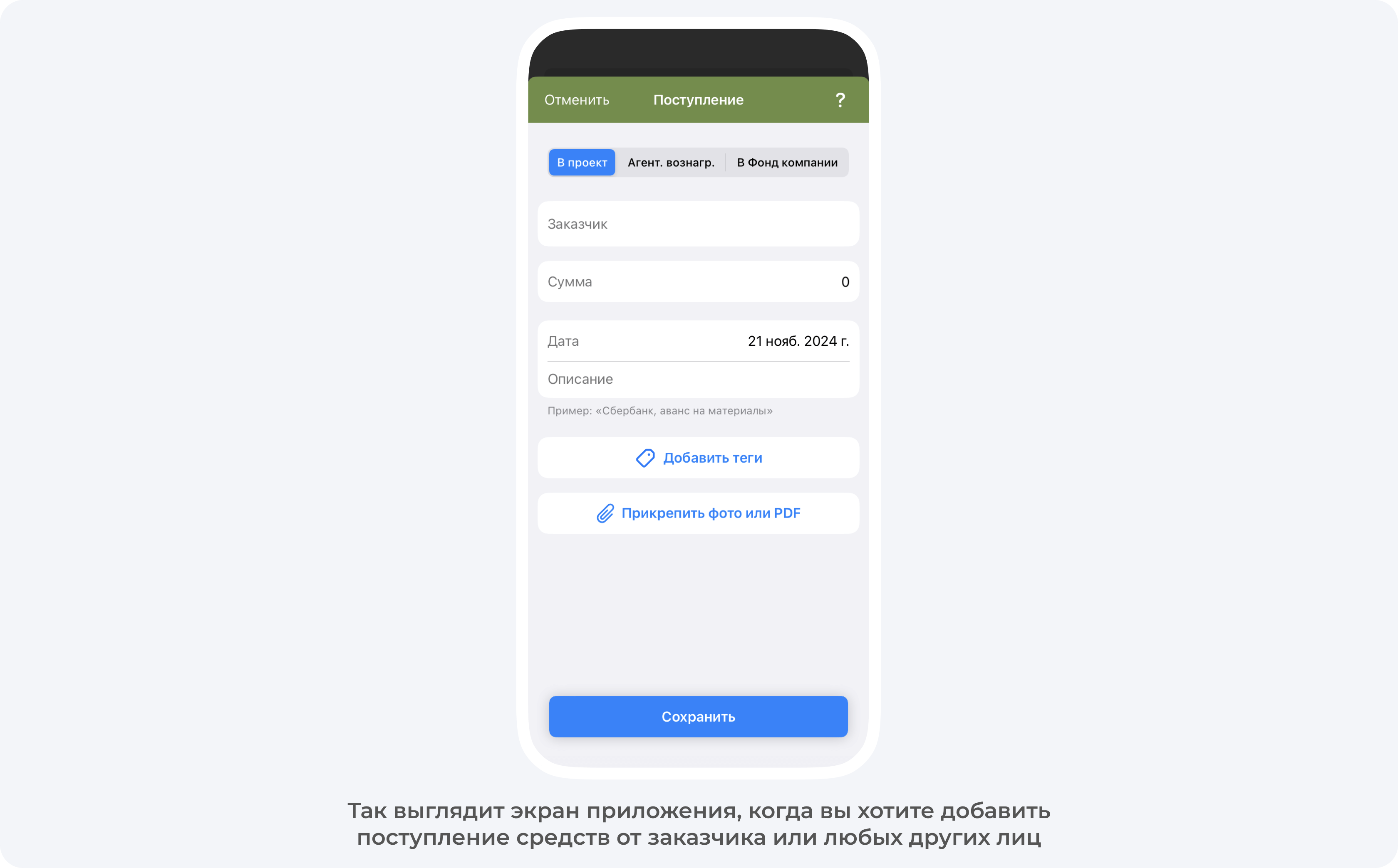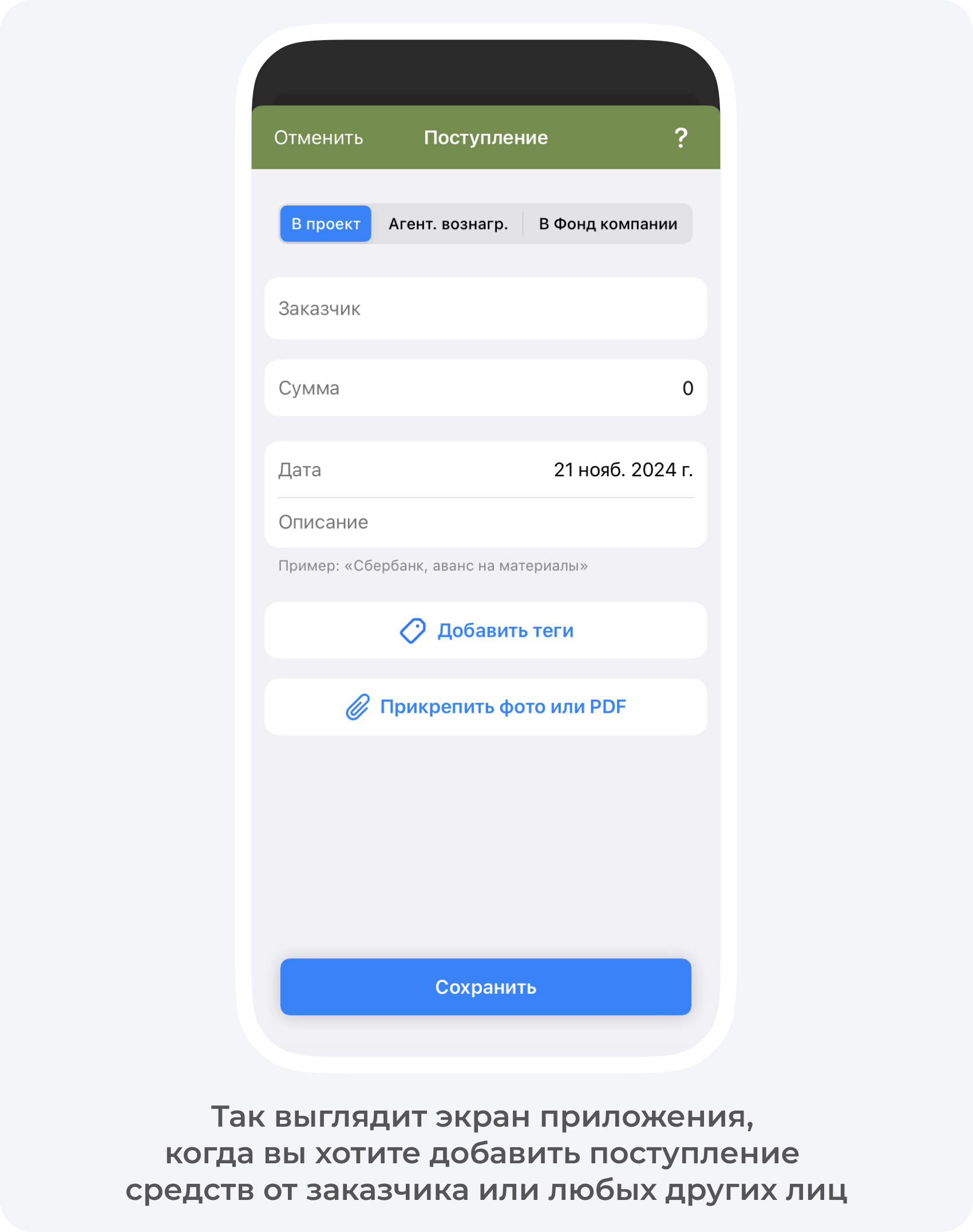 Большинство компаний принимают деньги на расчетный счет. С учетом на этом этапе все просто: достаточно внести входящий платеж от заказчика в приложение и добавить заказчика, чтобы он тоже отслеживал различные траты.