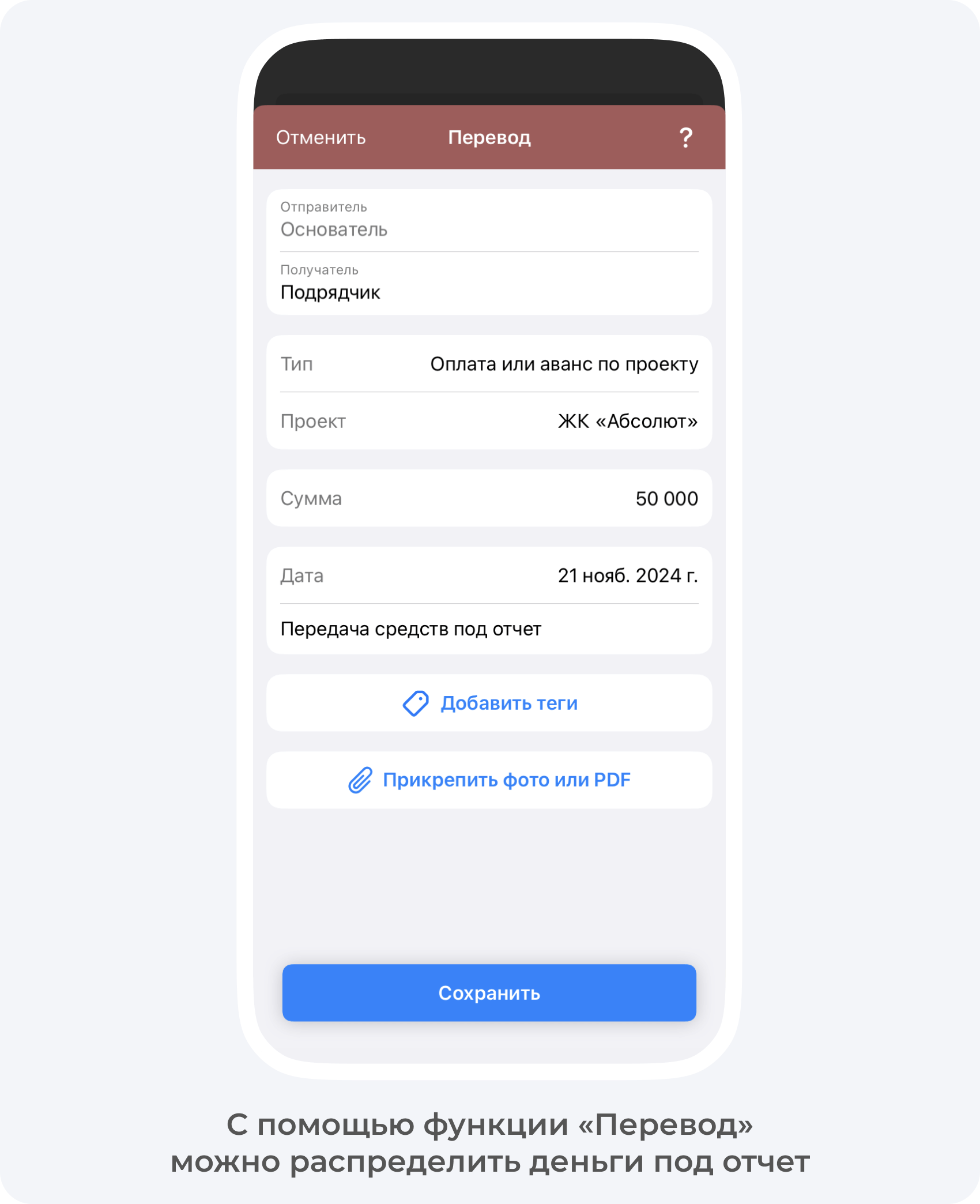 Избежать ситуаций пропавших денег позволяет приложение 101. В нем вы фиксируете передачу денег ответственному лицу — прорабу или менеджеру объекта, и за каждую трату он отчитывается сканированием QR-кода на чеке. Данные о покупке мгновенно загружаются в приложение с сайта налоговой. Так у всех участников сделки появляется перед глазами список того, на что были потрачены деньги.