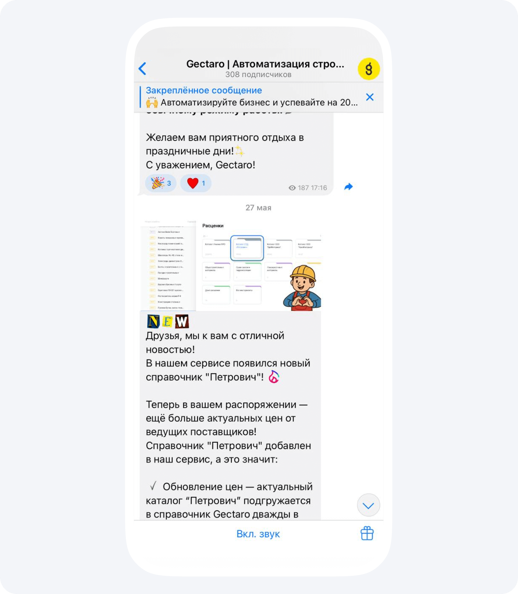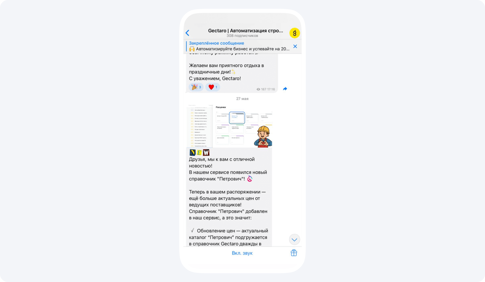 Gectaro имеет небольшое сообщество пользователей и регулярно обновляет свою программу. Нельзя сказать, что у компании есть активное комьюнити, но платформа ведет telegram-канал, в котором делится главными новостями.
