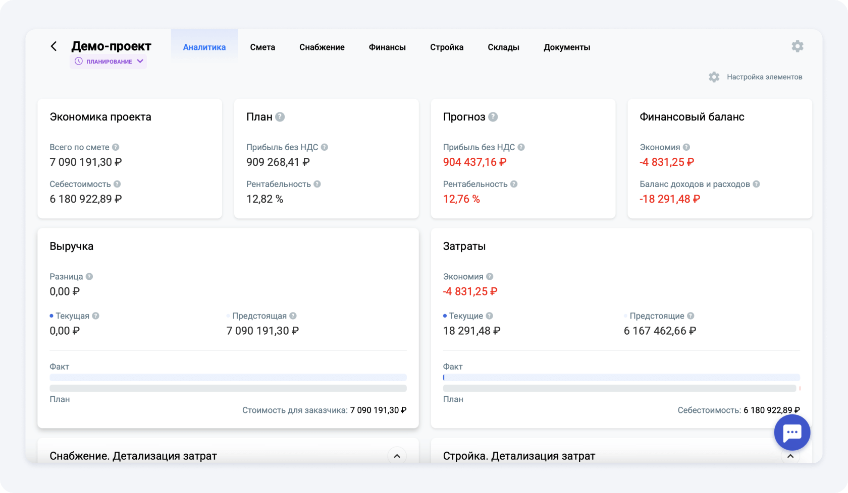 С помощью Gectraro упрощается работа с прайсами, можно добавлять свои материалы и расценки. Есть функции для учёта зарплат, платежей, согласований с заказчиком — это полезно, если вы отвечаете не только за расчёты, но и за организацию работы на объекте. Интерфейс несложный, но из-за количества функций может потребоваться время на привыкание.