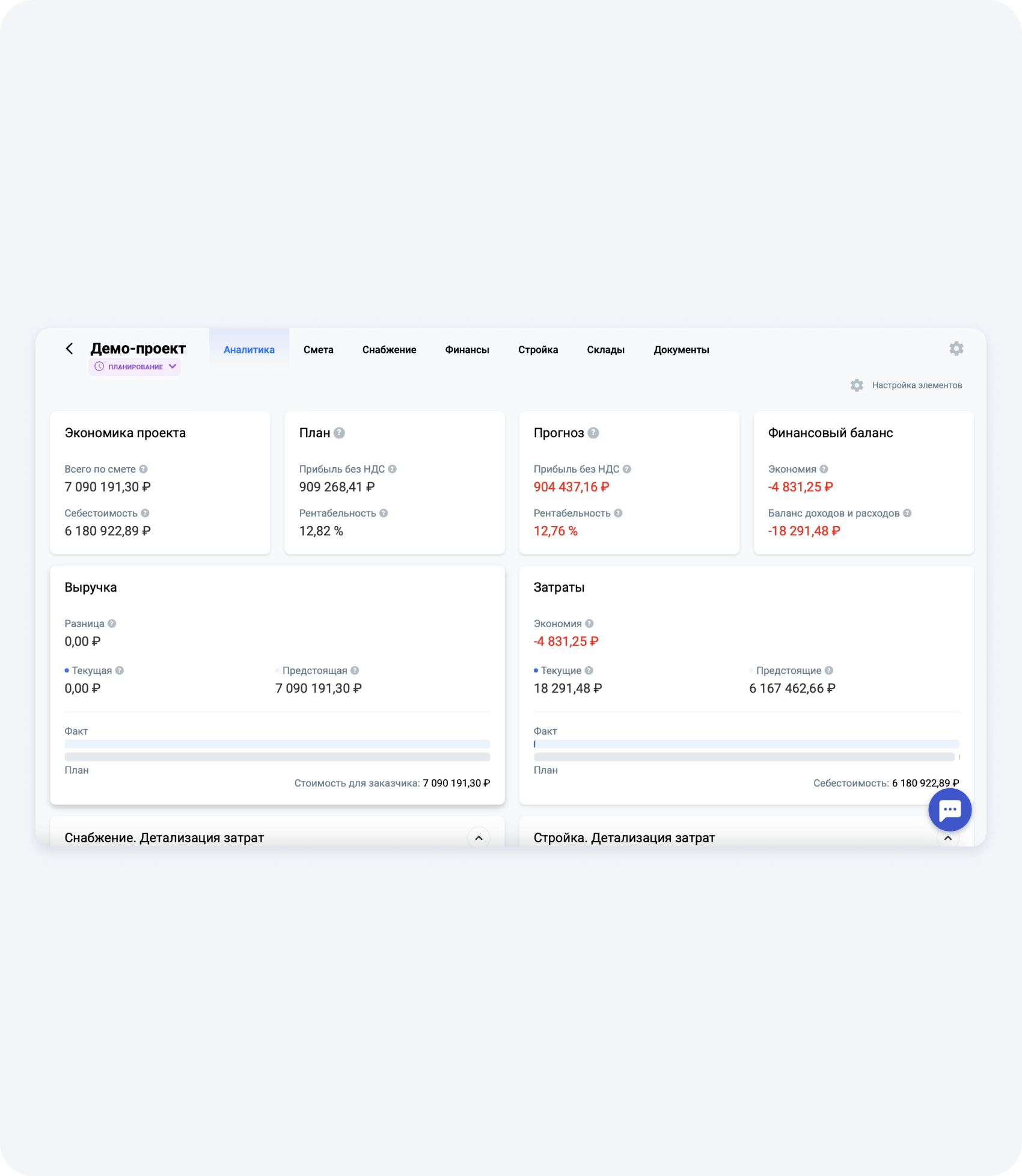 - Базовый подходит для компаний, стремящихся к структурированному управлению. Включает до 8 пользователей, неограниченное количество проектов, резервные копии на e-mail, импорт из сметных программ (Гранд-Смета, Смета.Ру, РИК и др.), а также интеграции по API. Стоимость — 33 333 ₽ в месяц при годовой оплате.