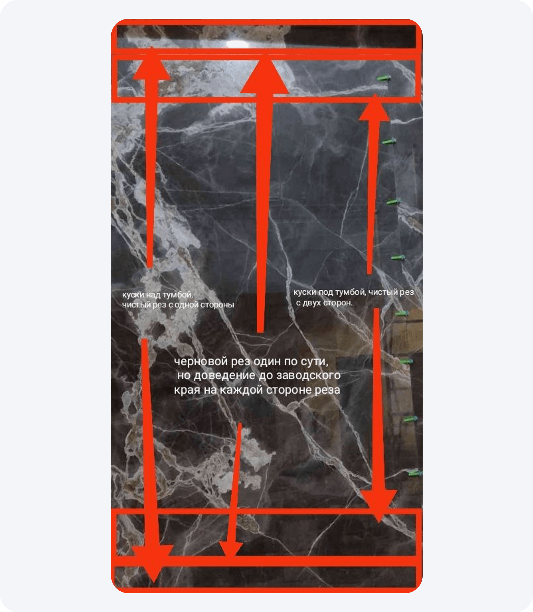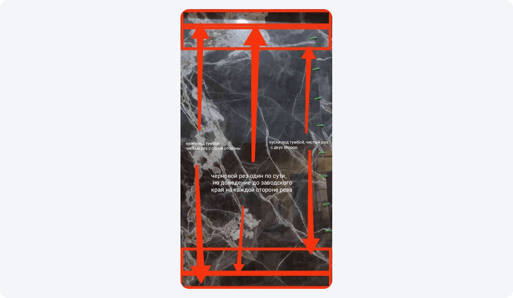 Схема расположения кусочков плиты, по ней можно увидеть, что одну большую плиту разрезали, чтобы разместить тумбу.