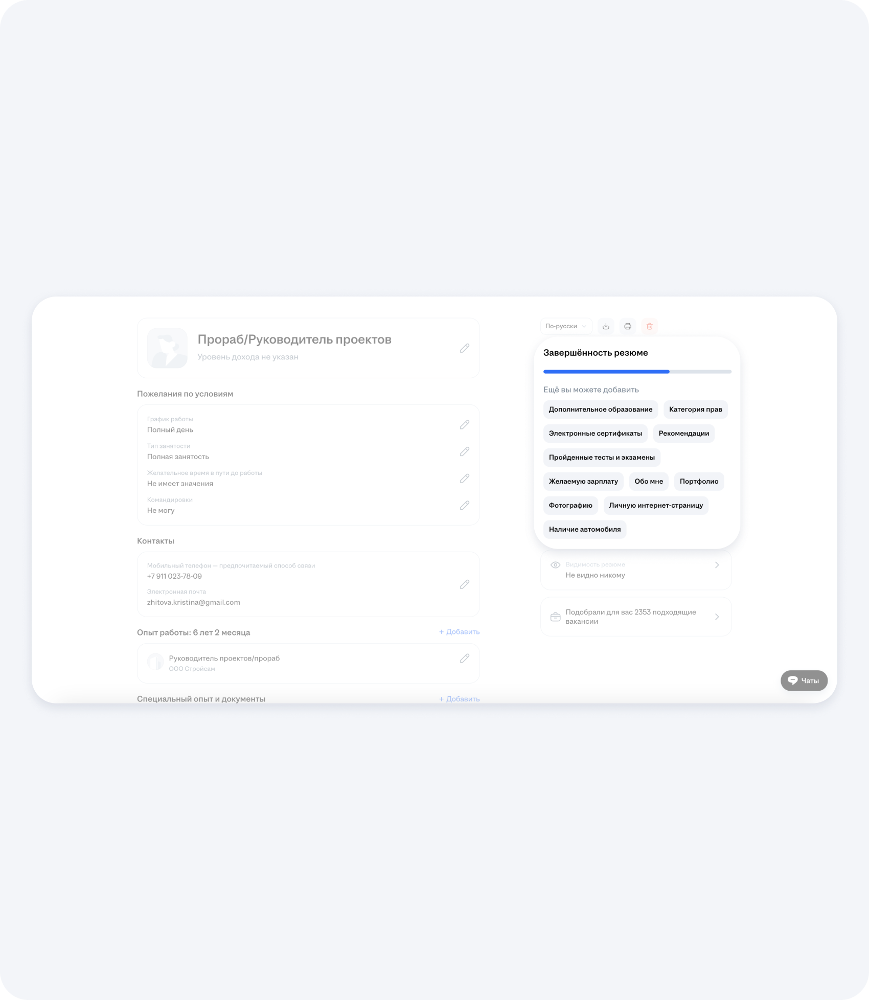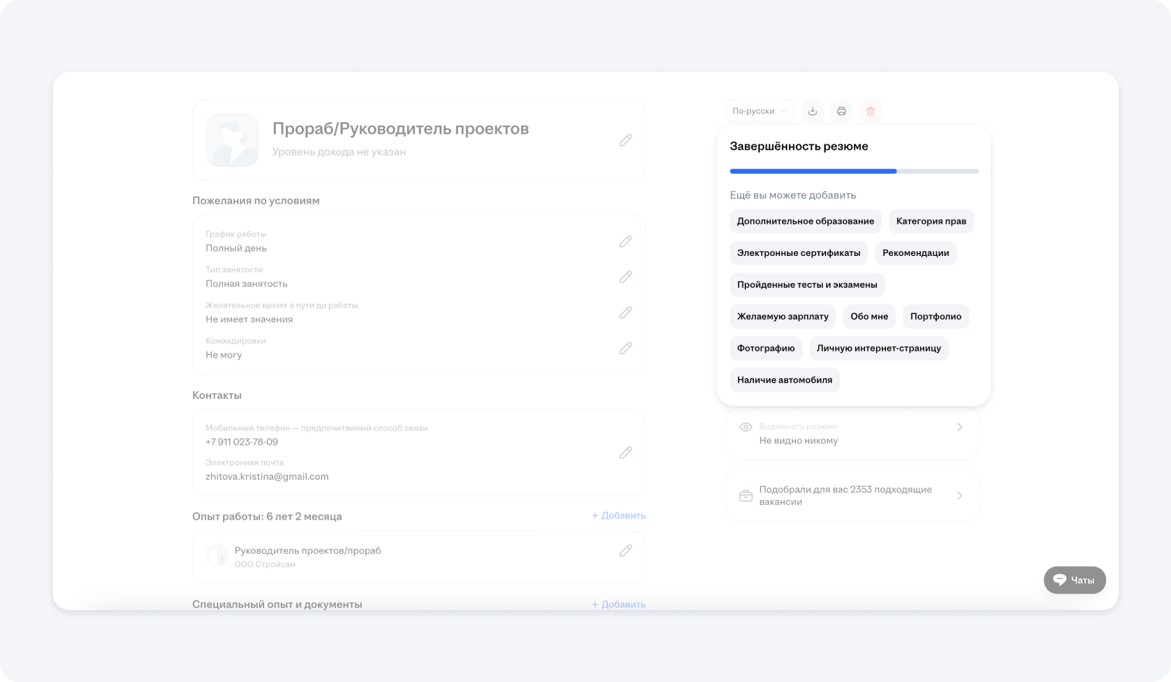 Мы рекомендуем заполнить максимум информации о себе + выгодно рассказать о своих преимуществах: