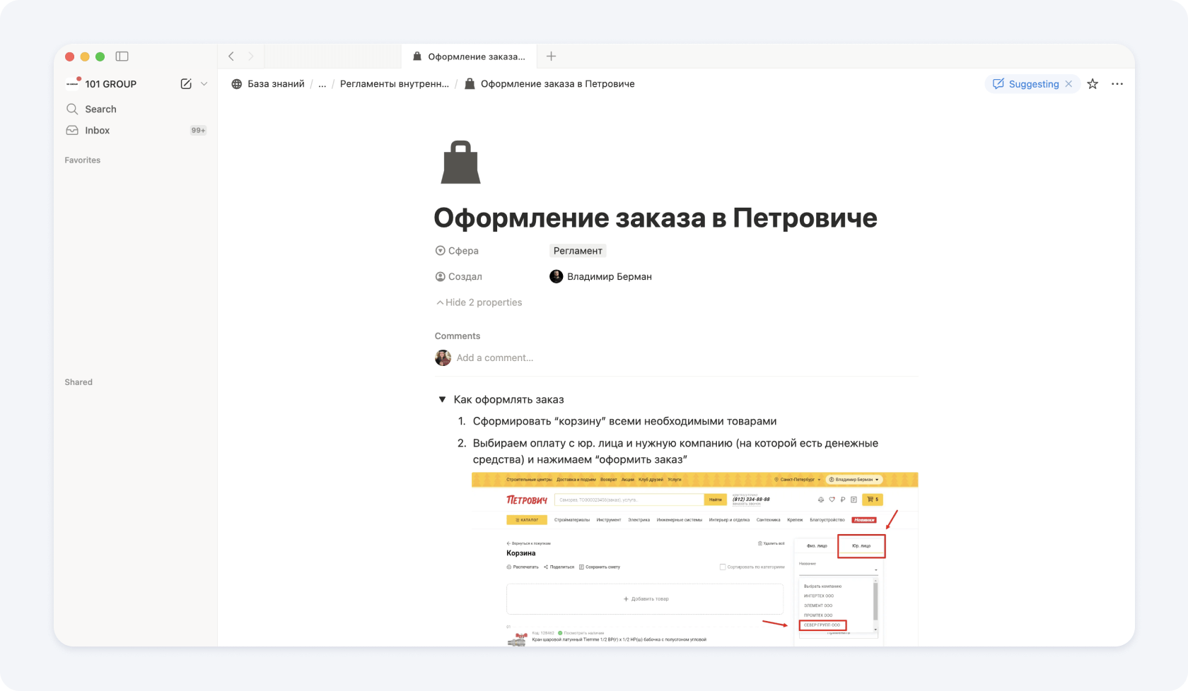 - Храните все регламенты в одном месте. В идеале, это могут быть файлы в Notion или любое облачное хранилище. Ссылку на тот или иной регламент можно будет быстро прикрепить к позициям прайс-листа, чтобы новые сотрудники могли быстро к нему обратиться.