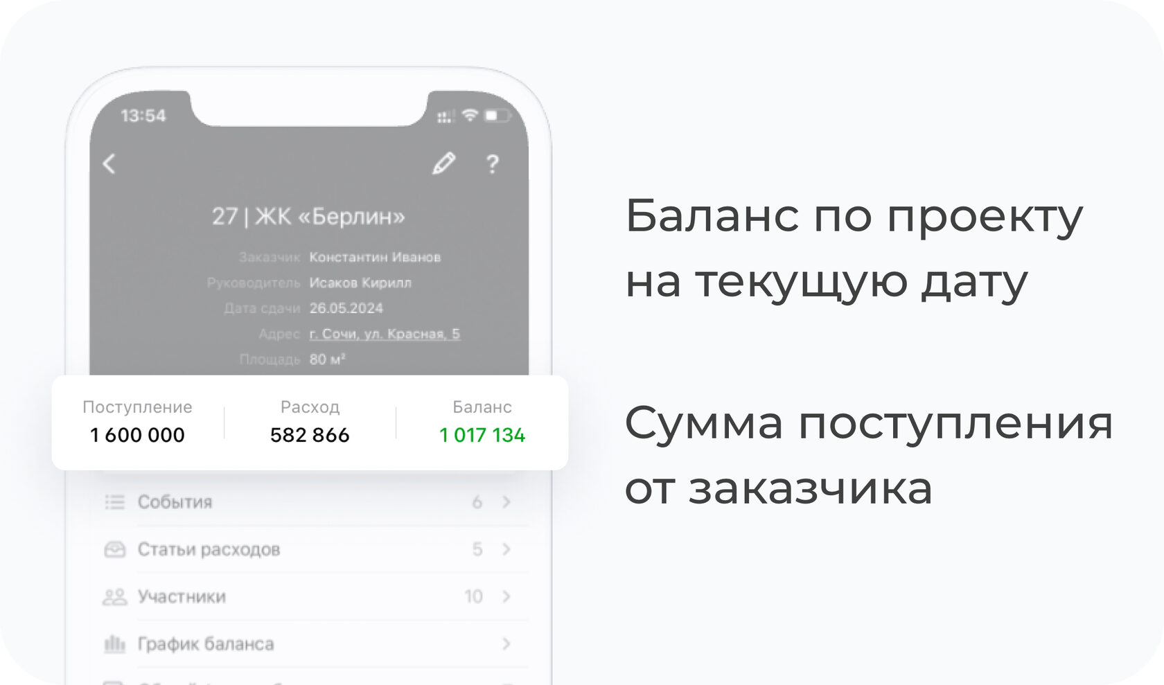 Заказчику виден баланс проекта