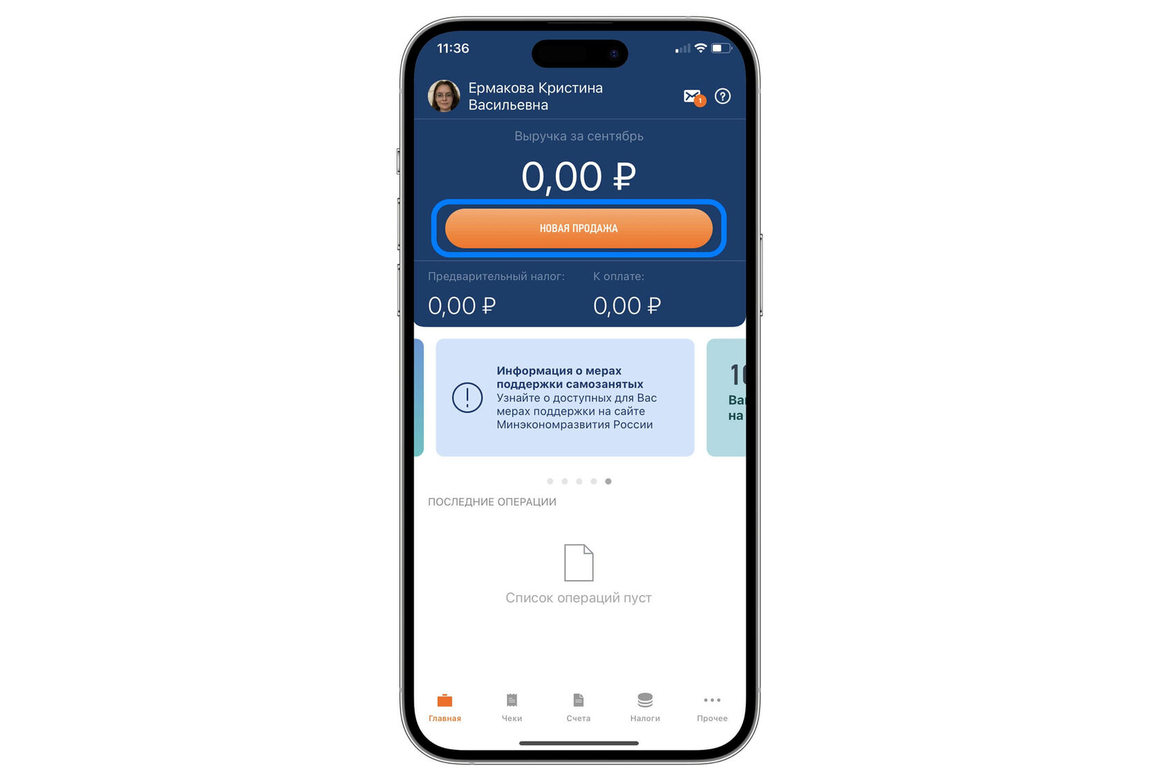 У приложения довольно простой интерфейс, в котором все визуально понятно. Здесь будет отображаться ваша выручка, уведомления, сумма налога и продаж.