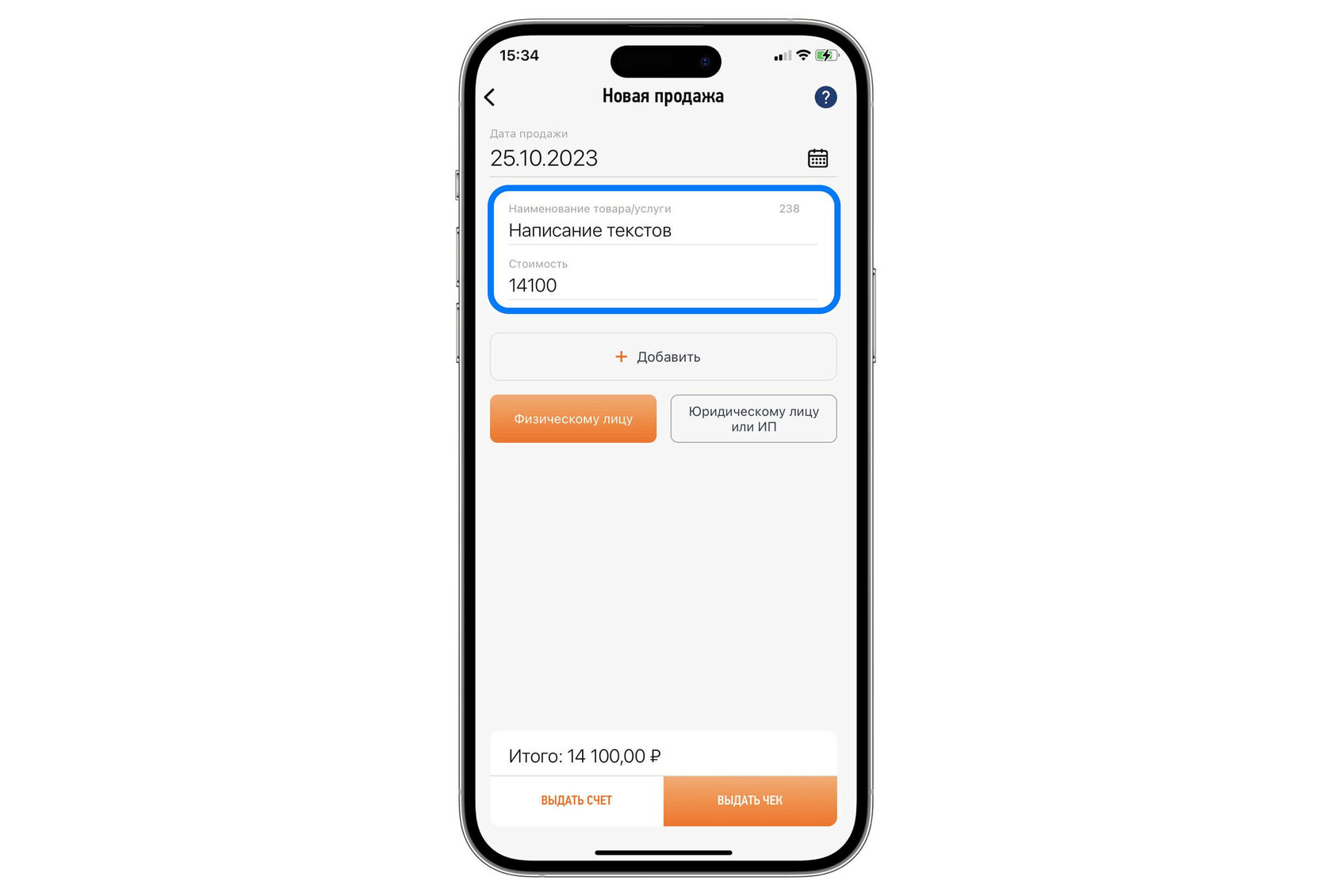 2. Заполнить поля с наименованием услуги/товара и стоимостью