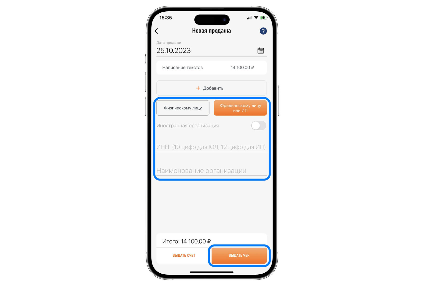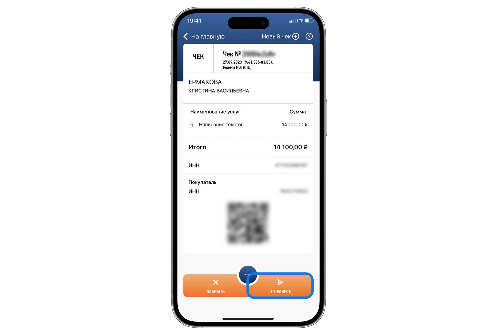 4. Нажать «Выдать чек» и отправить его заказчику!