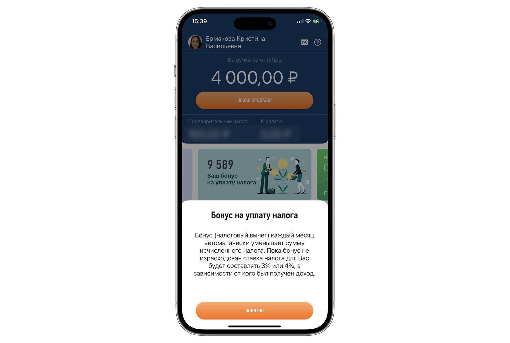 - налоговая база определяется лишь чеками, которые самозанятый выписывает в приложении «Мой налог» (вам на счет могут приходить зачисления от родных и друзей, налог будет отсчитываться лишь от суммы, на которую вы выписали чек);