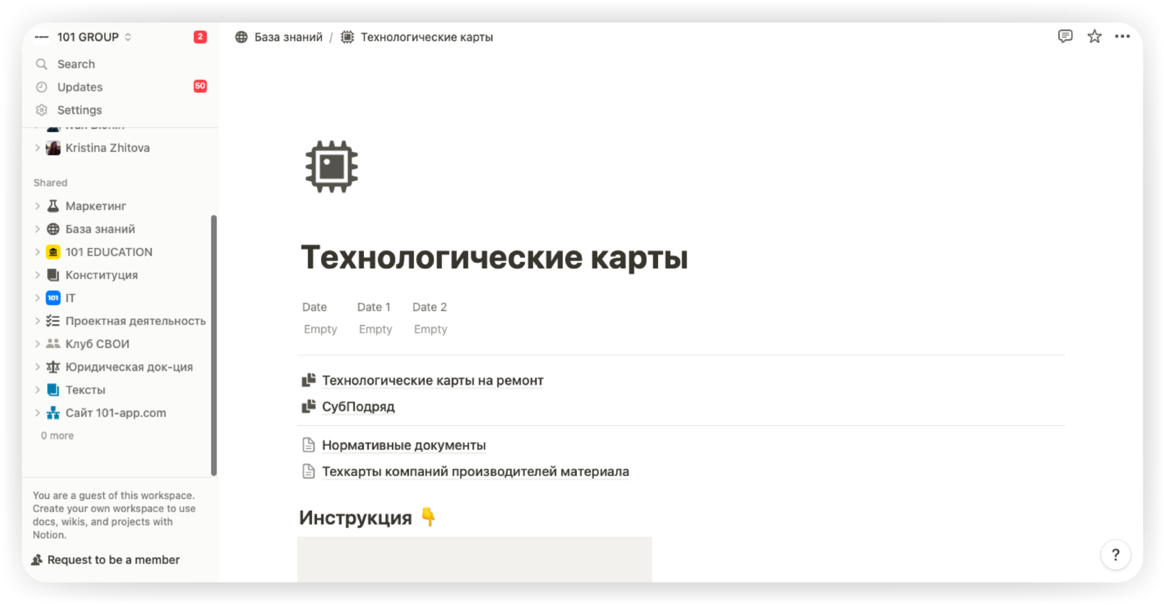 Здесь вы сразу будете видеть папки и отдельно документы. Мы готовы приоткрыть завесу тайны и показать вам, как организованы технологические карты в 101 GROUP.