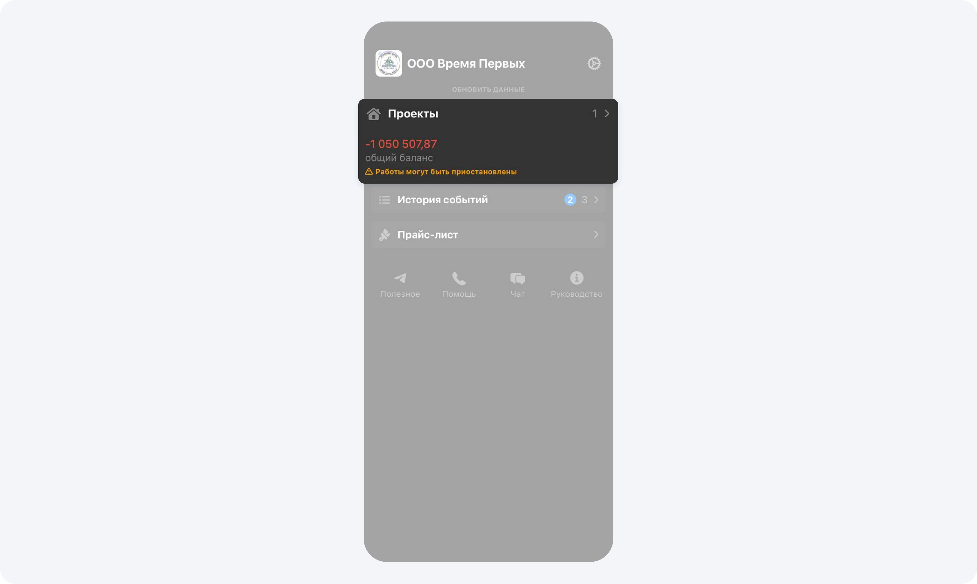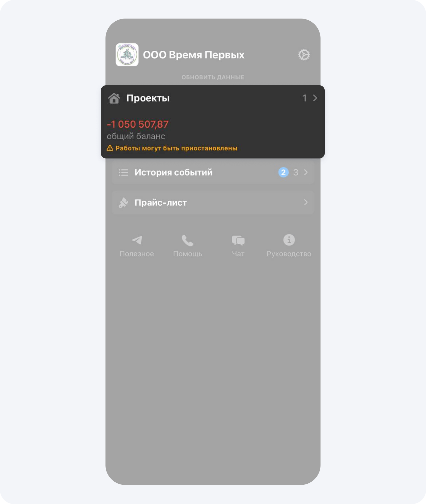 Когда аванс израсходован, то приложение само напоминает заказчику о том, что работы на объекте могут быть приостановлены, если не внести деньги. Заказчики очень серьезно относятся к тому, что если они не внесут деньги, то работы встанут.