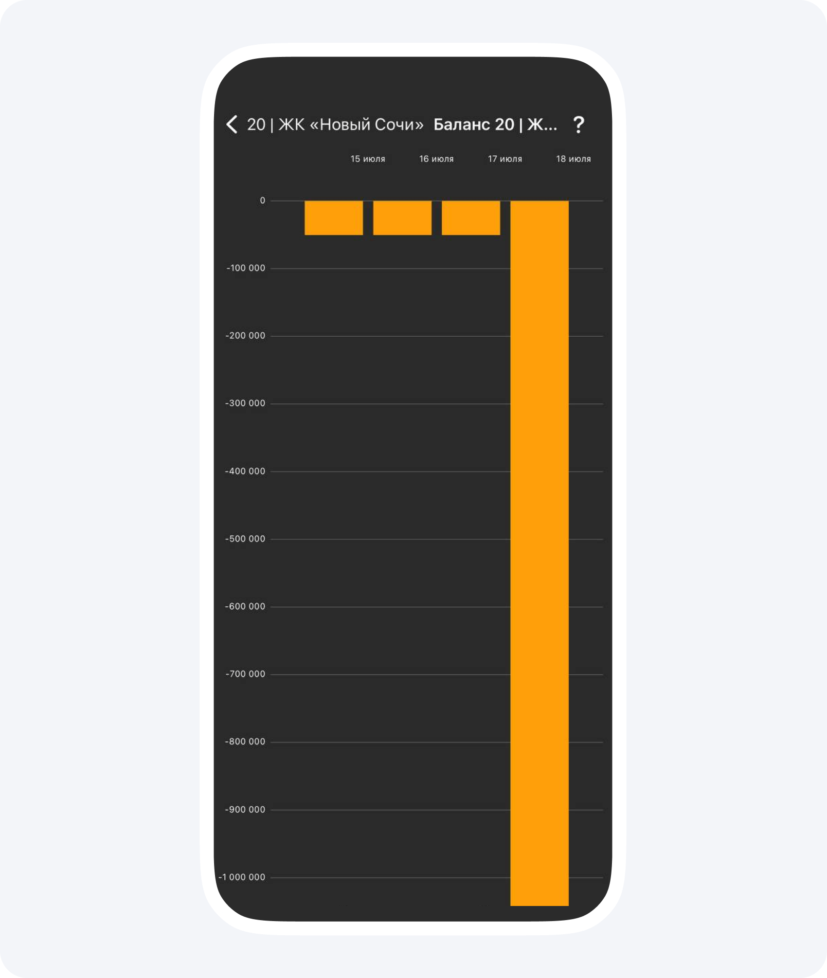 Чтобы так не происходило, в приложении 101 есть график баланса, который показывает заказчику, что он в дебиторке и строительство идет на его деньги. Как только график становится красным, это значит, что работы скоро остановятся и надо пополнить баланс. А если денег не поступило, то работы встали и срок сдачи объекта просто отодвинулся.