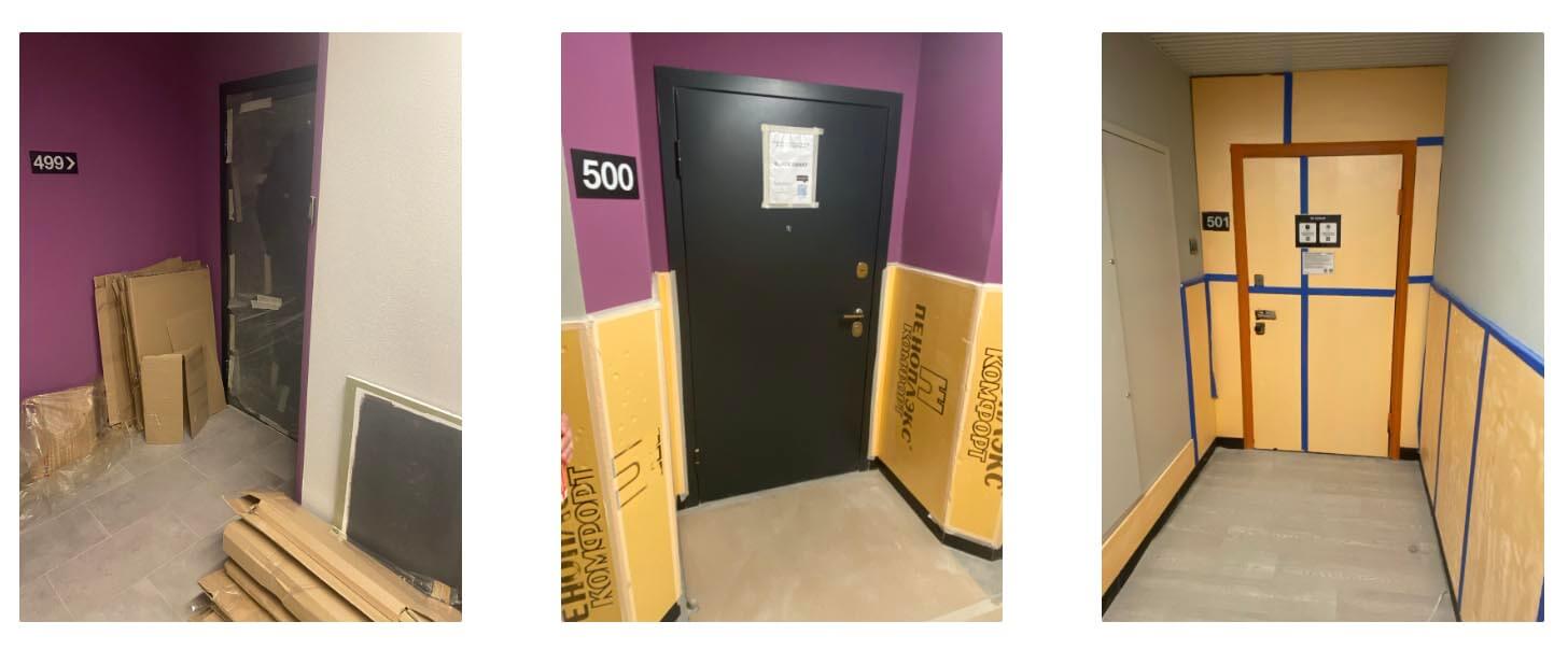 Мы стремимся бережливо относиться к имуществу заказчика, чтобы потом не тратить деньги на реставрационные работы. Тщательно защищаем МОПы, двери и окна (используем «жидкую резину»).