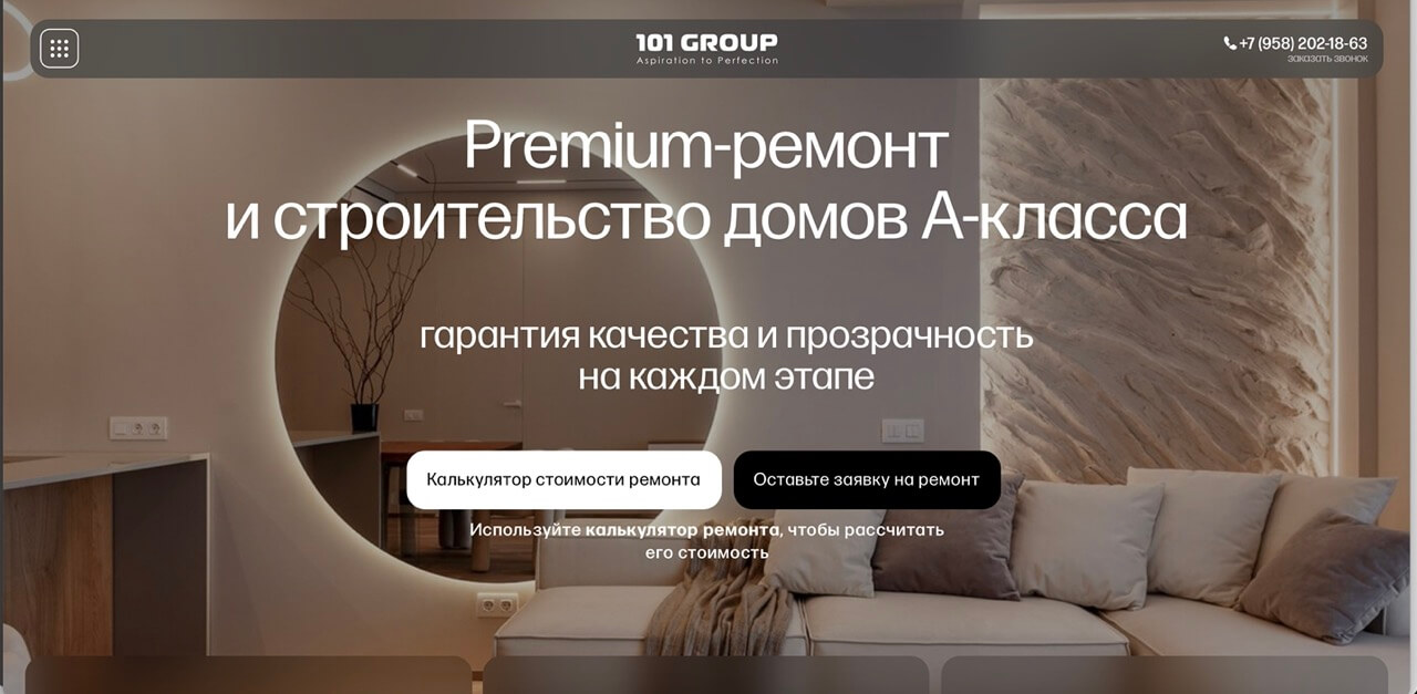 Сайт может стать отличным полем для «первого касания» с заказчиком. Там он может узнать о ваших услугах, кейсах, найти контакты или вообще калькулятор для расчета стоимости ремонта.