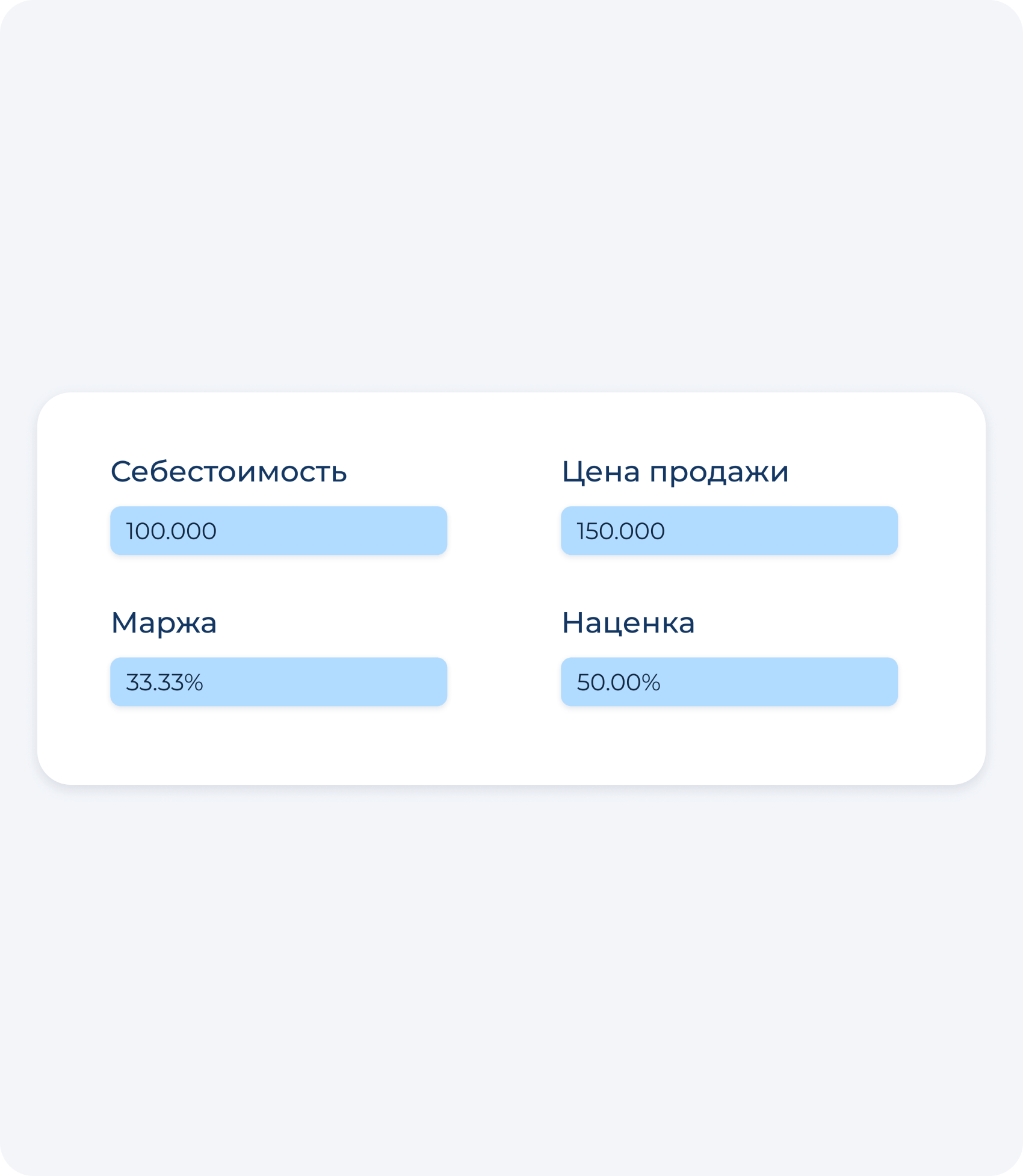Приложение 101 позволяет автоматически рассчитывать маржу во время ввода новой позиции в прайс-лист или отчет. Почему это важно? Возможно, вы по привычке вносите те или иные цены, по которым работаете уже много, путая наценку и маржу. Интерфейс приложения вернет вас в реальность, позволяя рассчитать реальные цифры своего заработка.