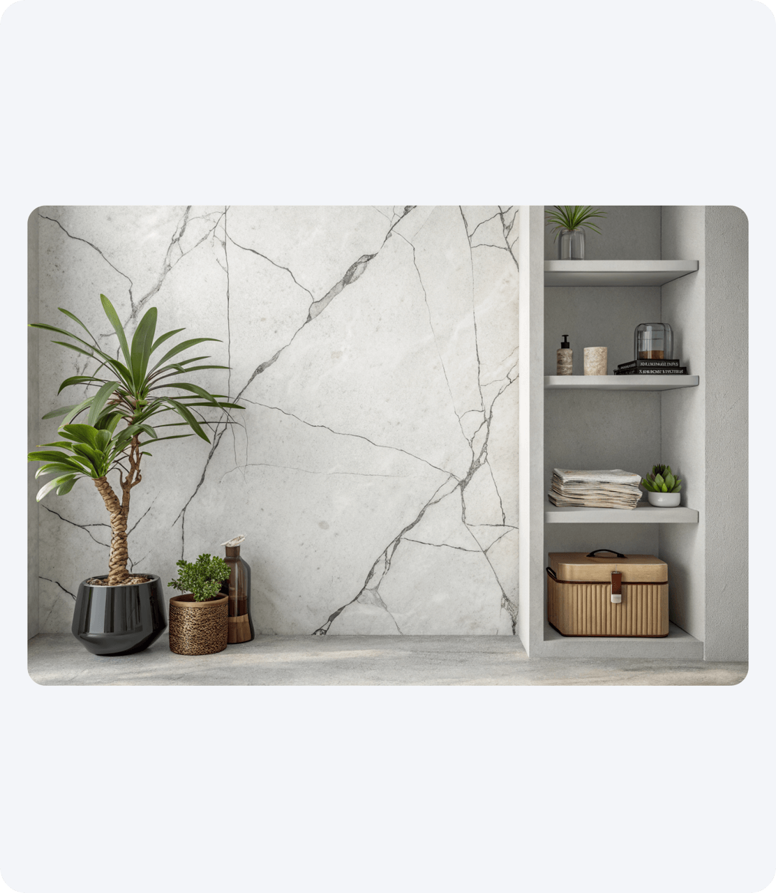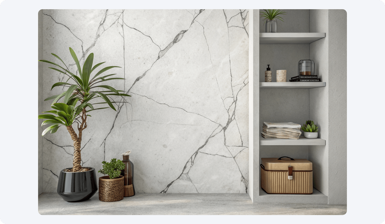 Современный керамогранит под мрамор порой настолько детализирован, что обывателю бывает сложно визуально отличить от живого материала.