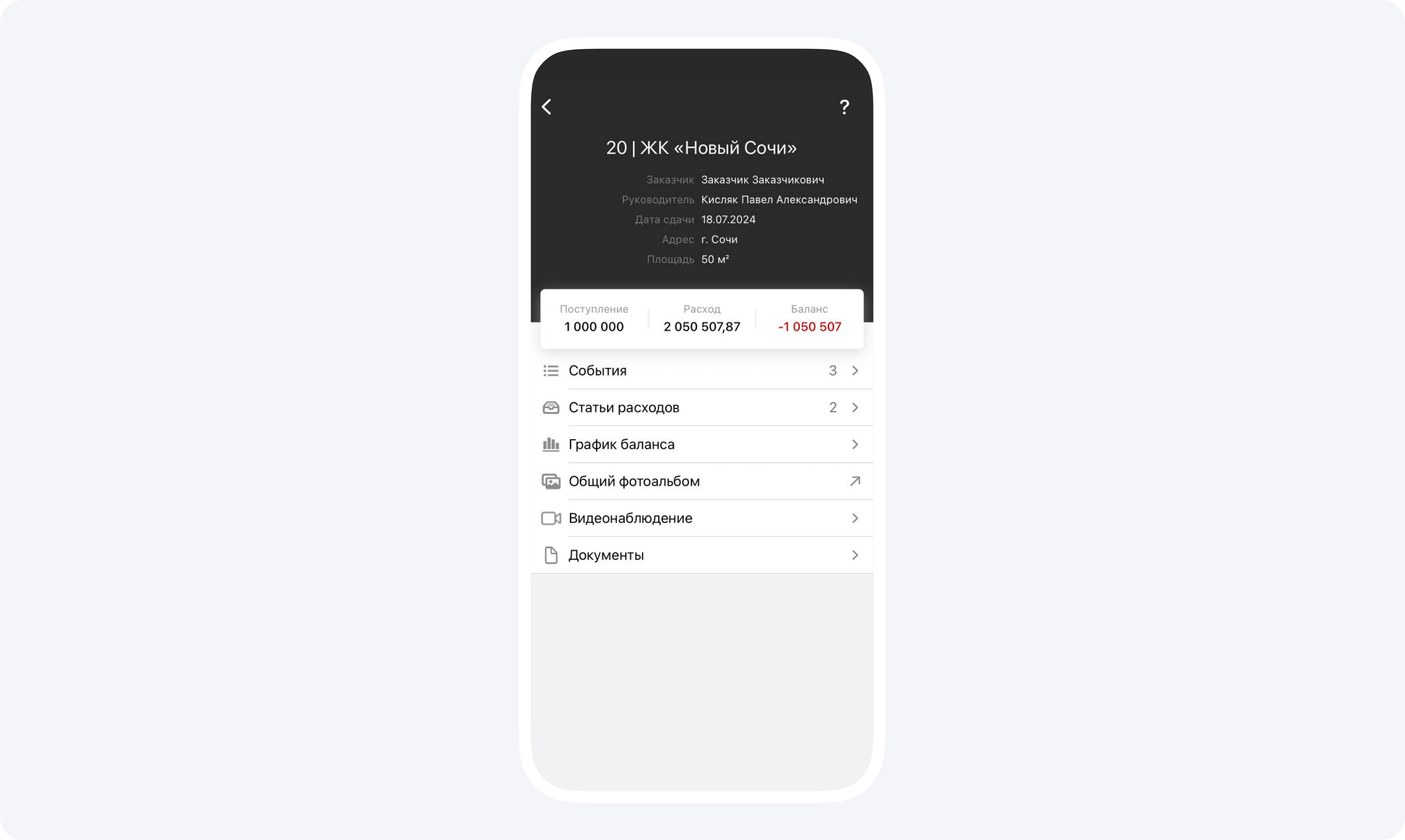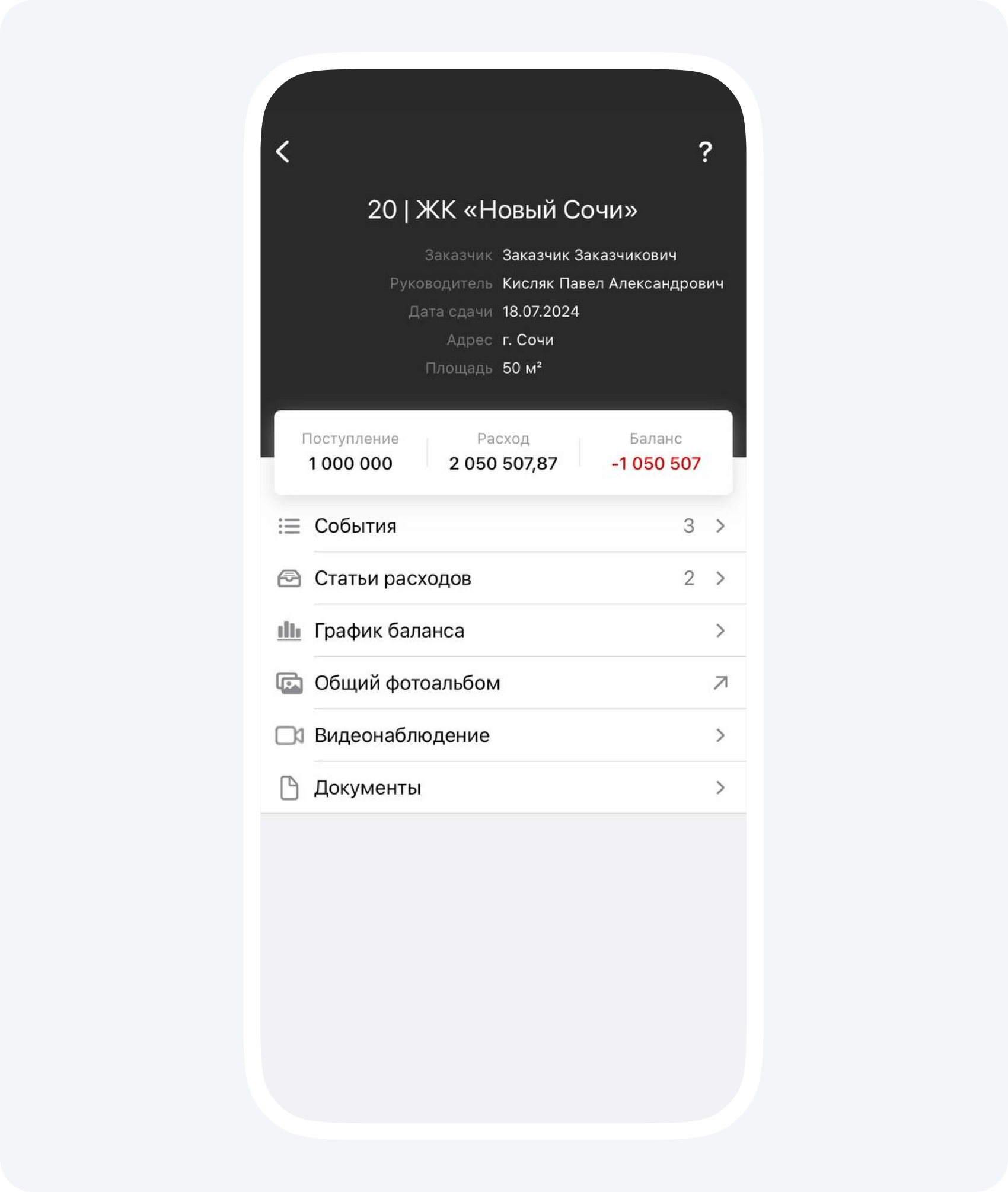 Чтобы избавить заказчика от постоянных сверок с чеком и беспокойства за остаток денег на счету у компании, мы создали приложение 101, которое позволяет подрядчикам уберечь заказчиков от переживаний за свои деньги.