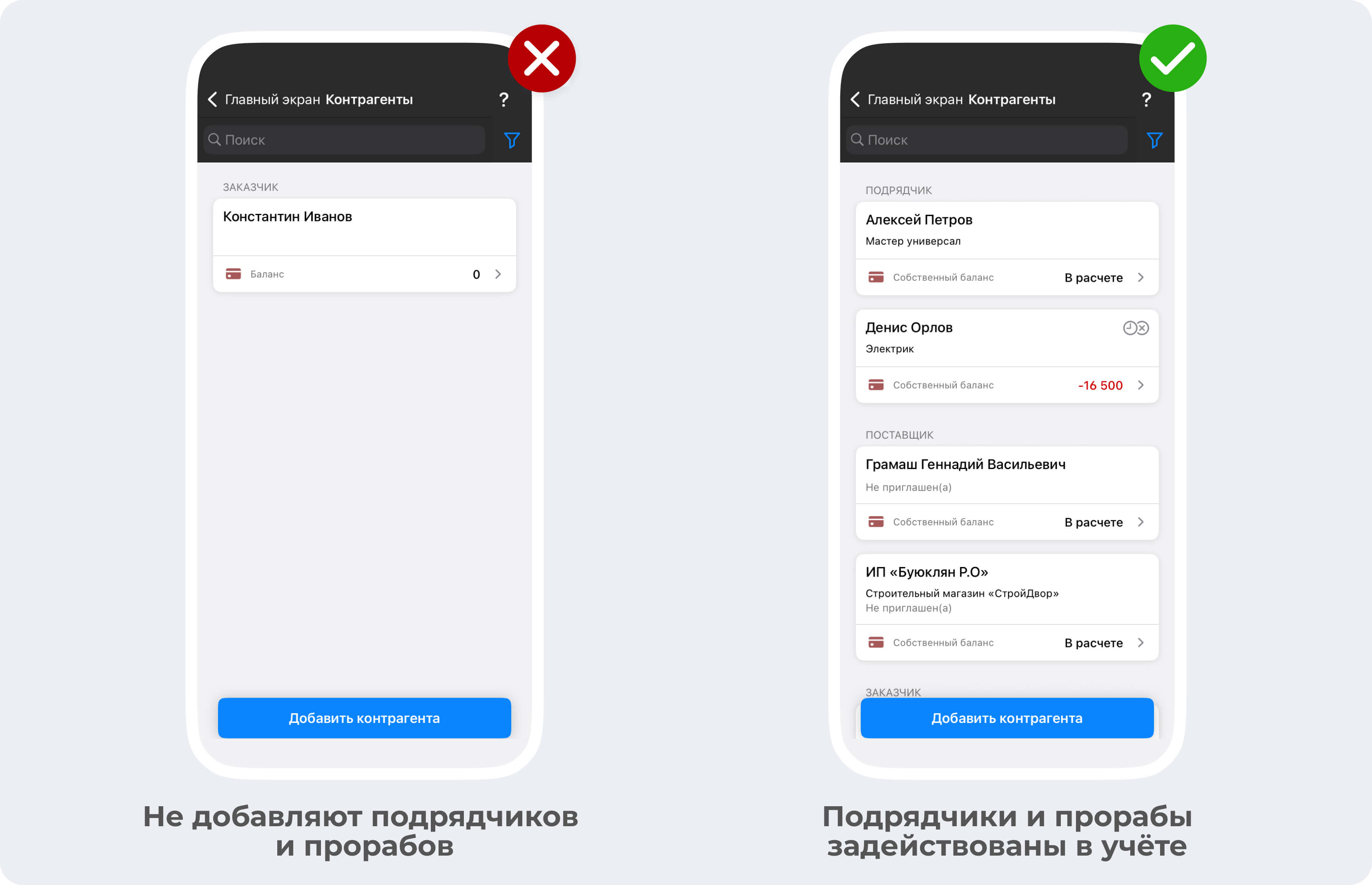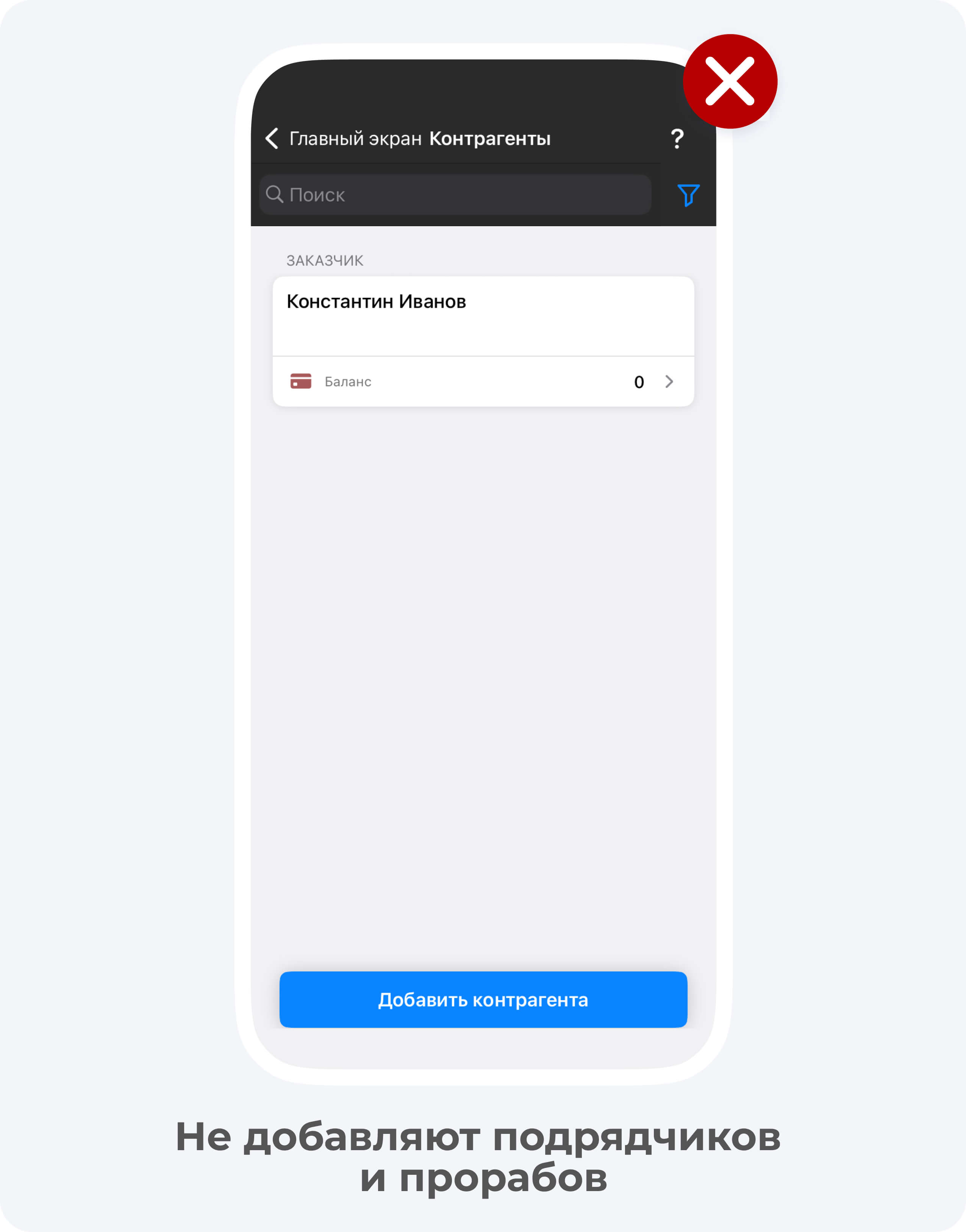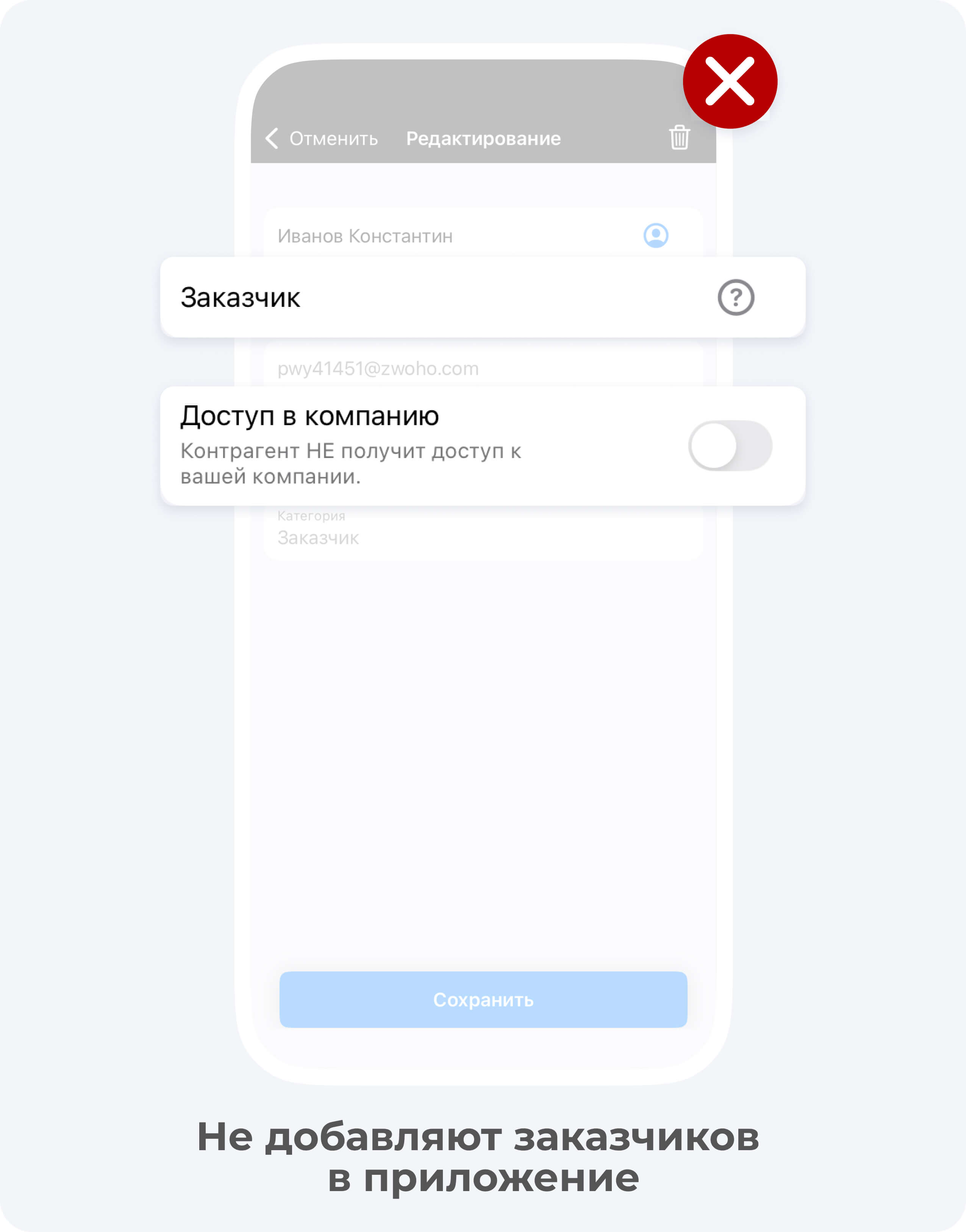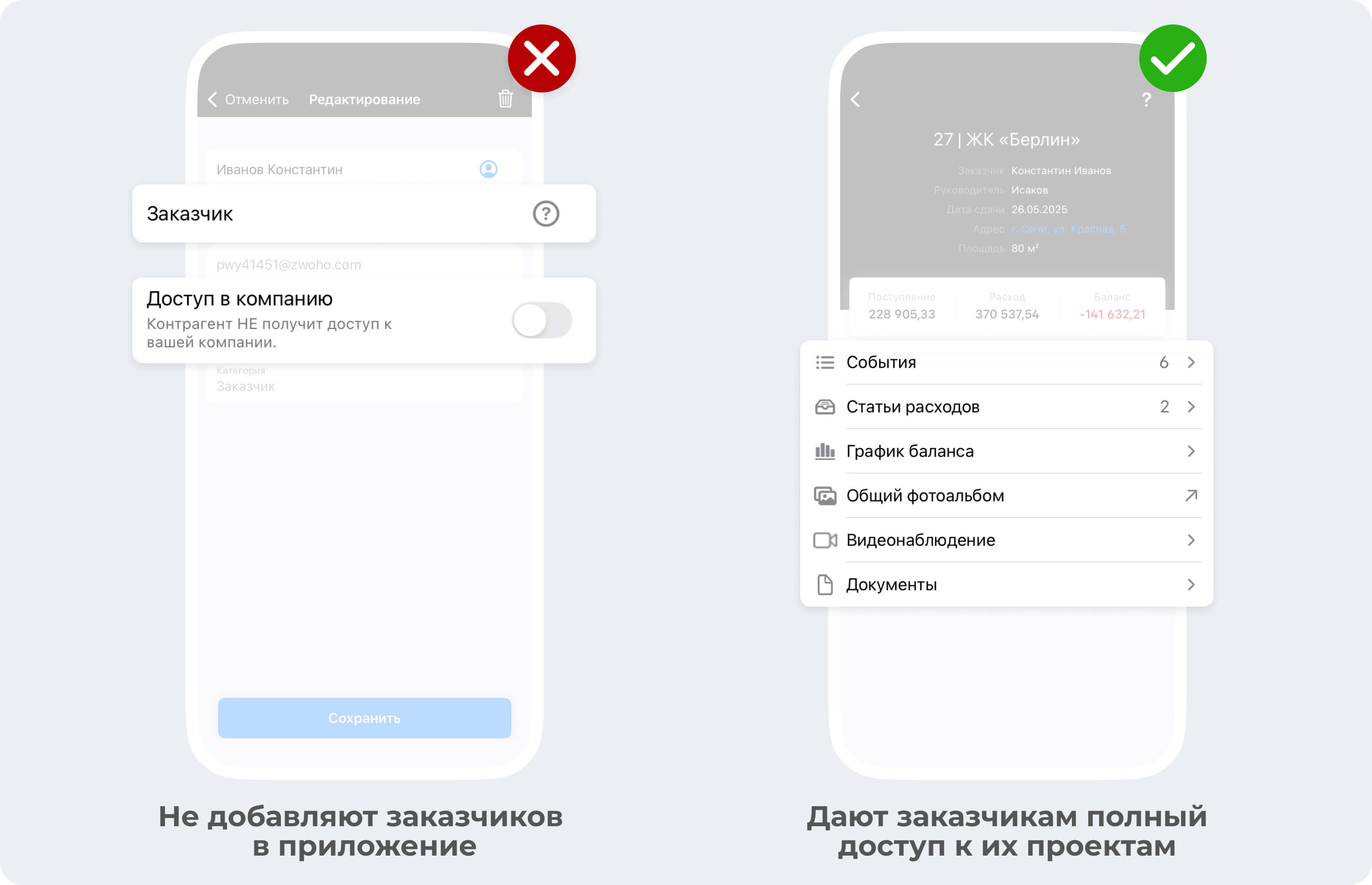 Некоторые подрядчики почему-то предпочитают вести учет в приложении без добавления в него заказчика. Им кажется, что клиентам это не нужно, плюс они не хотят ничего объяснять и просто боятся, что заказчик получит доступ к «не той» информации.