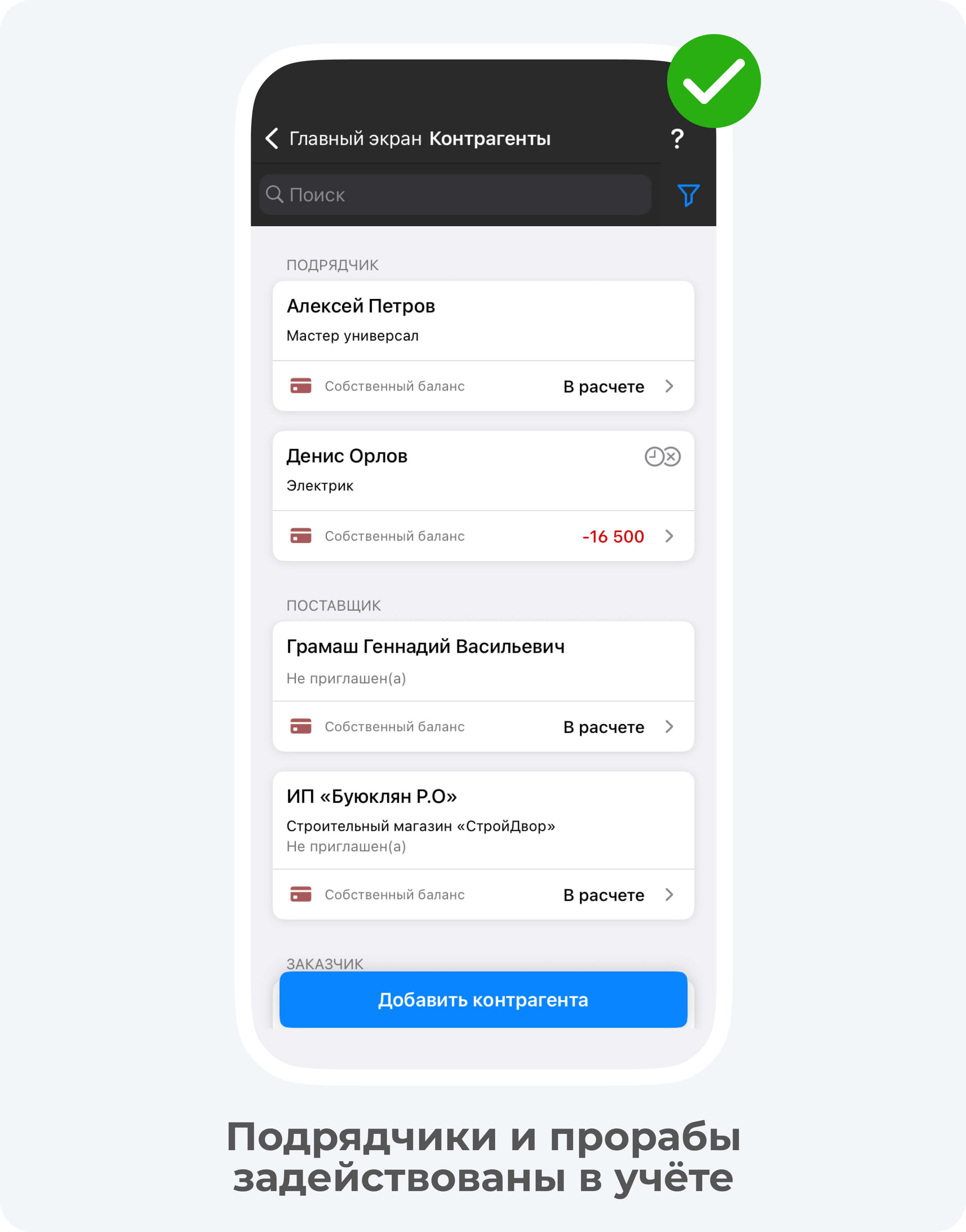 Это система win-win: подрядчики получают честную оплату и легко отчитываются о выполнении работ, а руководитель компании видит актуальные цифры по каждому проекту.