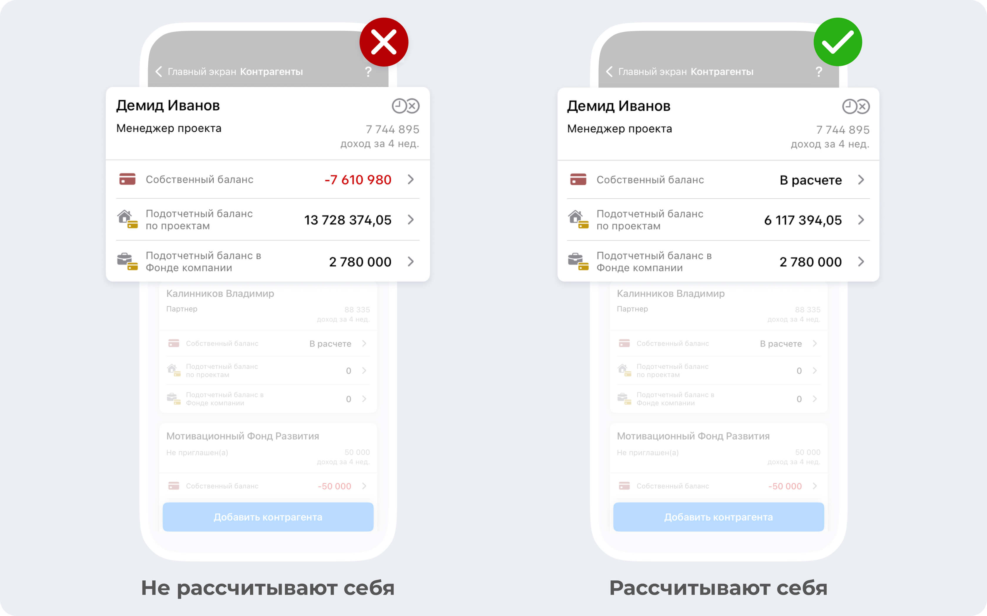 Неправильный расчет контрагентов