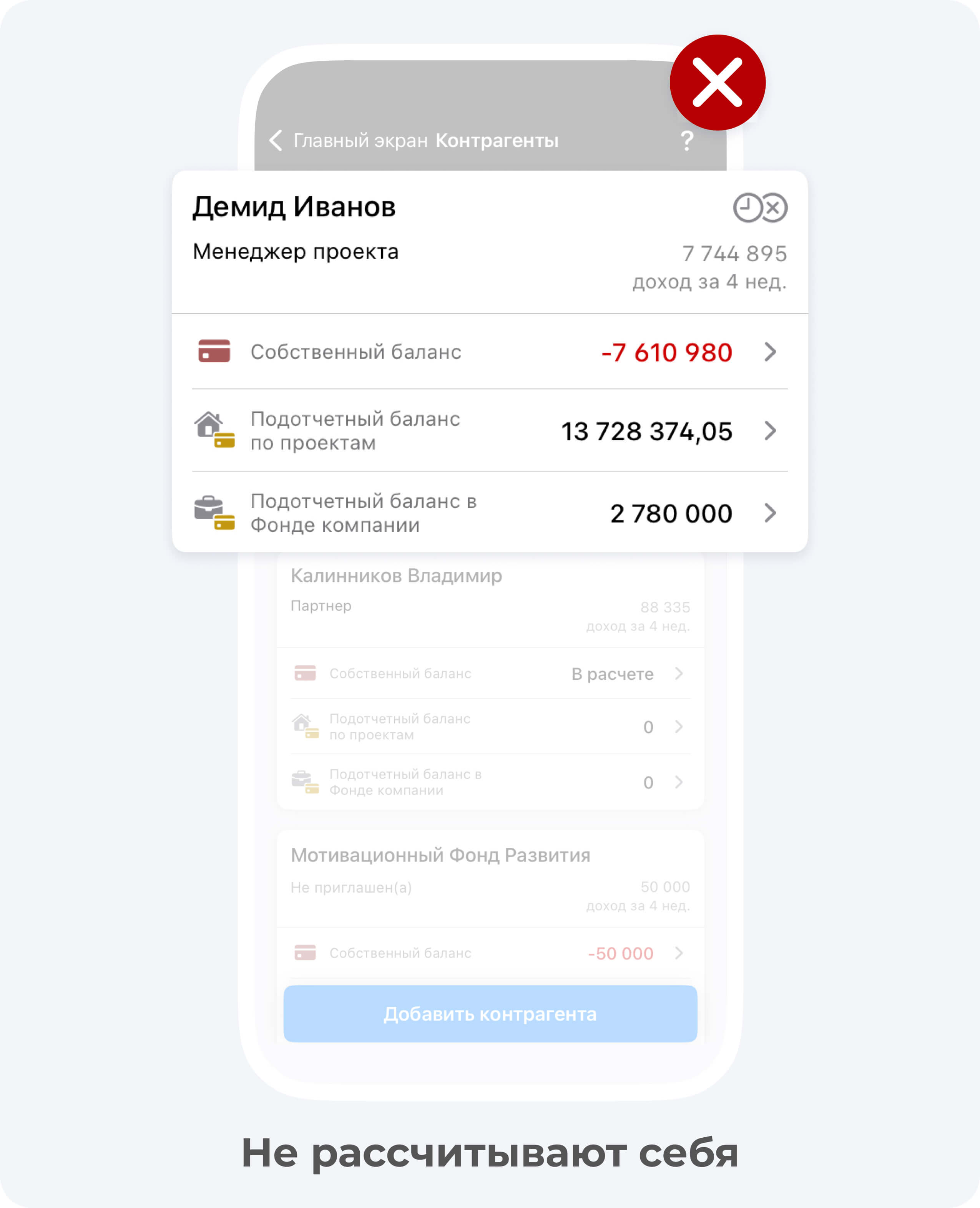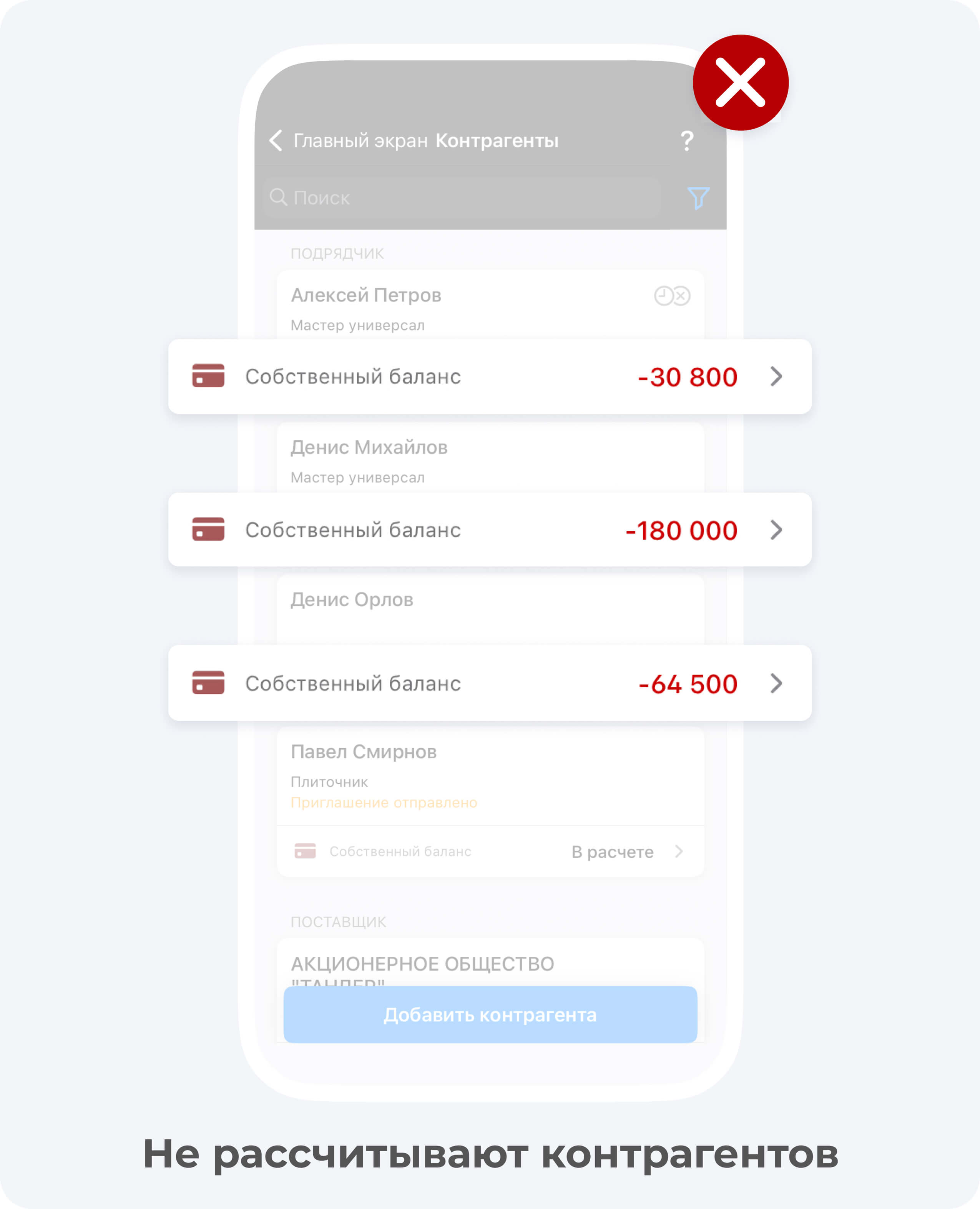 - Неверный расчет контрагентов