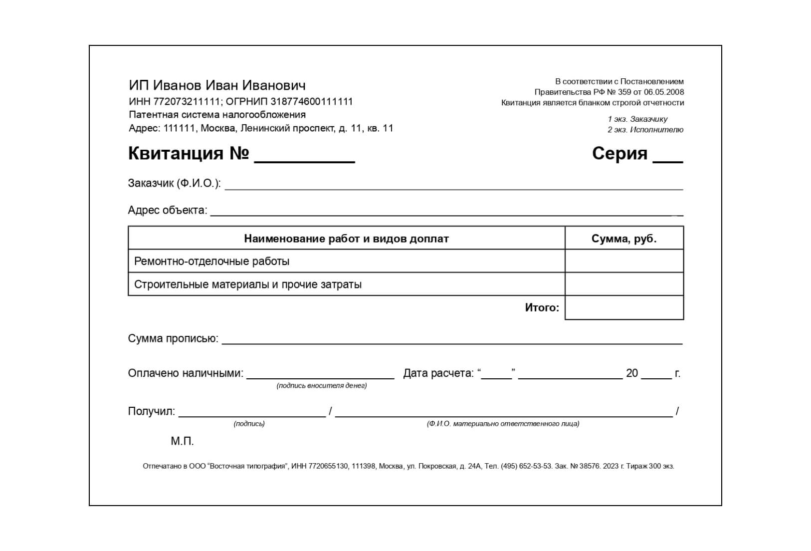 ИП на патенте «Реконструкция или ремонт существующих жилых и нежилых зданий, спортивных сооружений» освобождены от применения кассы, но обязаны выдавать заказчику документ, который подтверждает факт расчета.