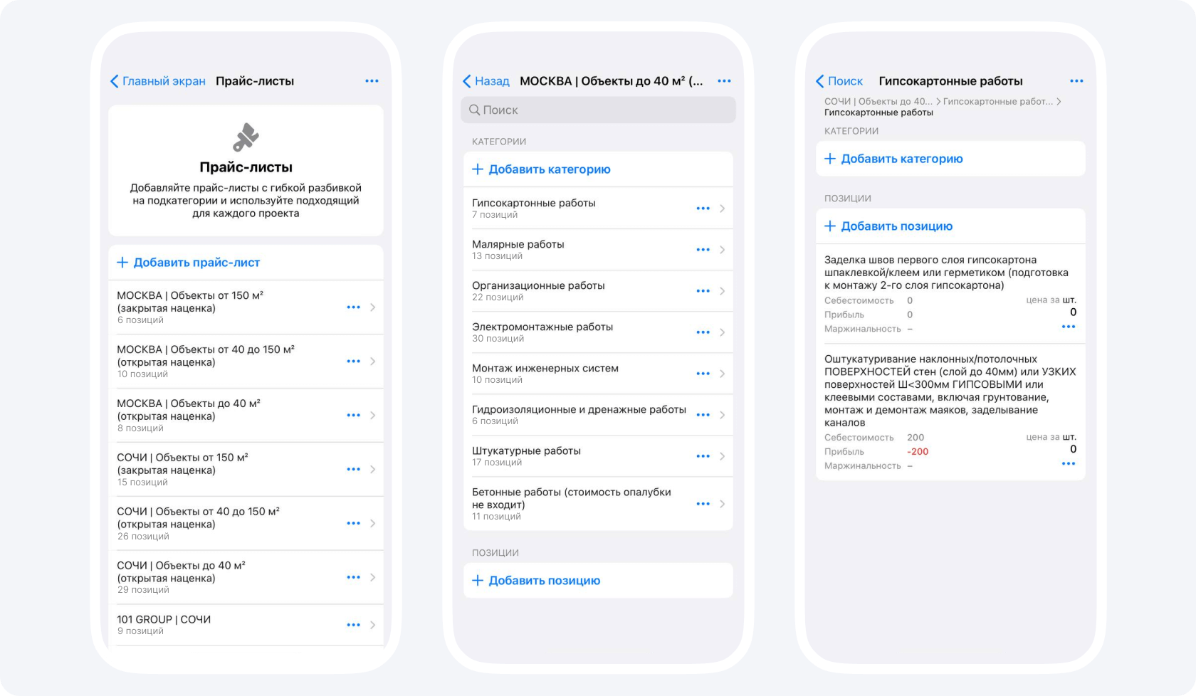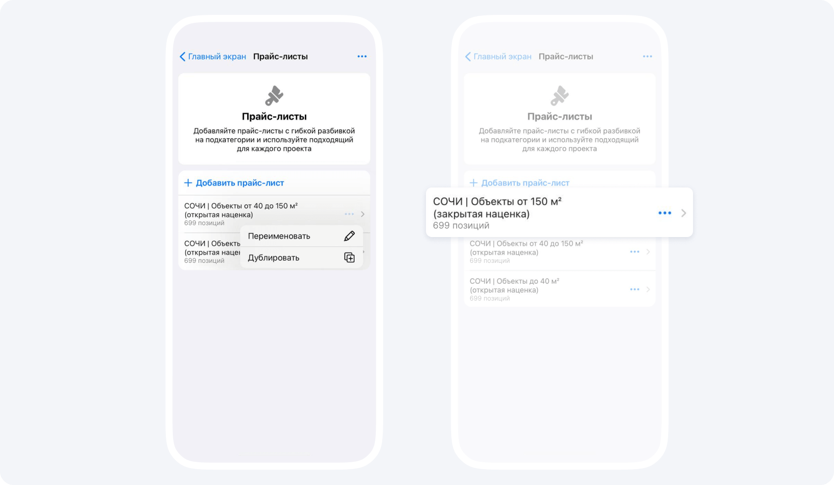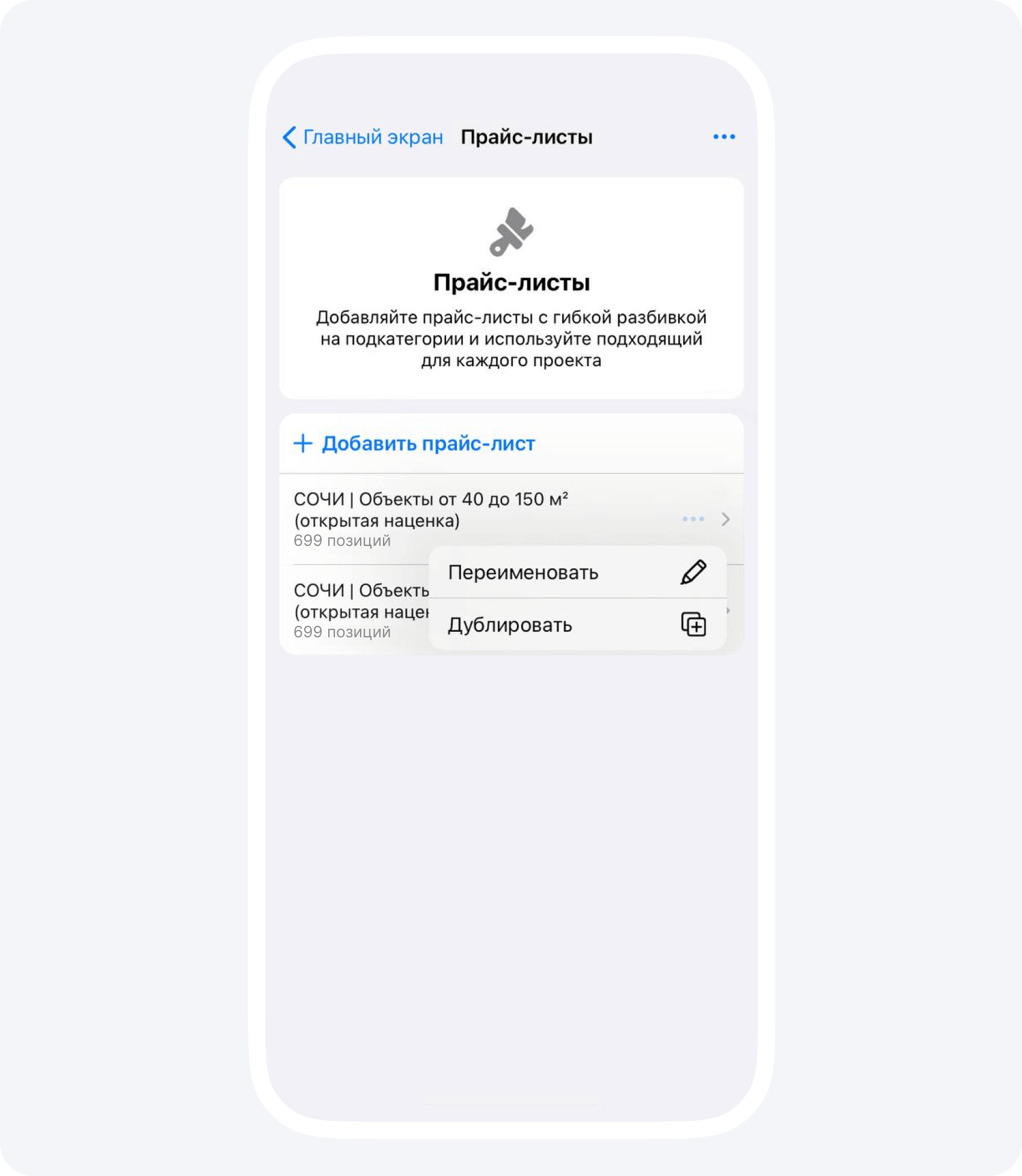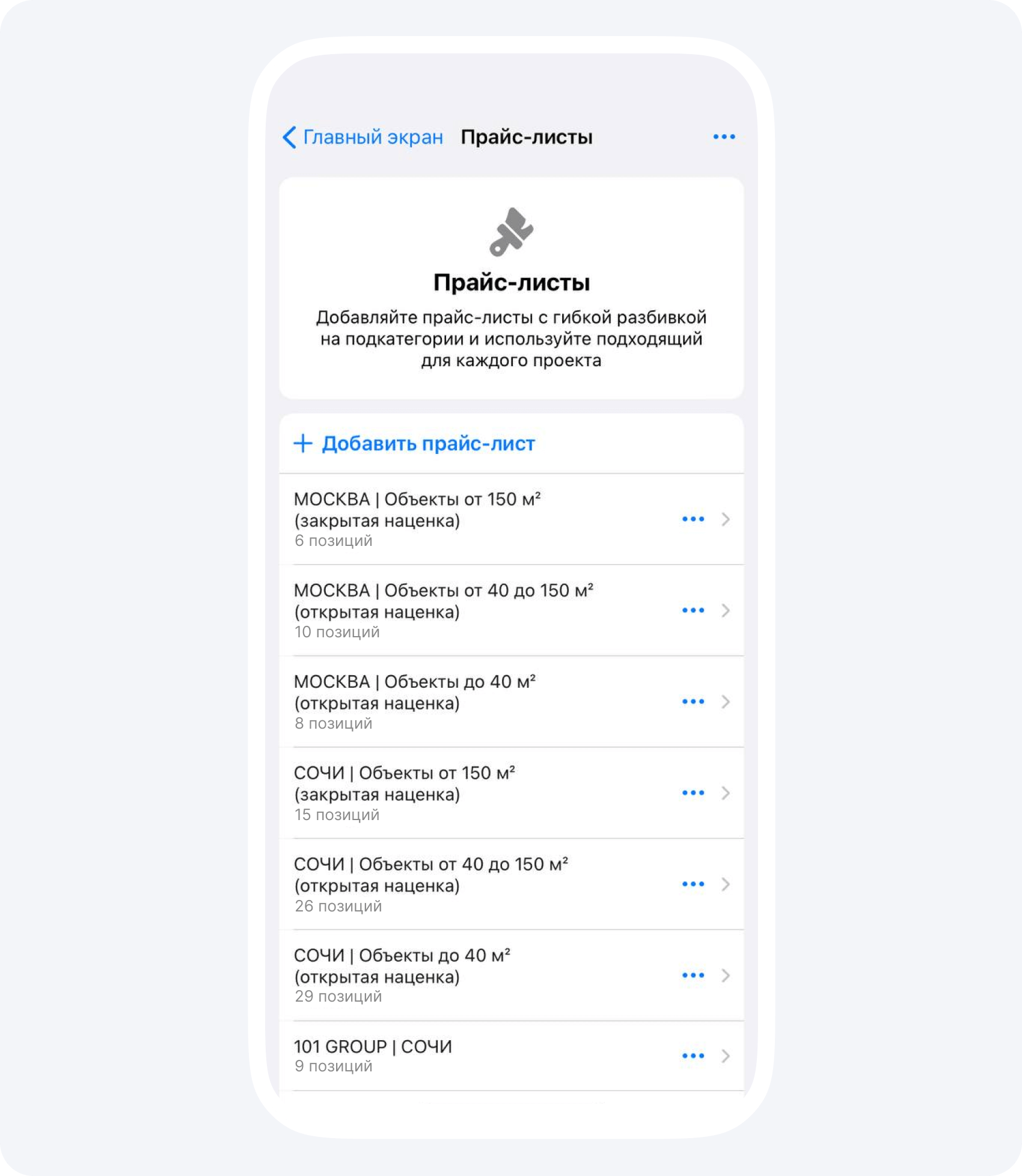 Теперь пользователи Приложения 101 могут создавать любое количество прайс-листов, если это требуется для ведения разных по смыслу проектов. Это одновременно удобное и опасное обновление, поэтому важно правильно им воспользоваться!