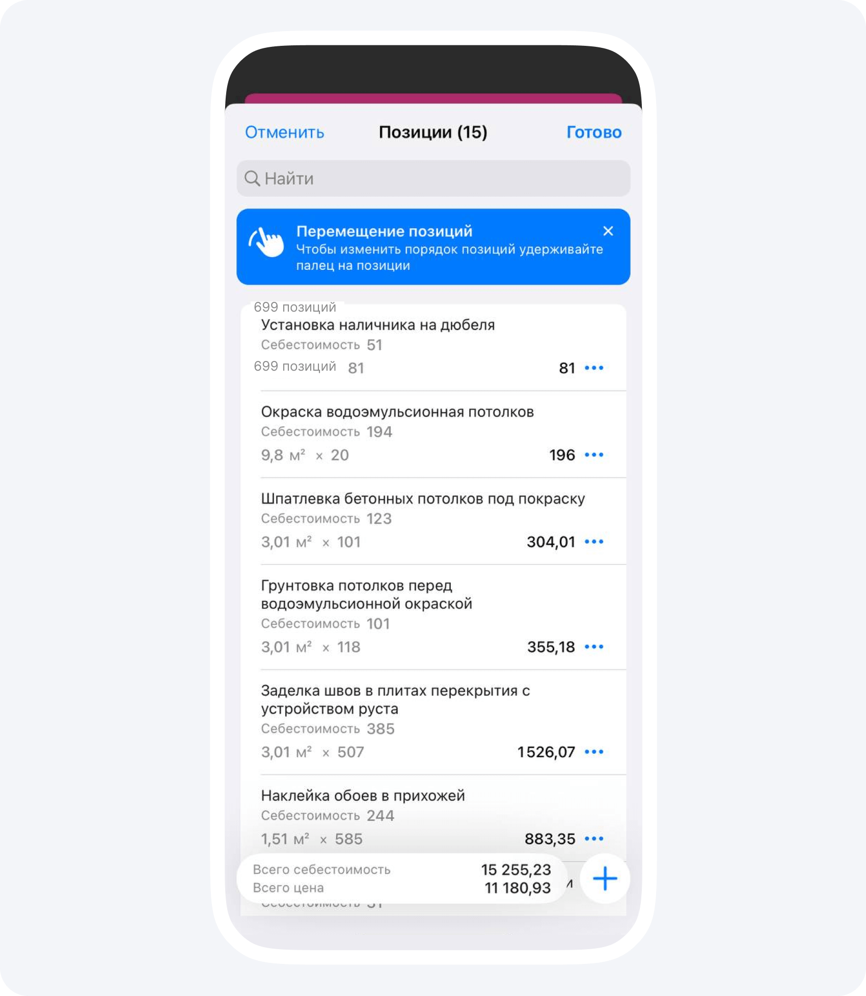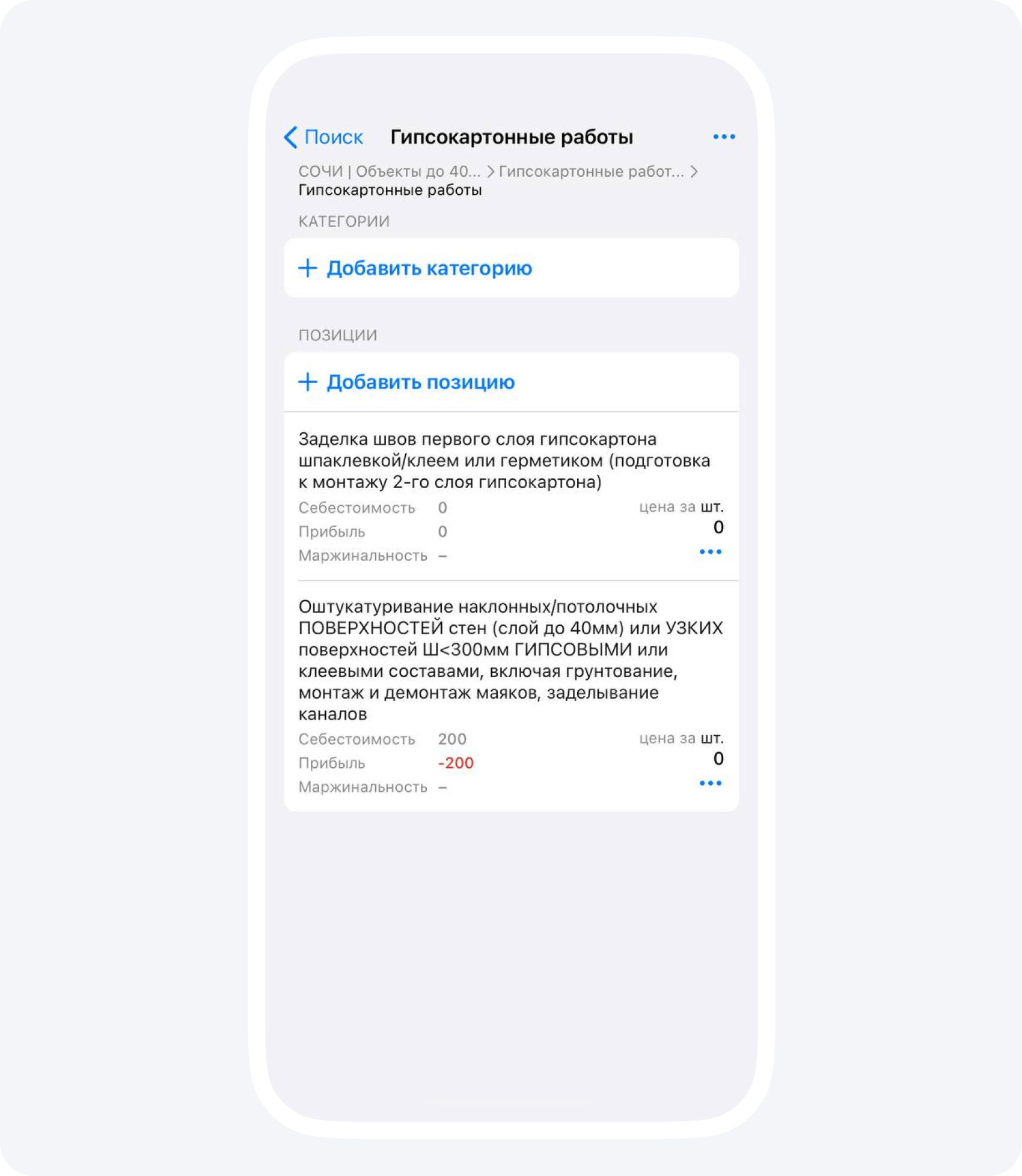Это неудобно и сложно, поэтому в будущих обновлениях заказчик будет подписывать прайс-лист и после этого любые изменения будут маркироваться. Следите за обновлениями приложения в сообществе прогрессивных строителей, чтобы первыми внедрить в работу новые функции.