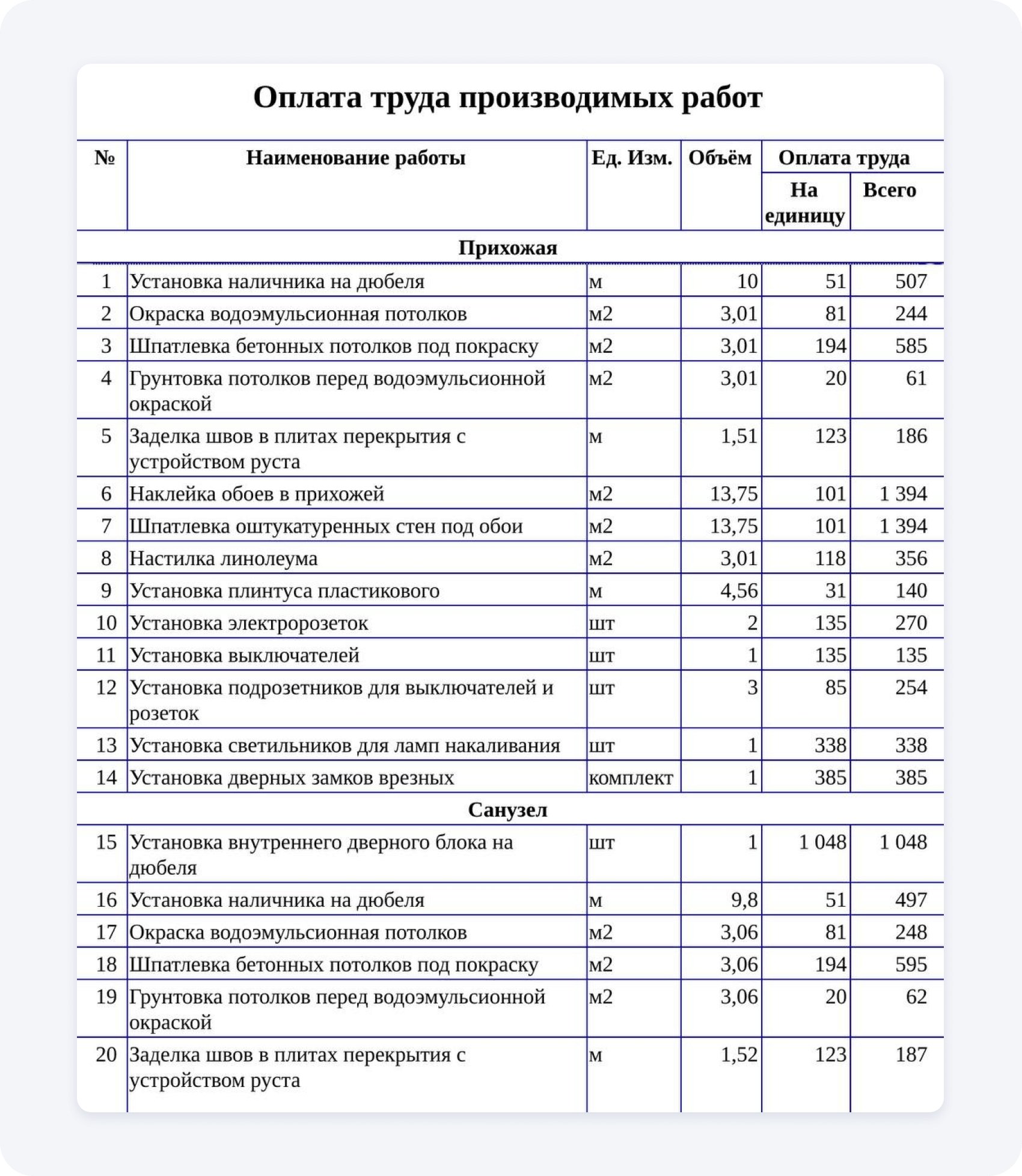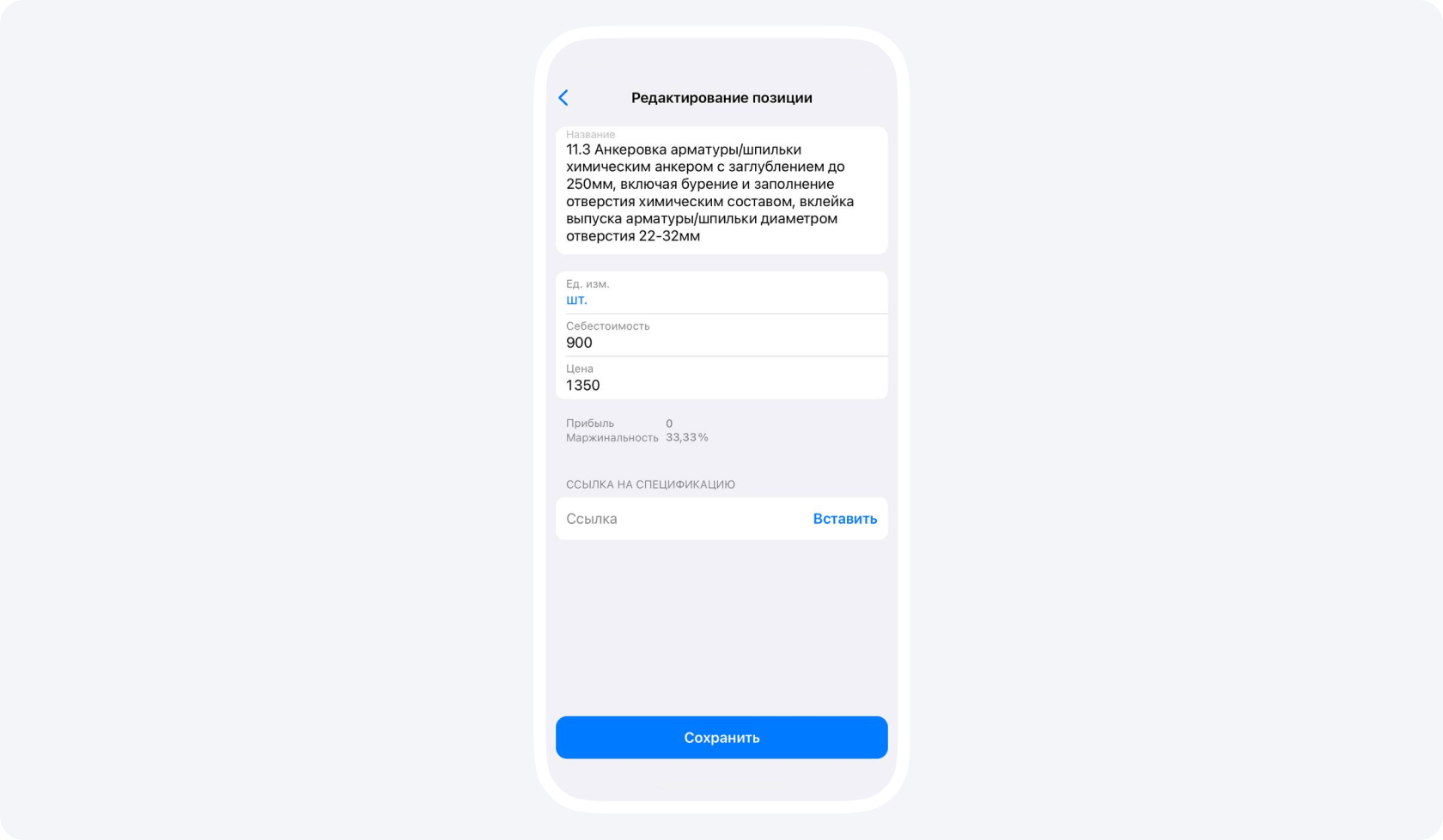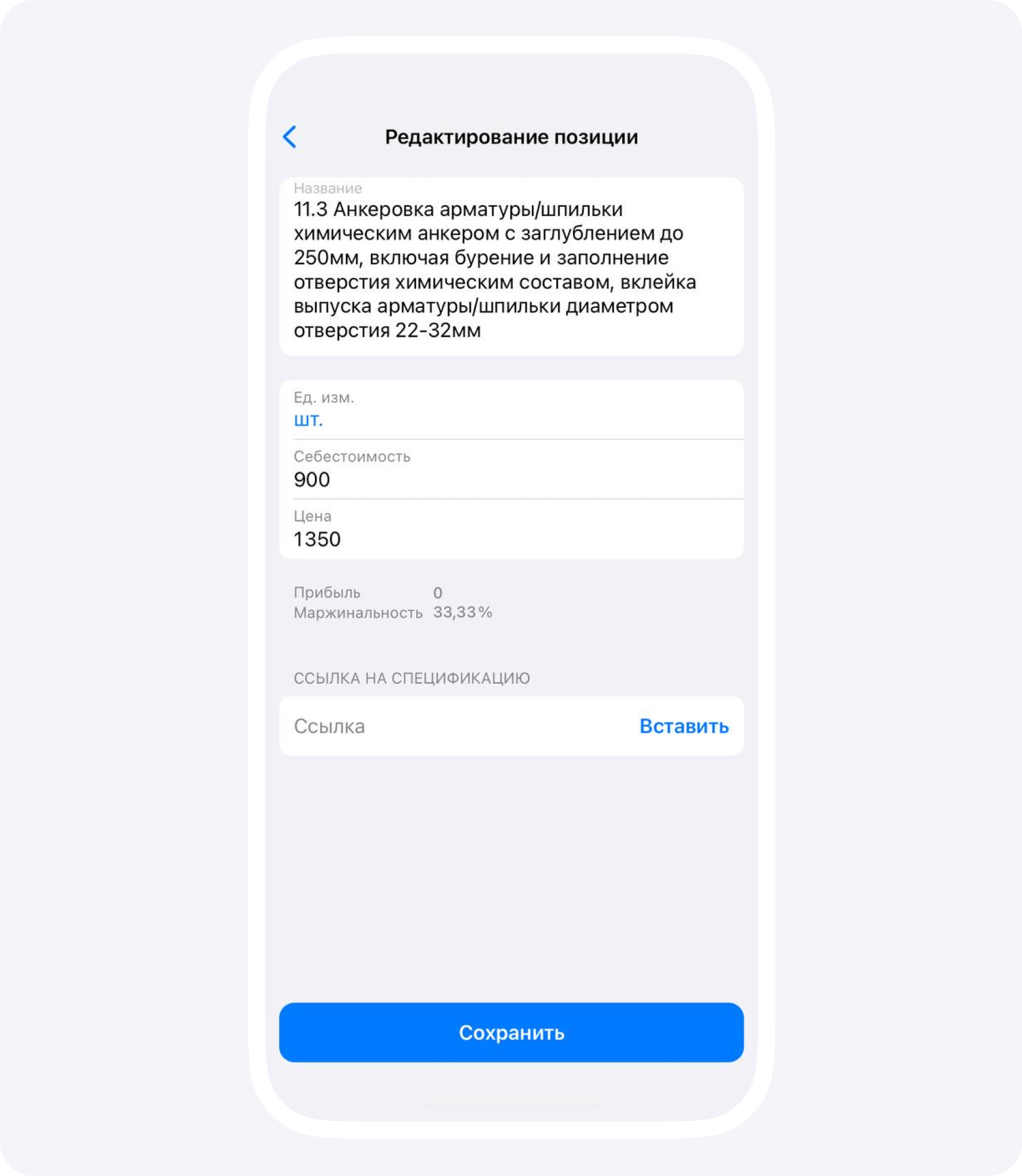 Если в вашей компании есть подробные правила по укладке плитке или другим работам в Notion/другом сервисе, то вы можете прикрепить ссылку на них в описании любых позиций. Например, в регламенте компании есть правило использовать только белые прочные мешки для мусора вместо тонких зелёных или использовать шурупы фирмы Mungo. Значит это нужно указать в позициях, связанных с работами по сбору и вывозу мусора или с гипсокартонными работами.