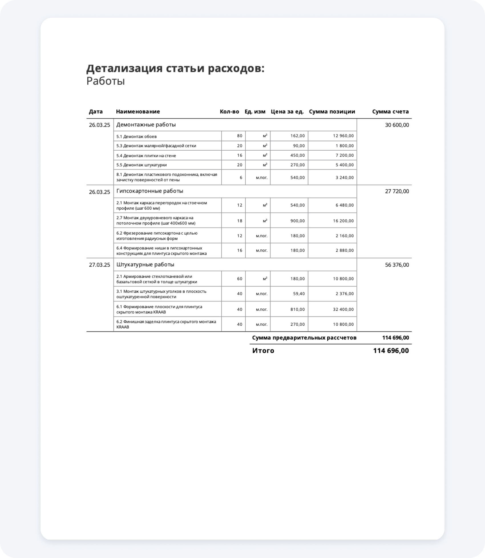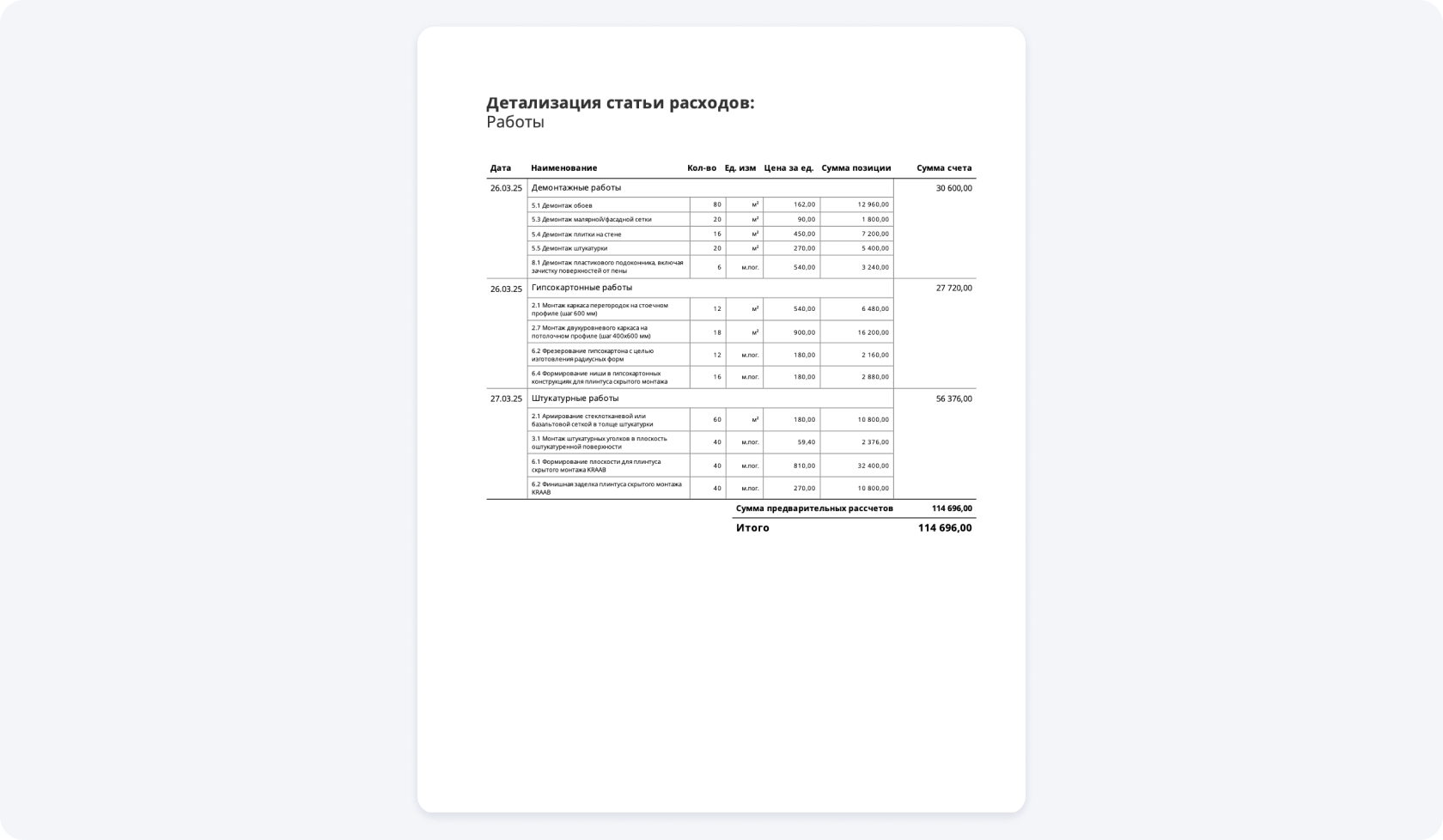 Как не выйти за пределы бюджета? Смотреть на реальные отчеты, отображающие траты на схожих объектах: в Приложении 101 это можно делать с помощью документа «Балансовый отчет». В нем отображены все траты по проекту, структурированные по категориям.