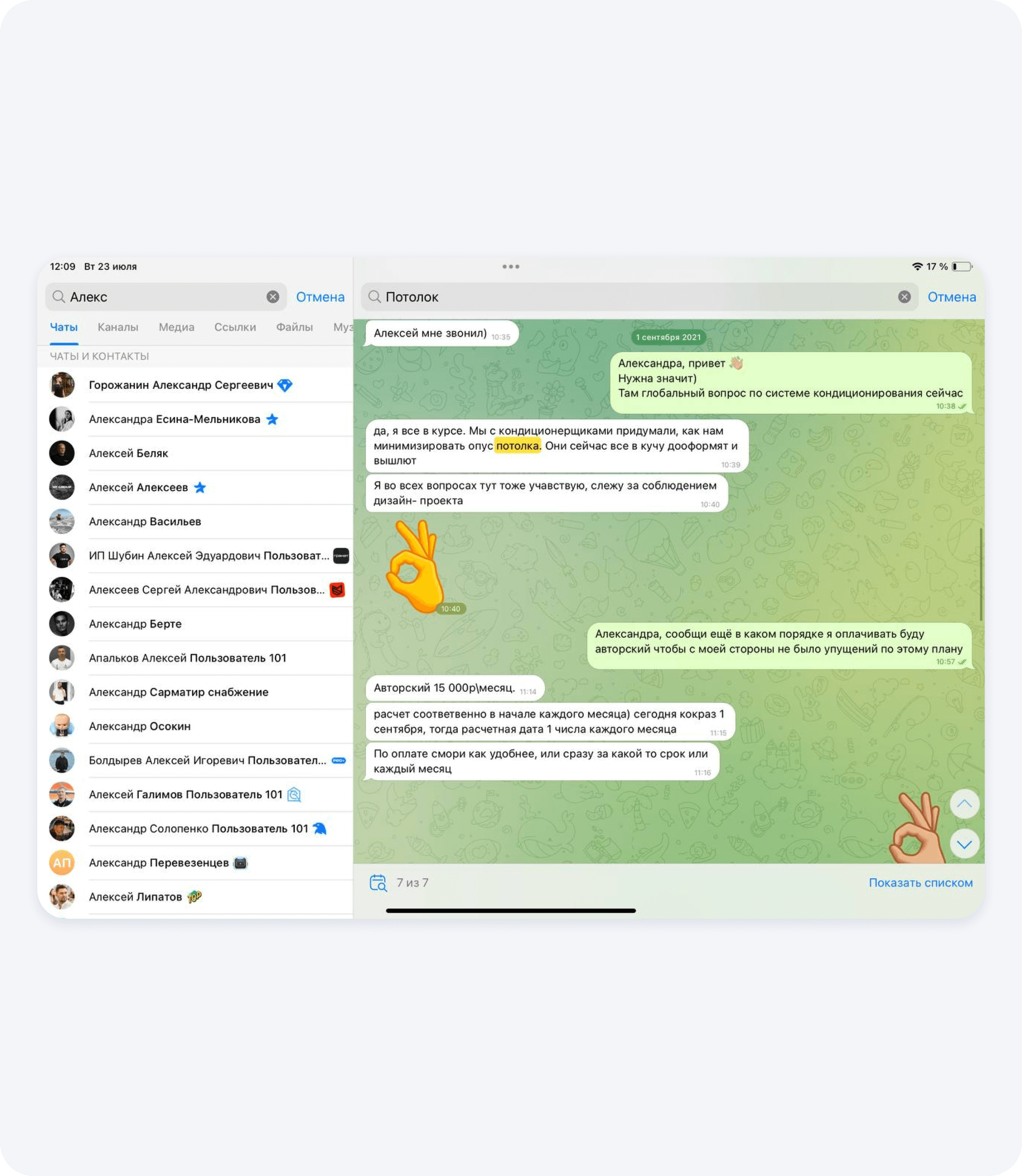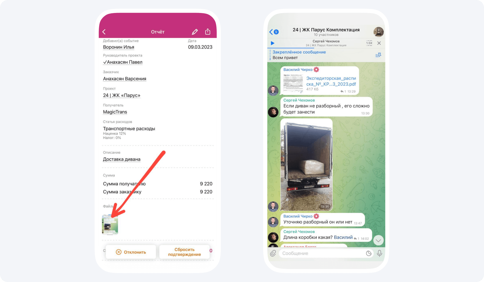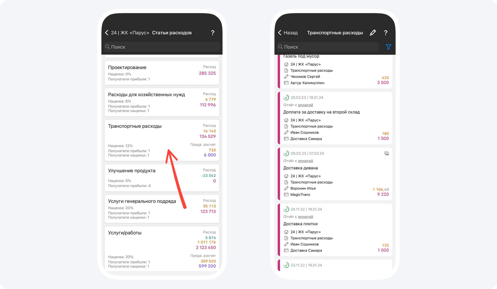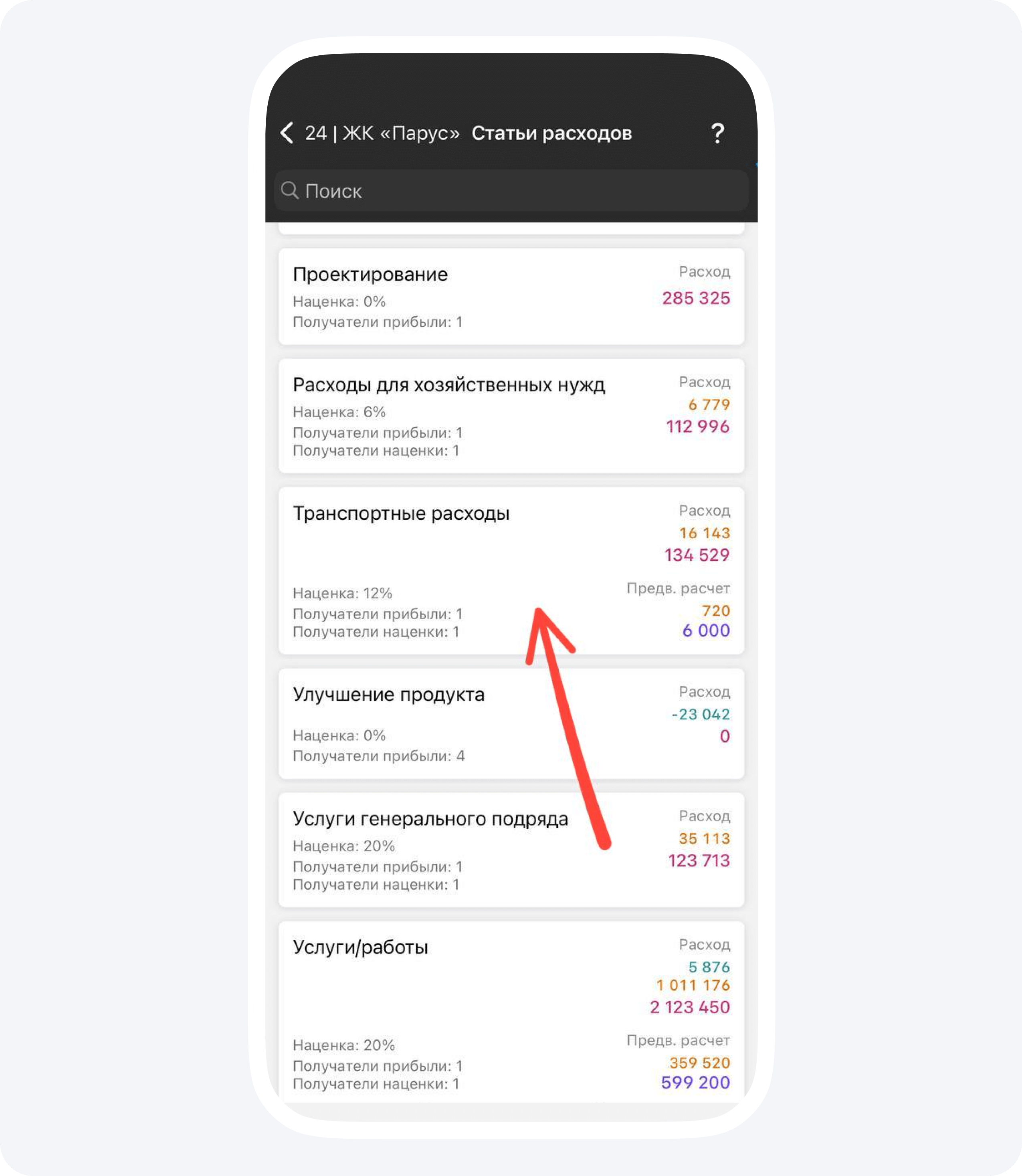Когда проводили поиск всего, что нужно укомплектовать, в компании еще не был внедрен 1С. Из-за этого возникла путаница: строители не понимали, где находится тот или иной товар. Чтобы разрешить ситуацию, я заходил в приложение и в статье «транспортные расходы» проводил поиск товаров.