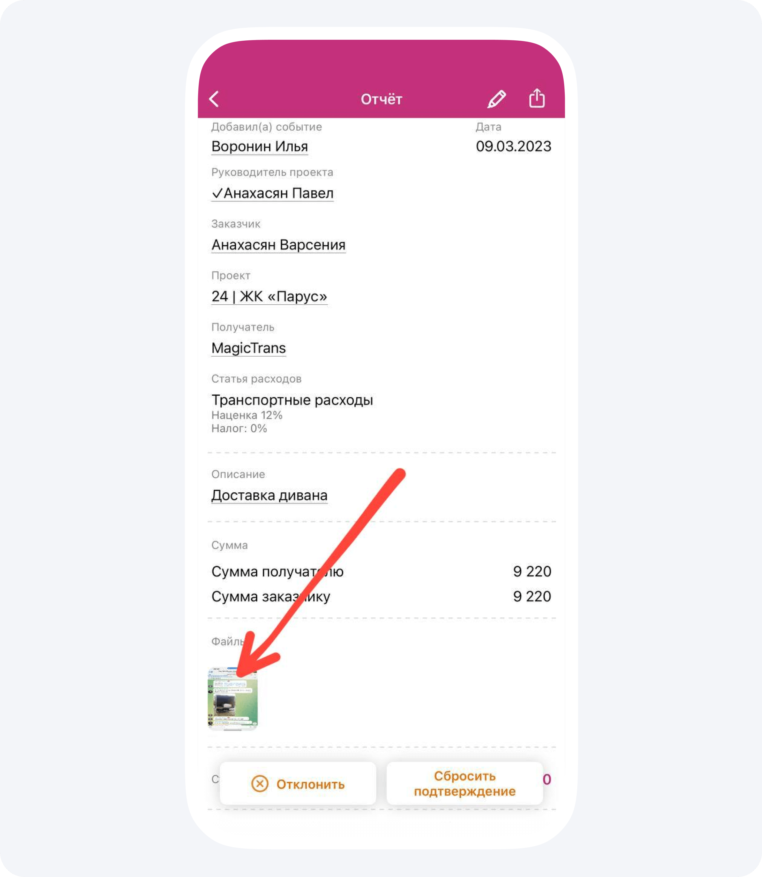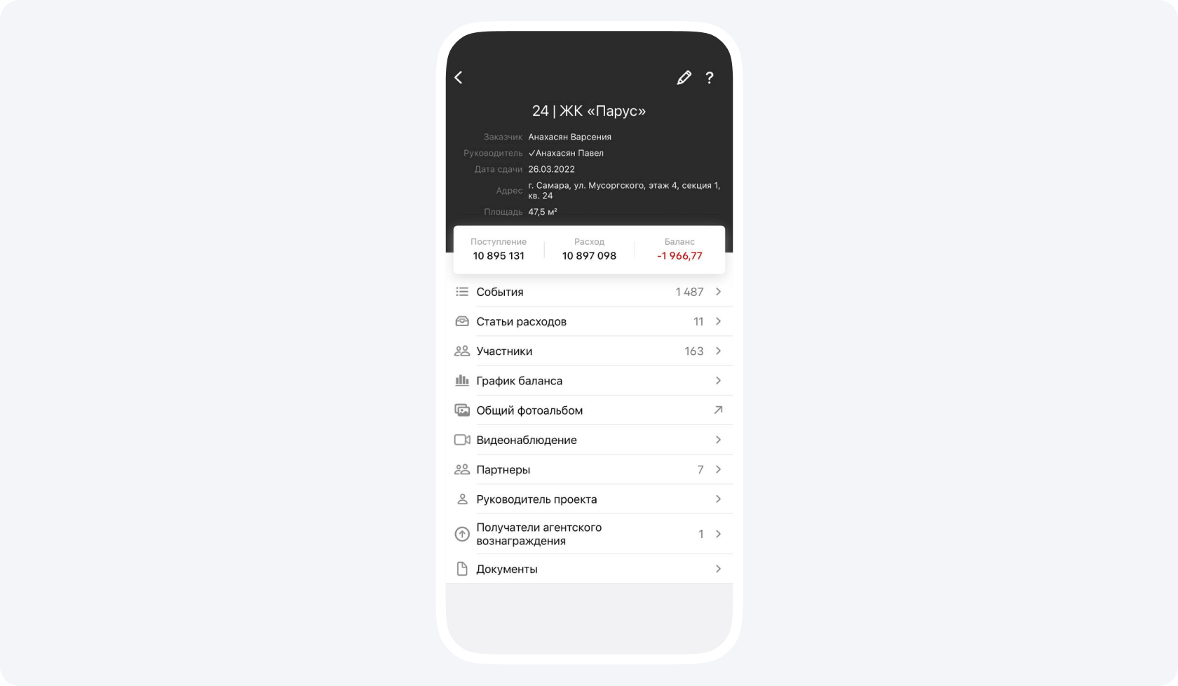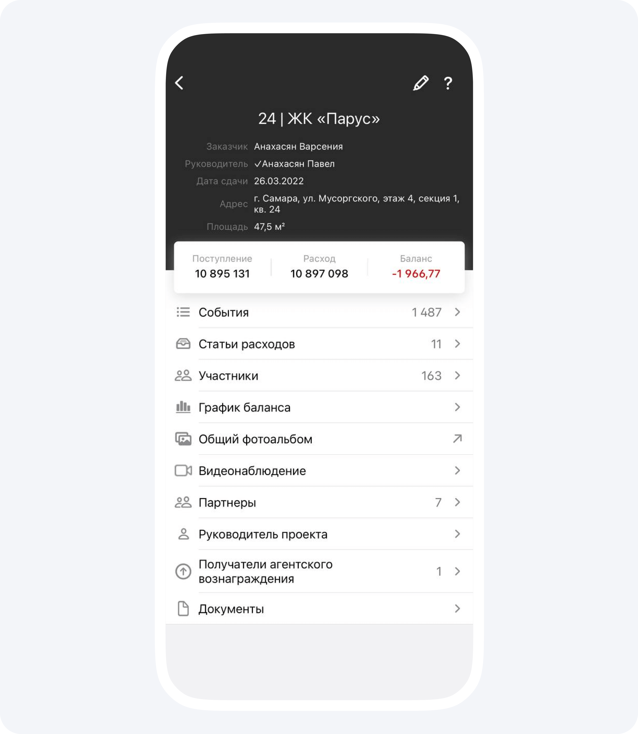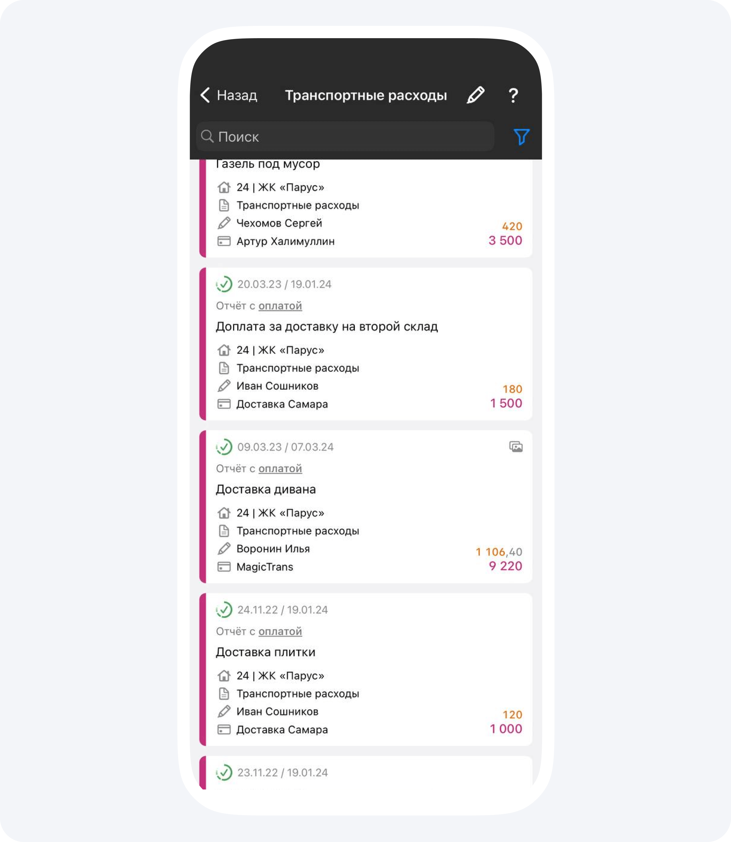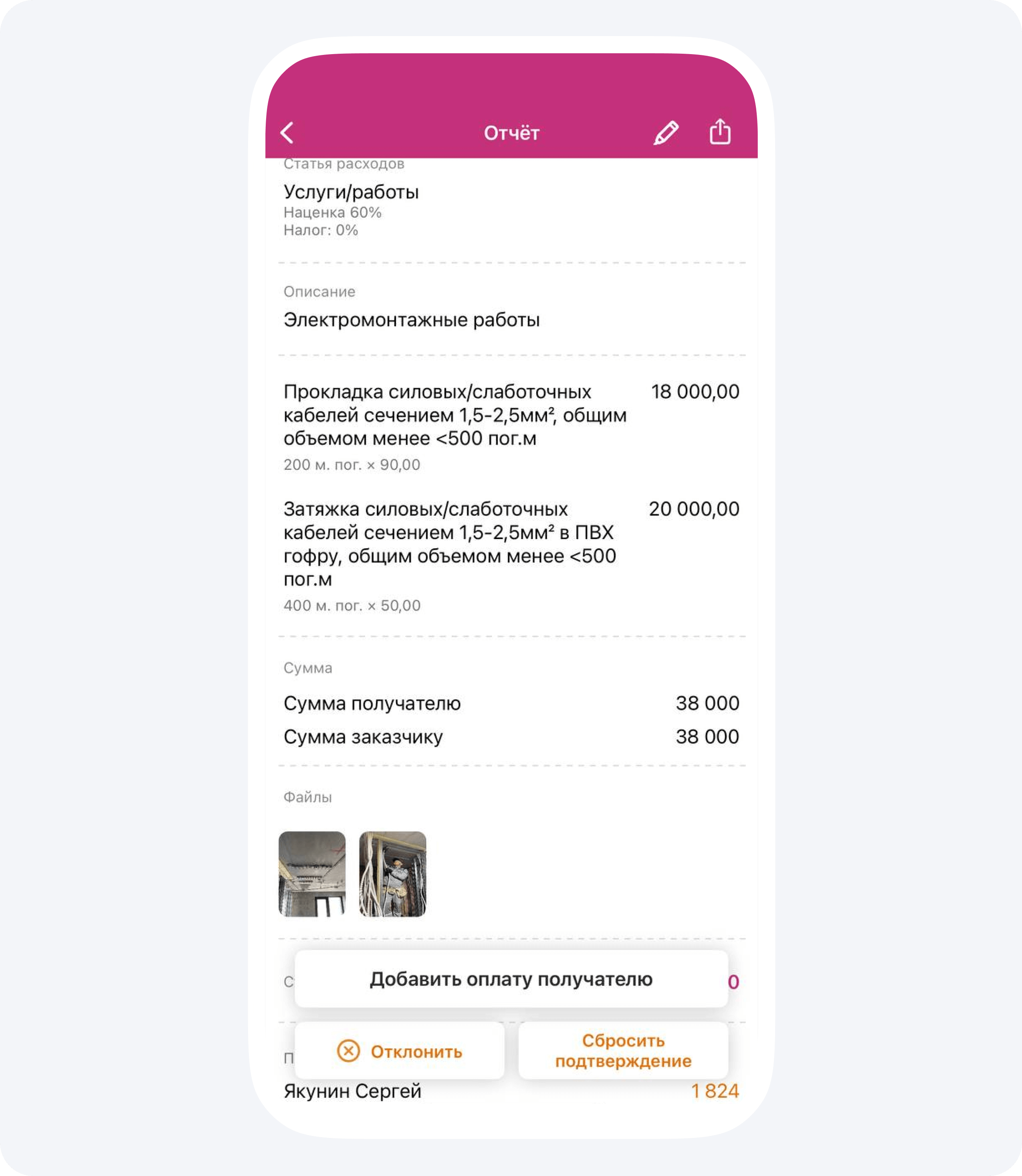 1. Я пошел изучать счета, которые накопились в приложении. К каждому из них прилагаются фотографии, чтобы заказчик мог визуализировать итоги работ, а не просто видеть, что его деньги куда-то тратятся.