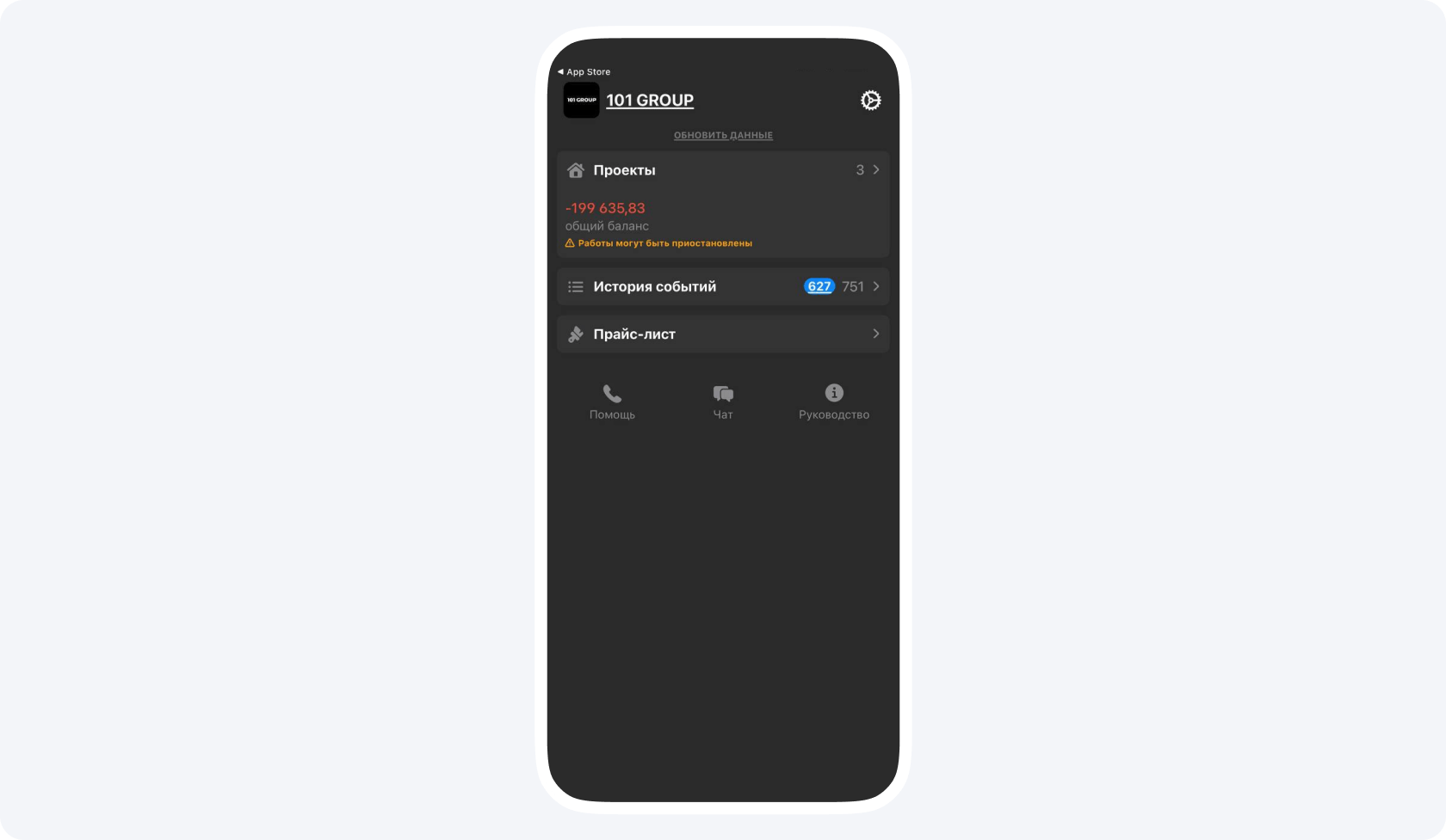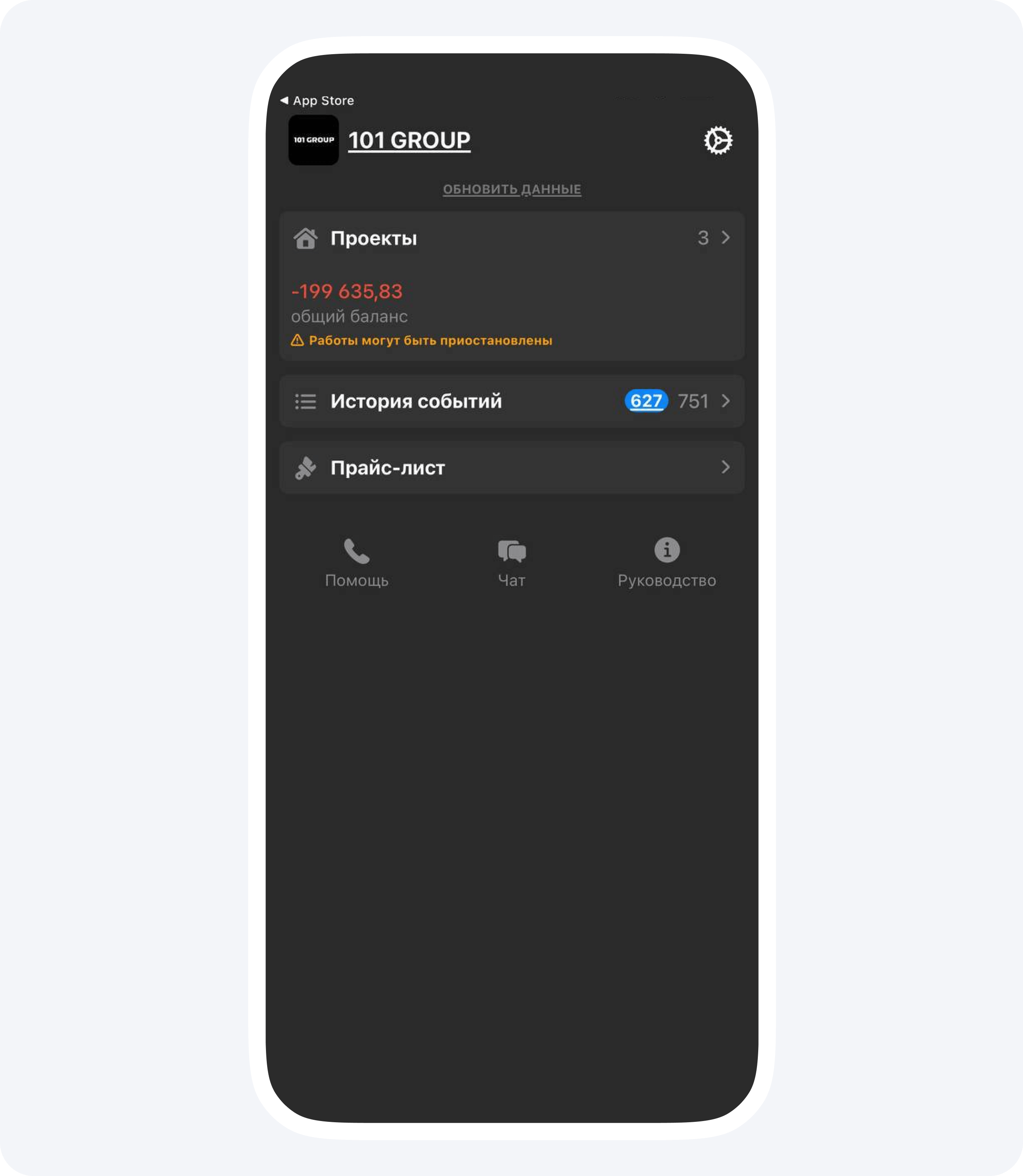 Обговорив со строительной компаний и дизайнером нюансы предстоящего ремонта, я подключился к Приложению 101 как заказчик.